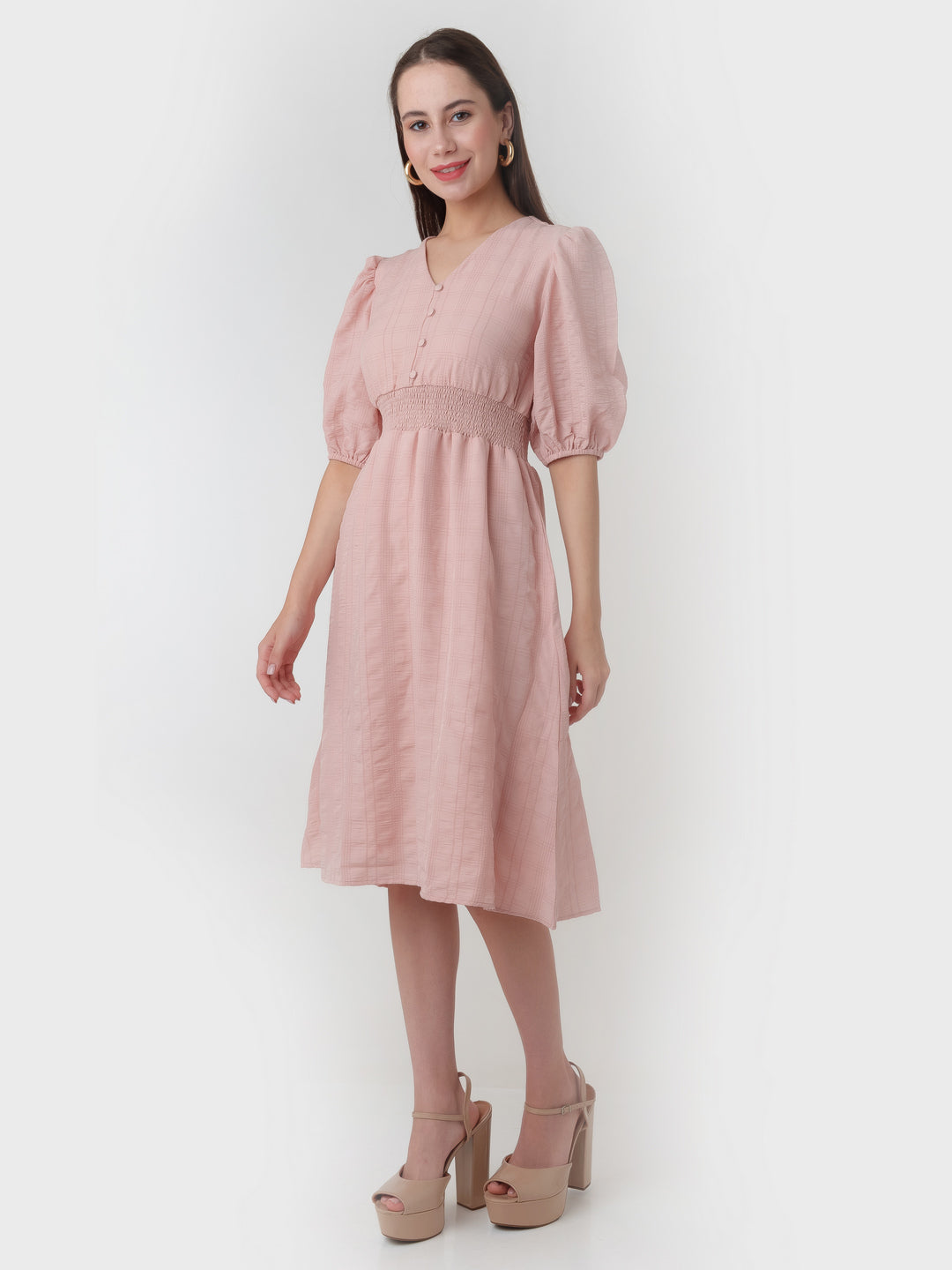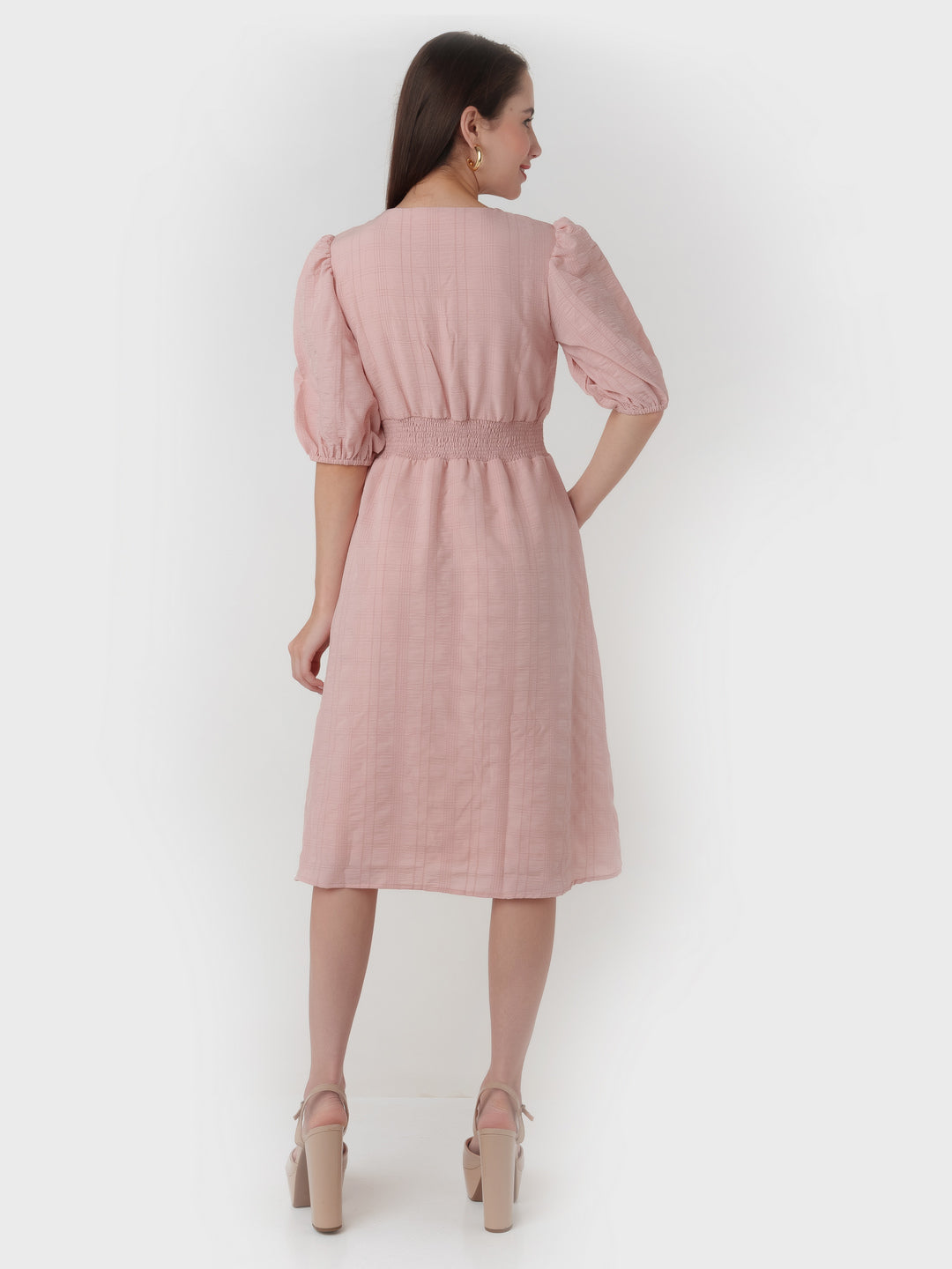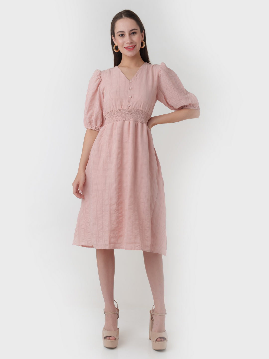 - Item Package Content : 1 unit of Baby Pink Solid A-Line Midi Dress for Women