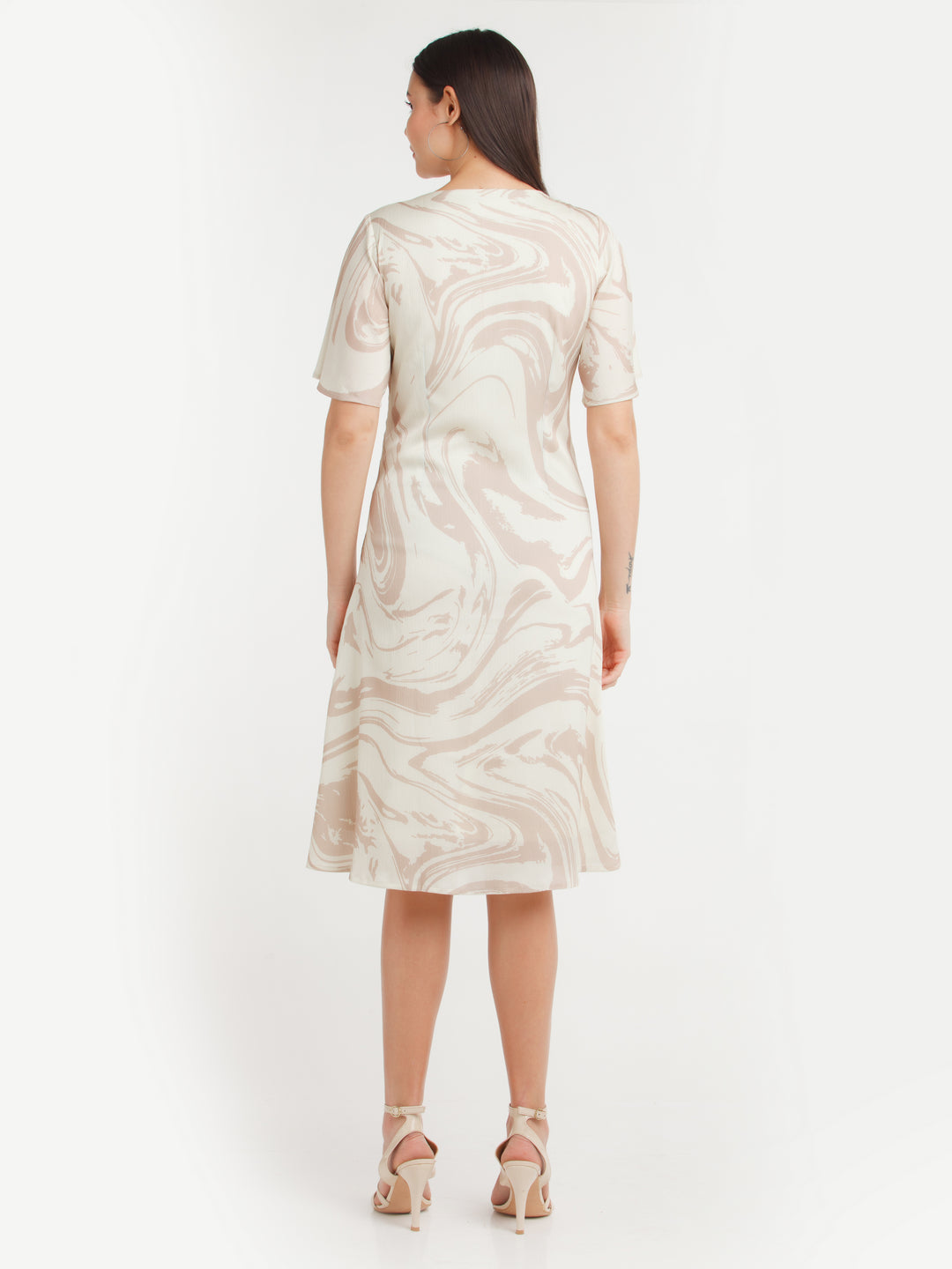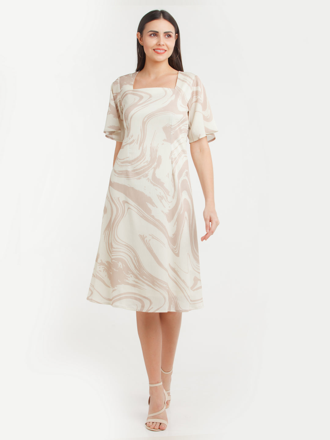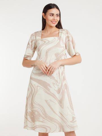 Multi-Colored Tropical Print Short Sleeves Knee-Length Dress