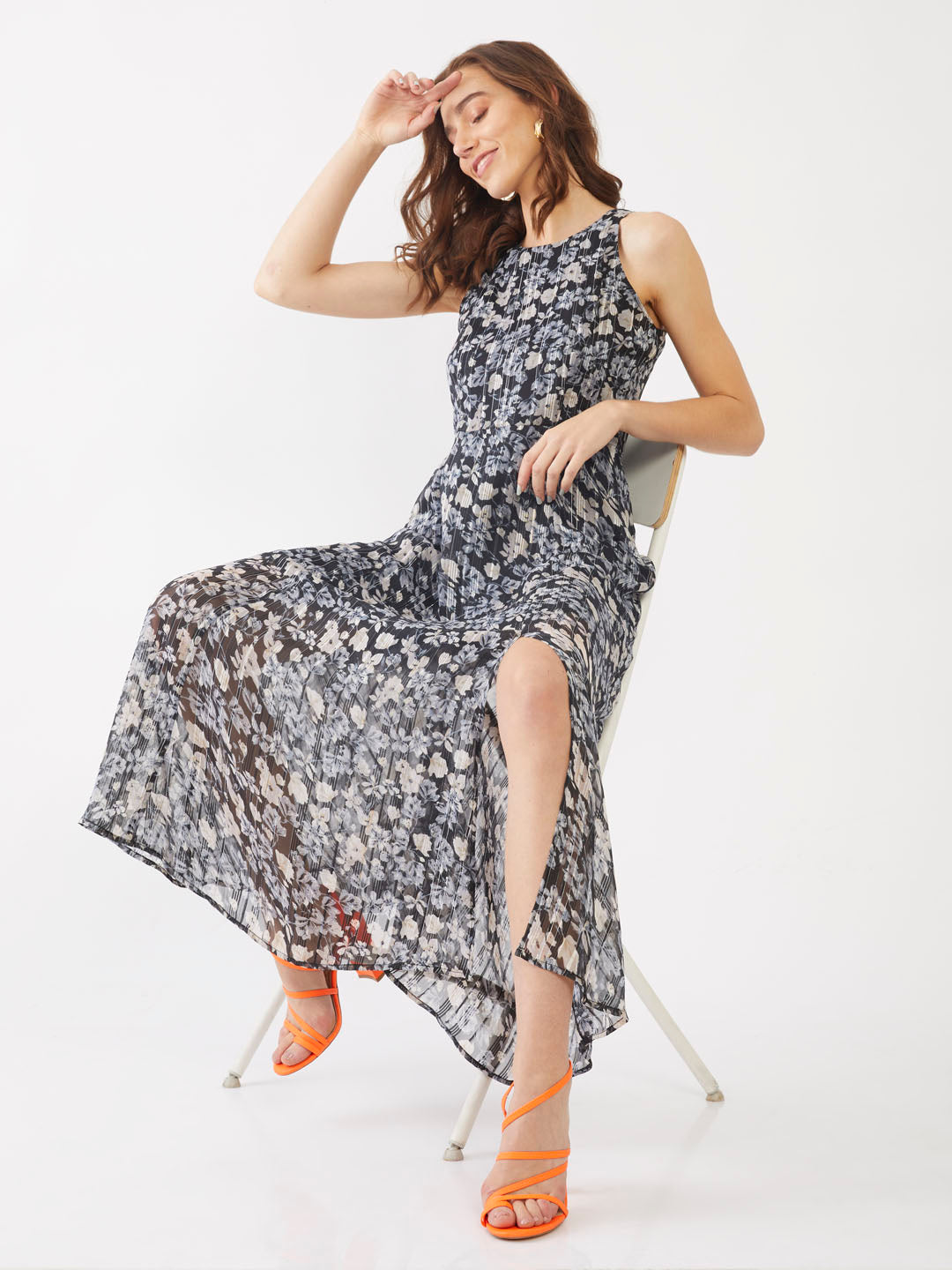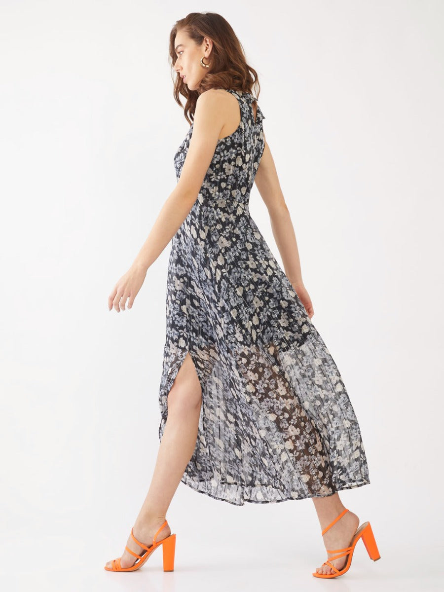 Black & Baby Pink Floral Print Ruffled Sleeves Top