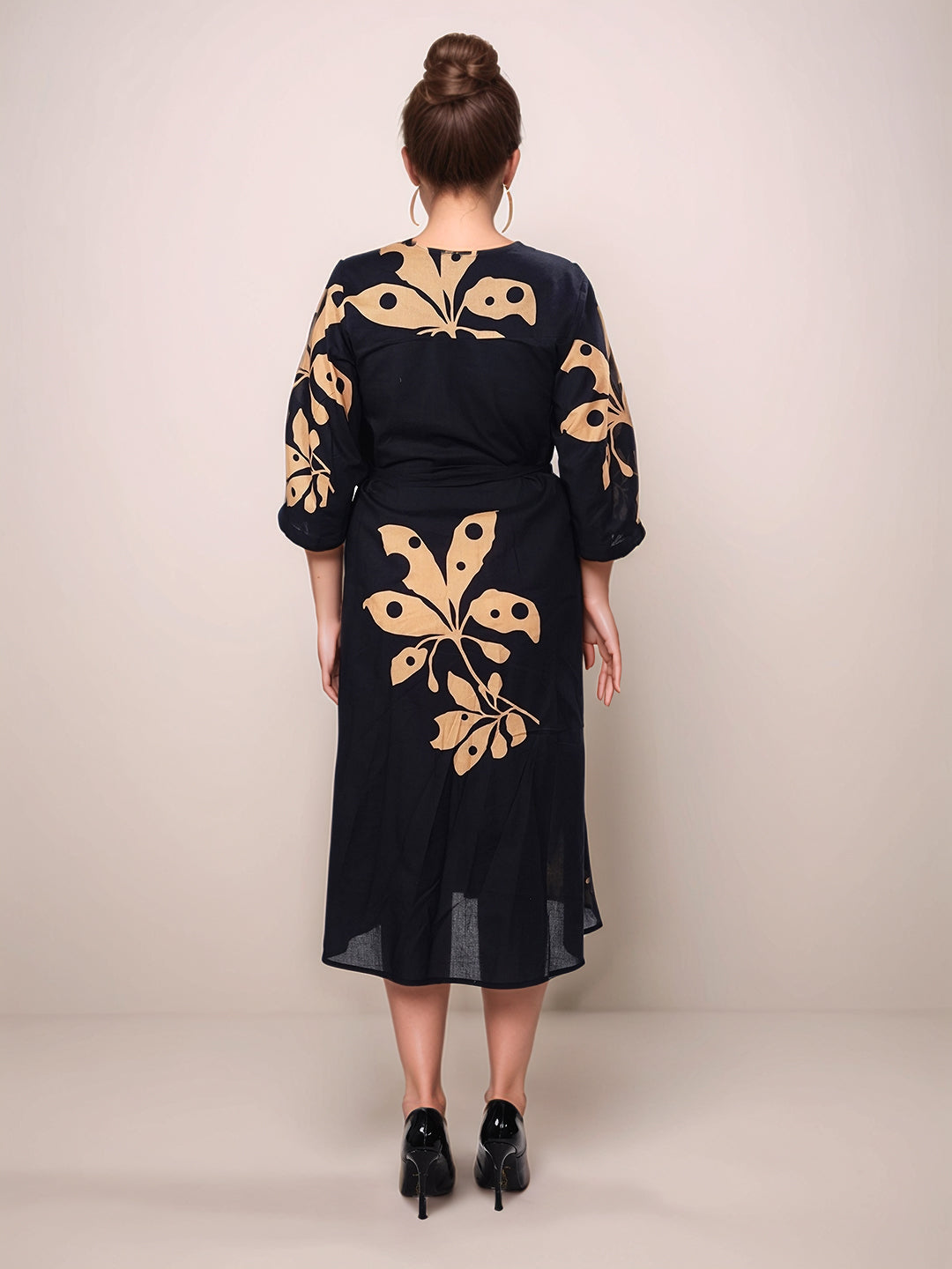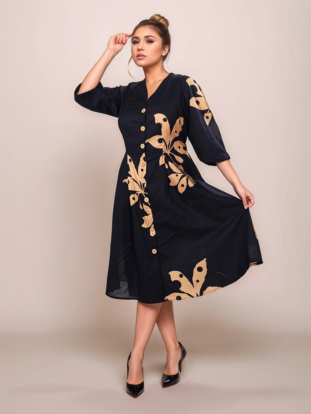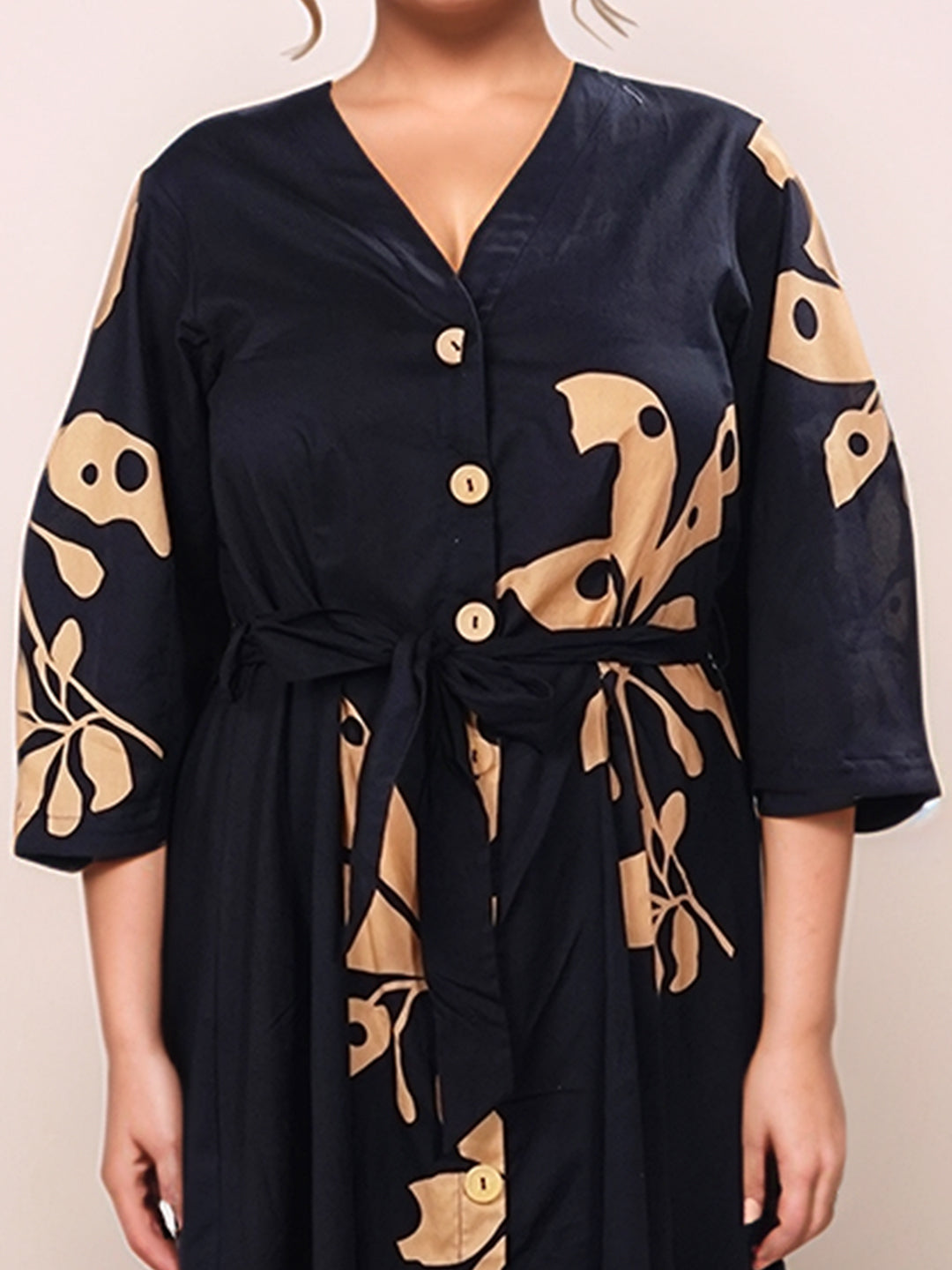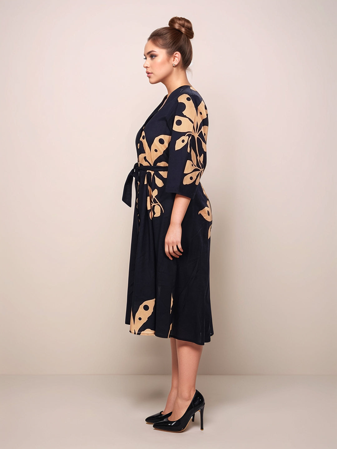 Multi-Colored Tropical Print Short Sleeves Knee-Length Dress