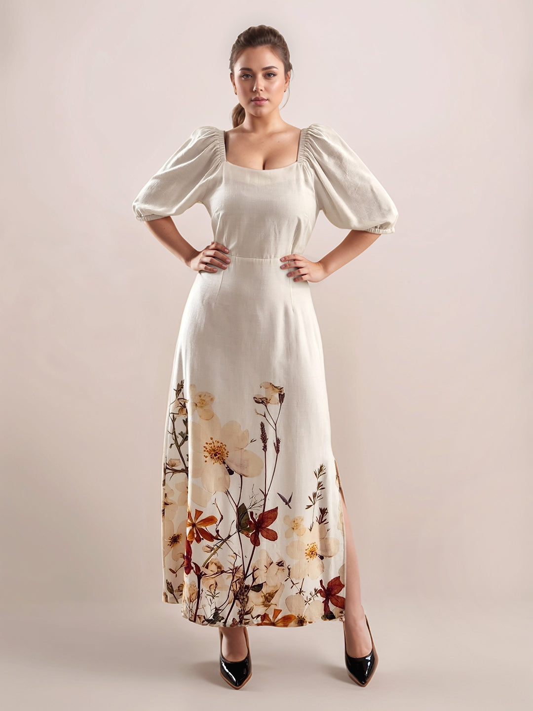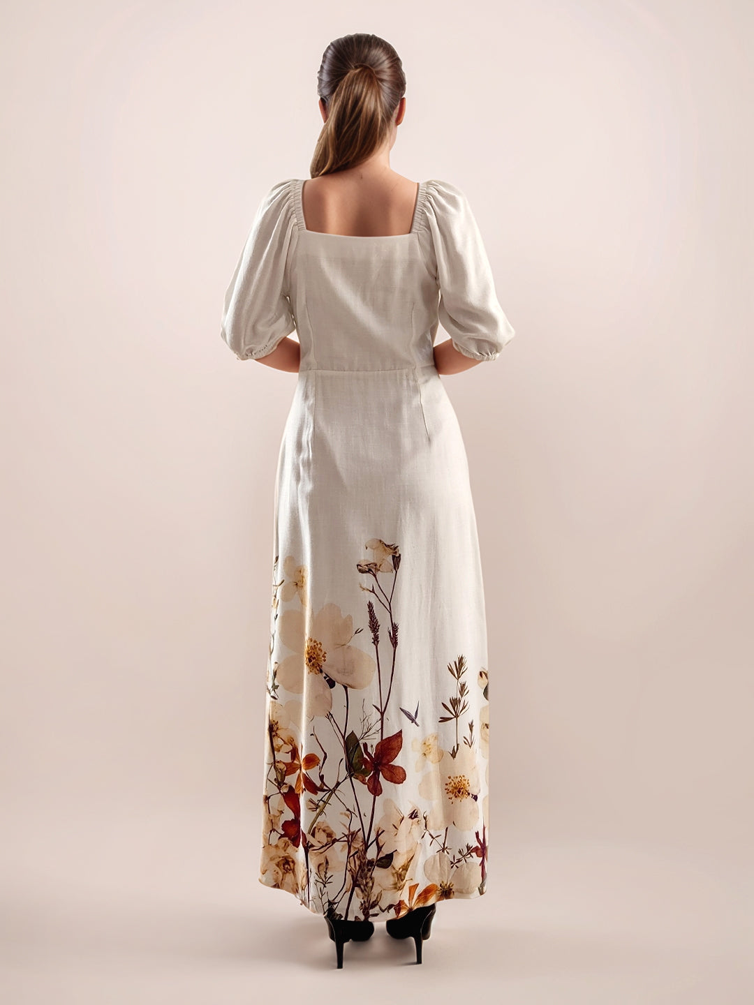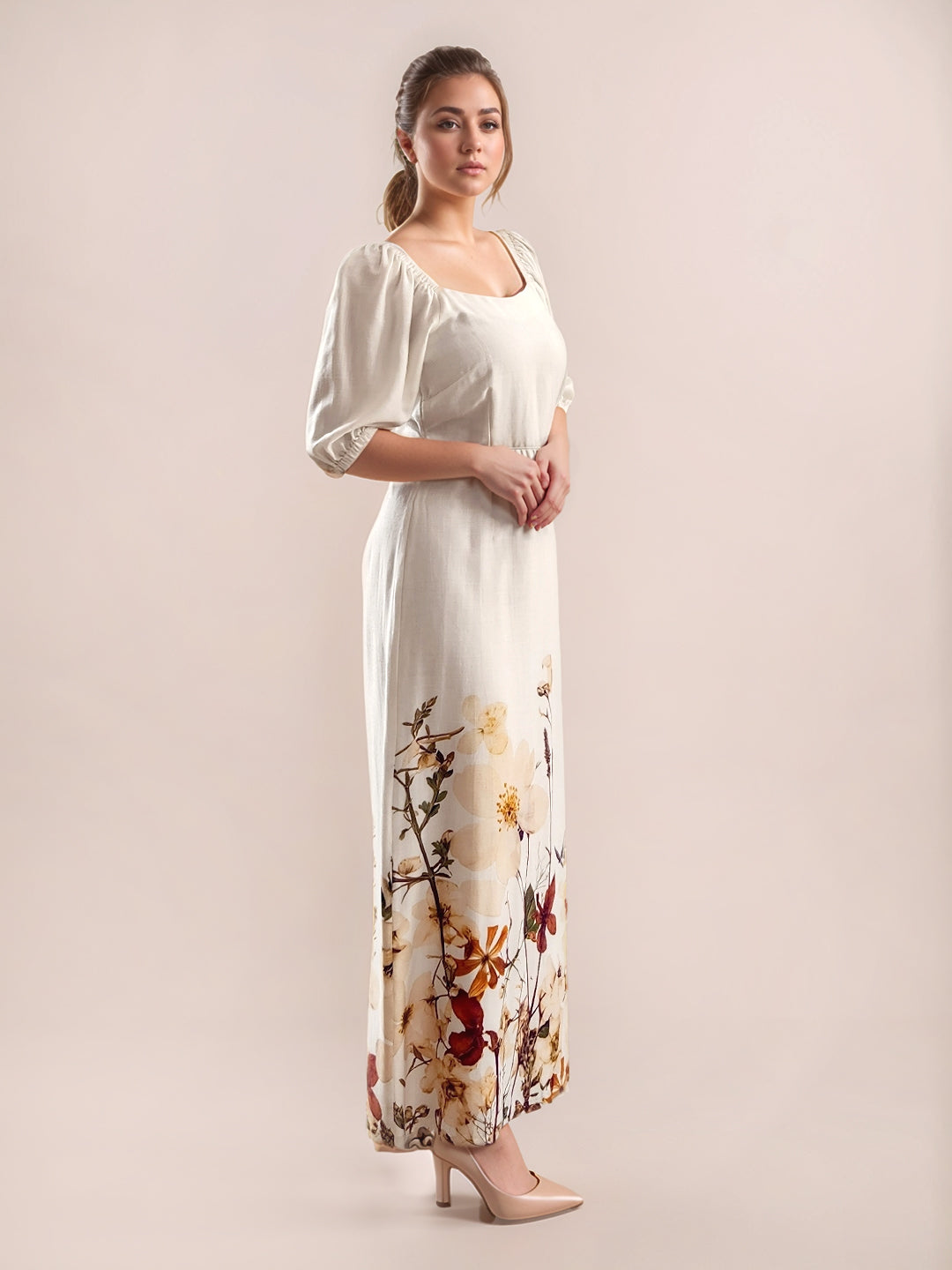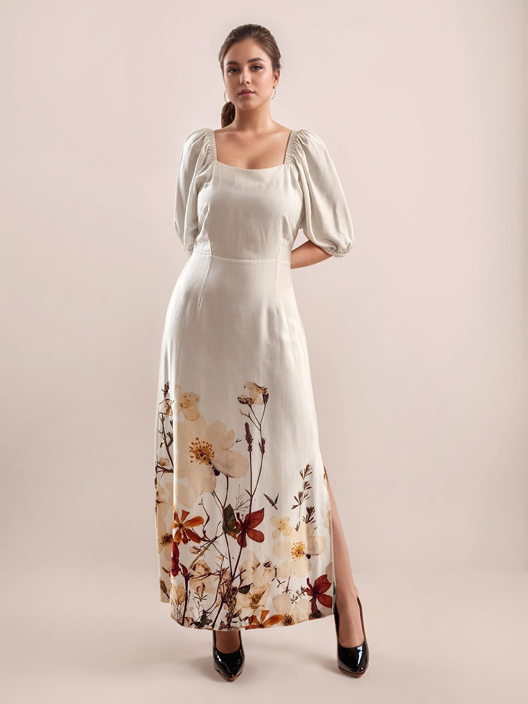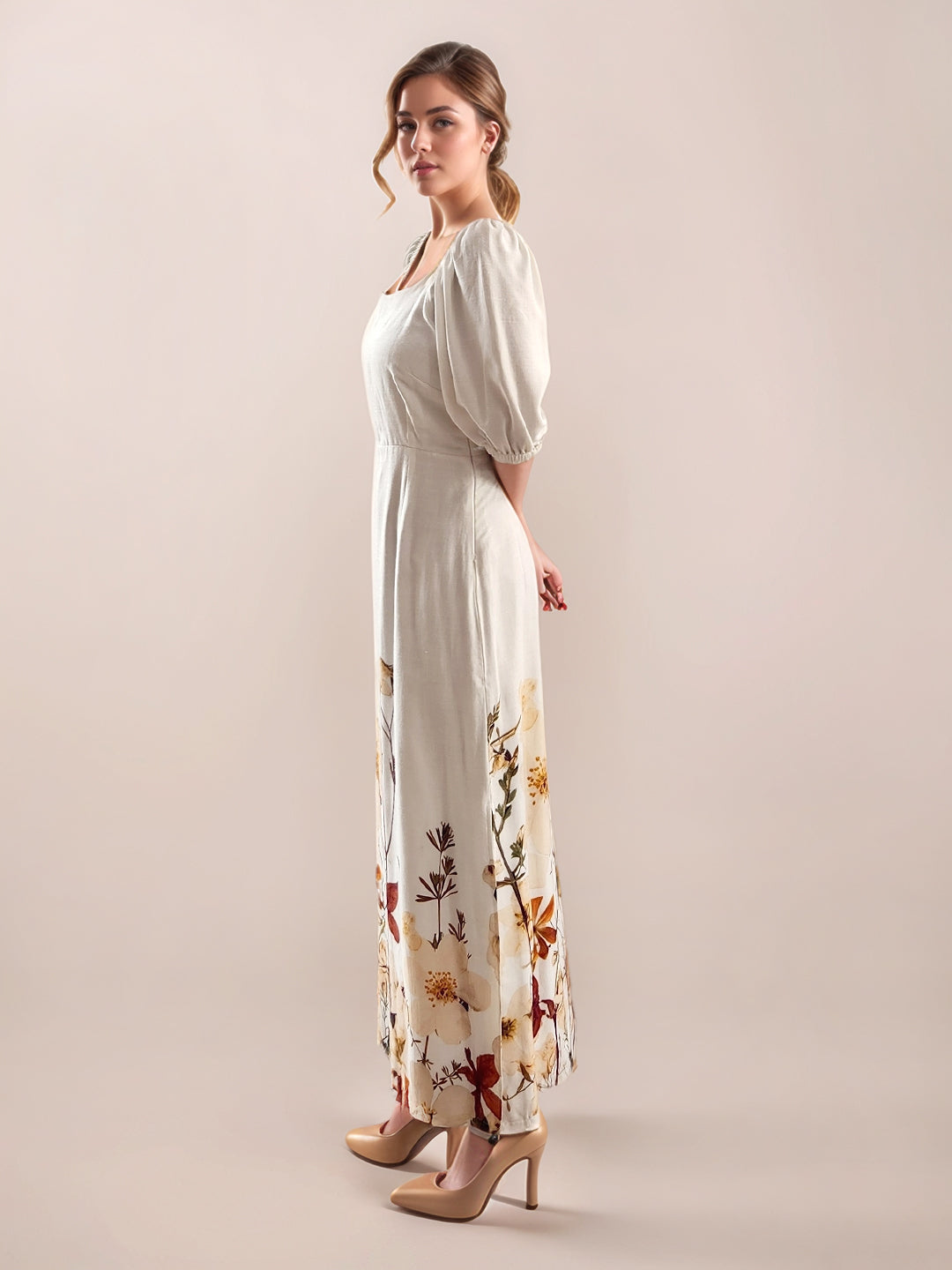 Multi-Colored Tropical Print Short Sleeves Knee-Length Dress