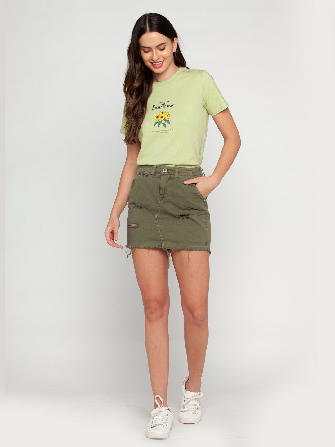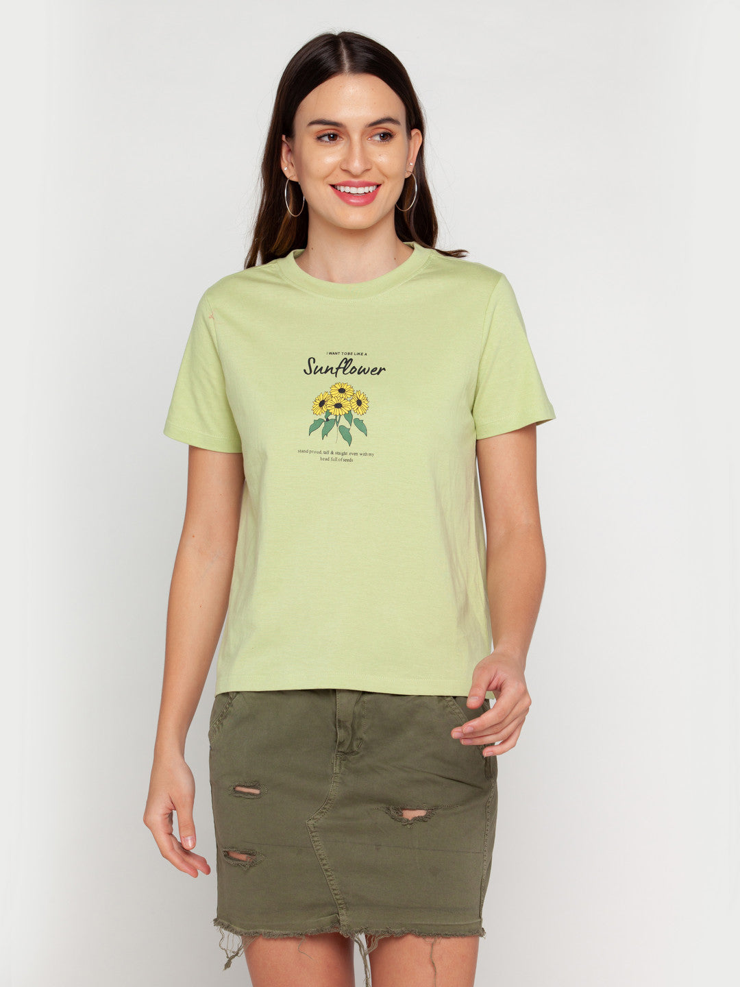 - Description : Green Printed T-Shirt For Women