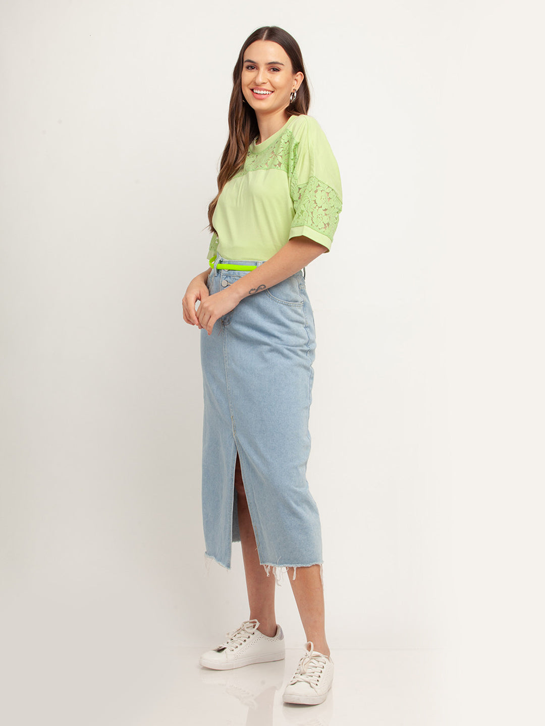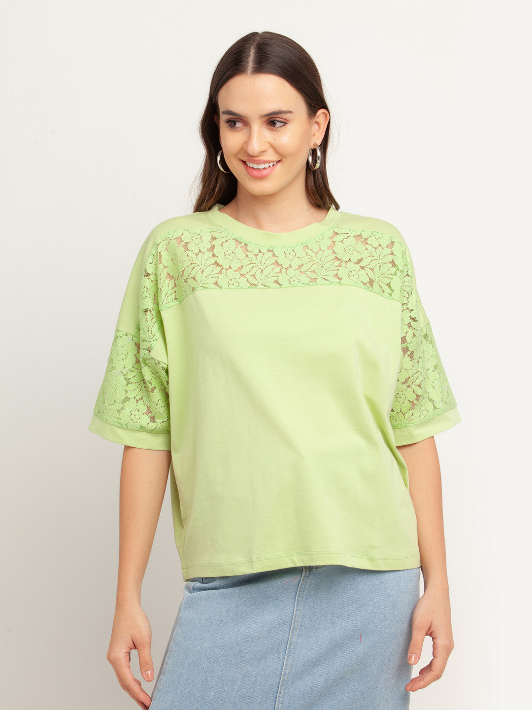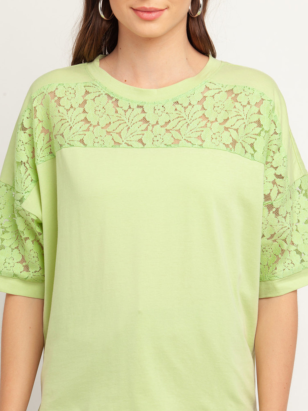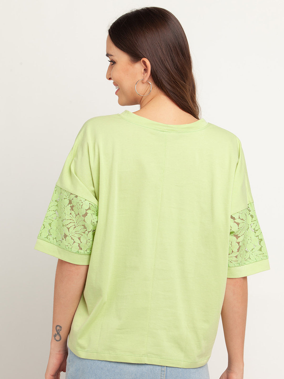 - Description : Green Solid Short Sleeves Top For Women