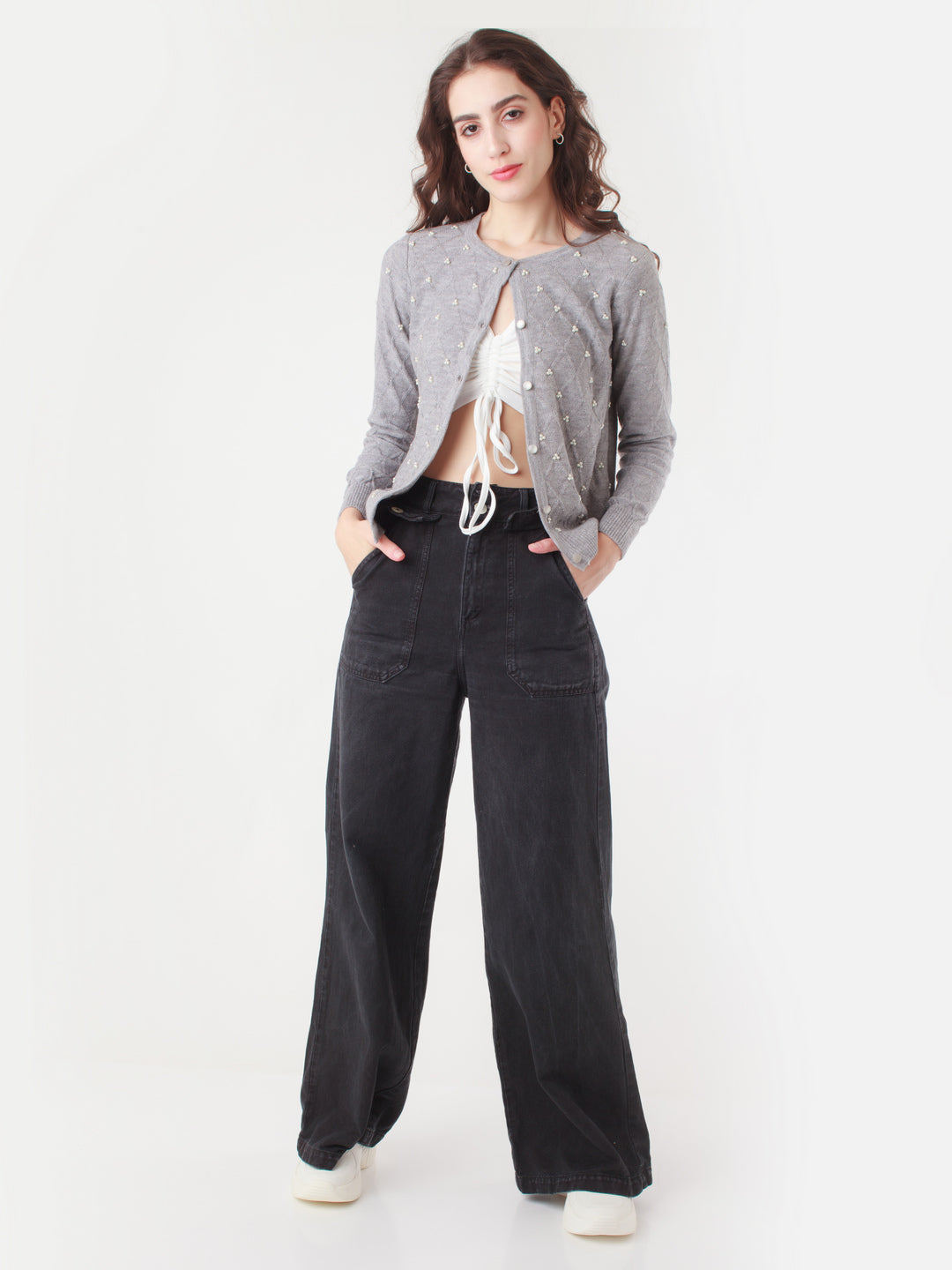 - Description : Grey Embroidered Sweater For Women