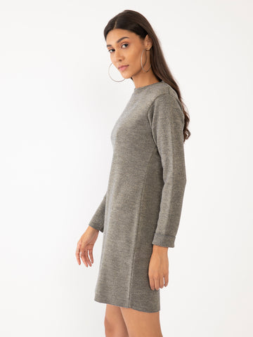 - Description : Grey Shimmer Fitted Short Dress For Women