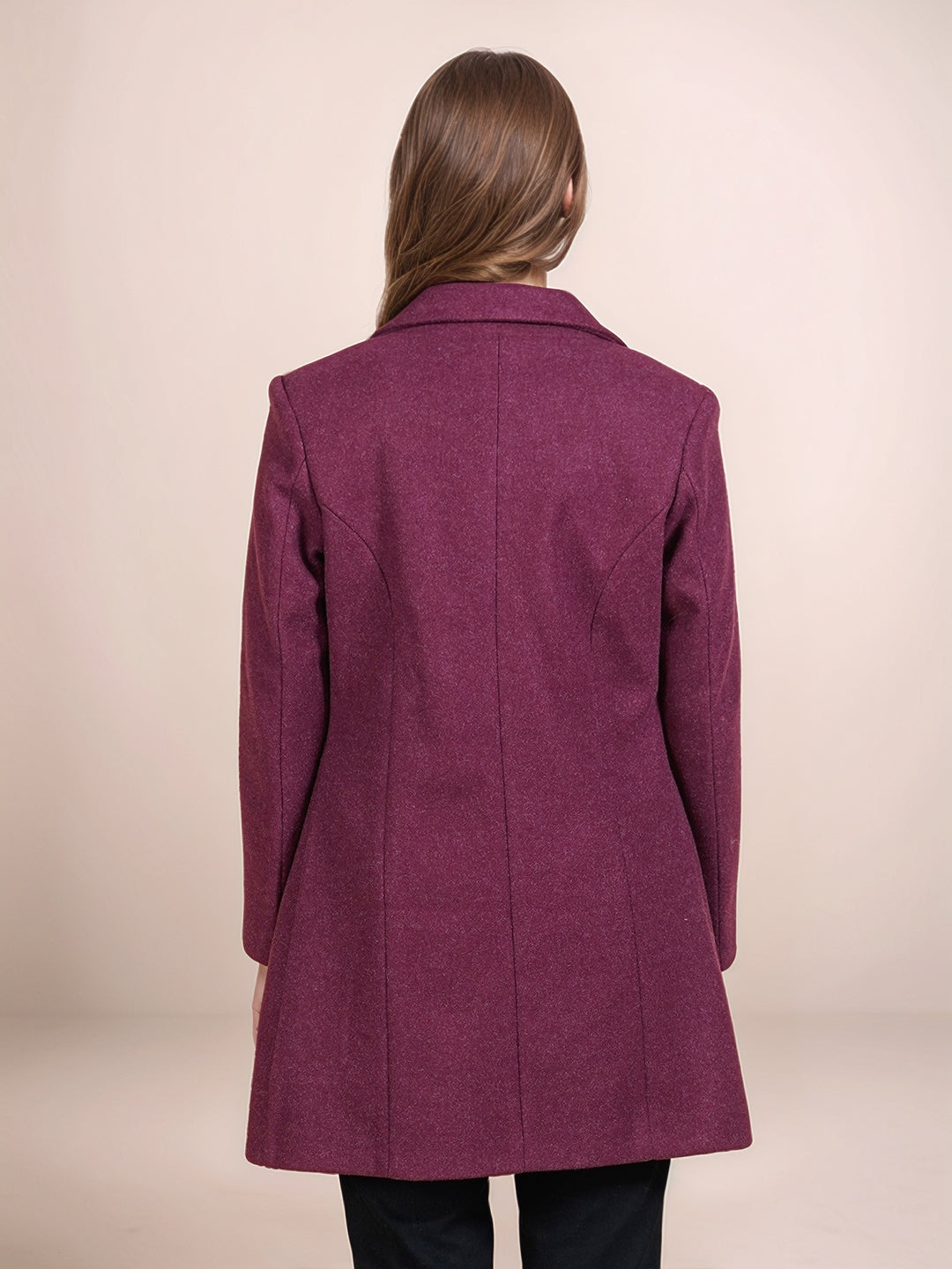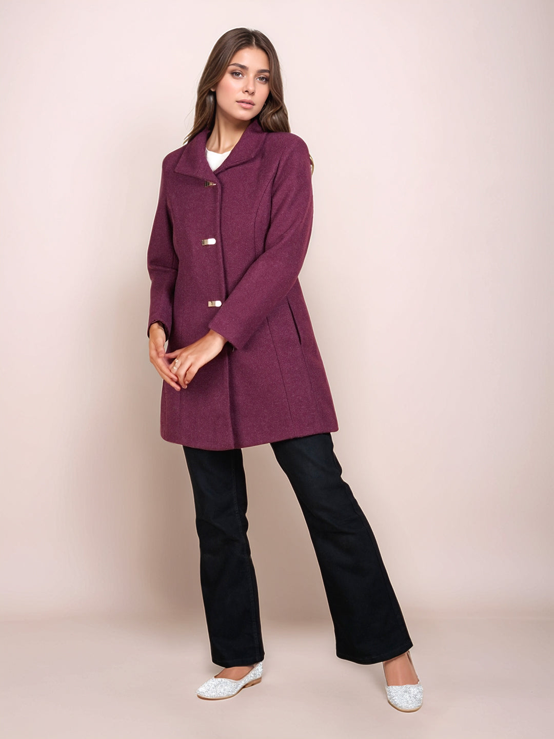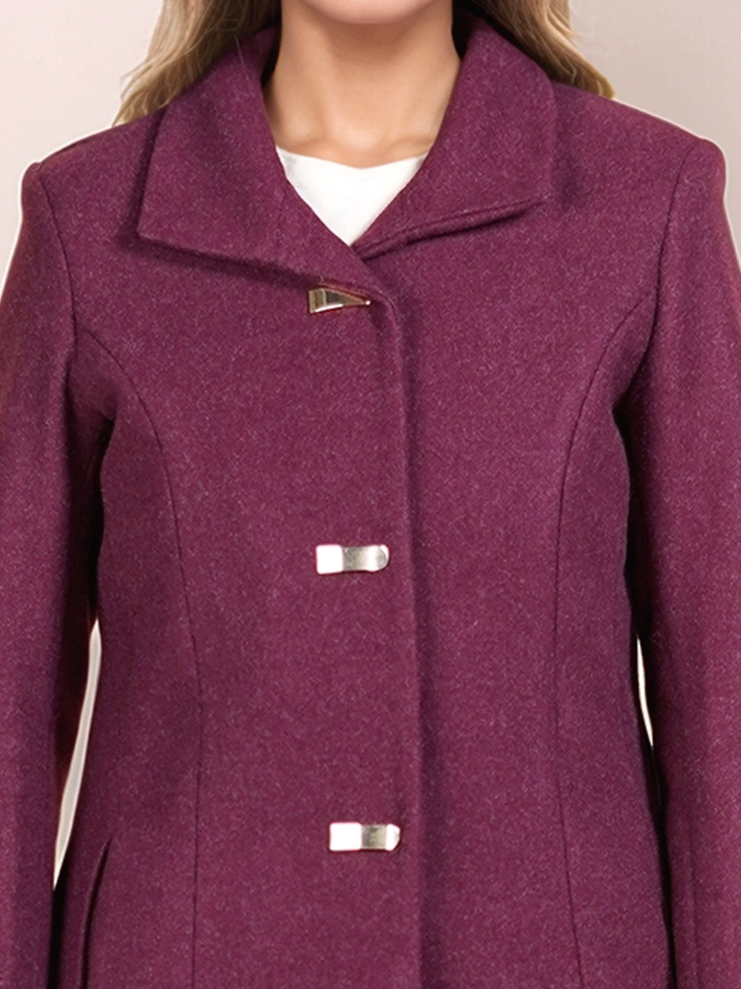 Wine Colored Solid Straight Fit Pea Coat Styled Jacket