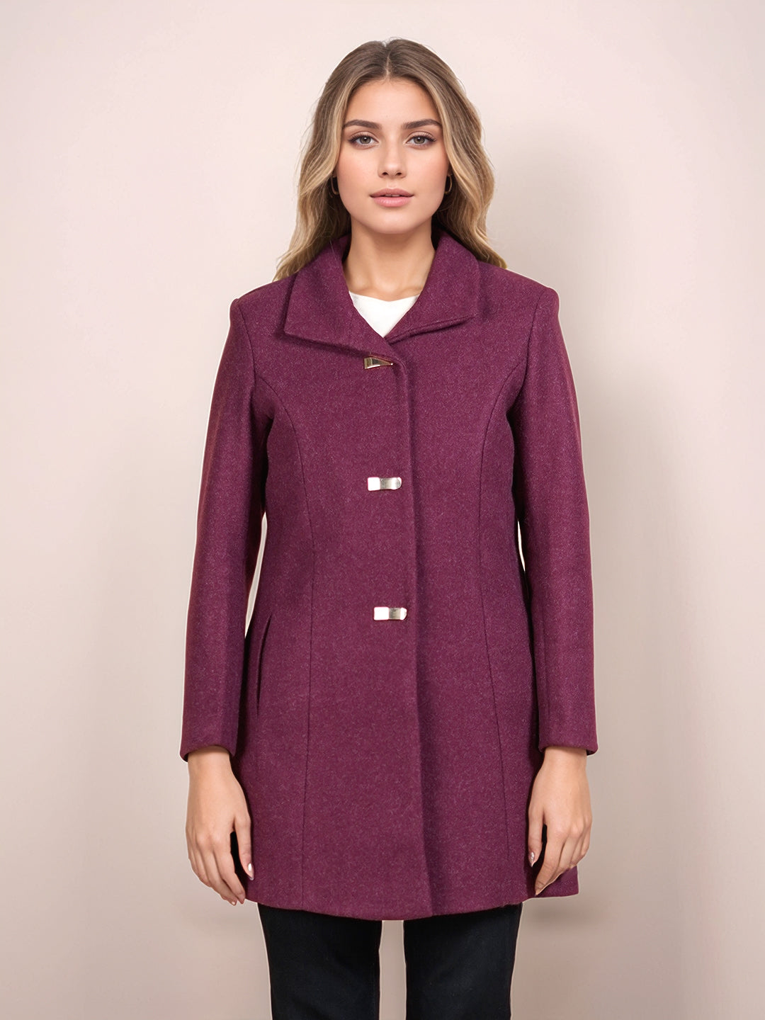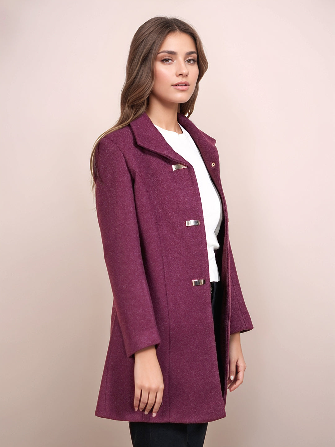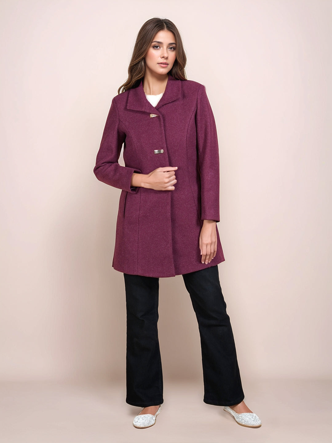 Wine Colored Solid Straight Fit Pea Coat Styled Jacket