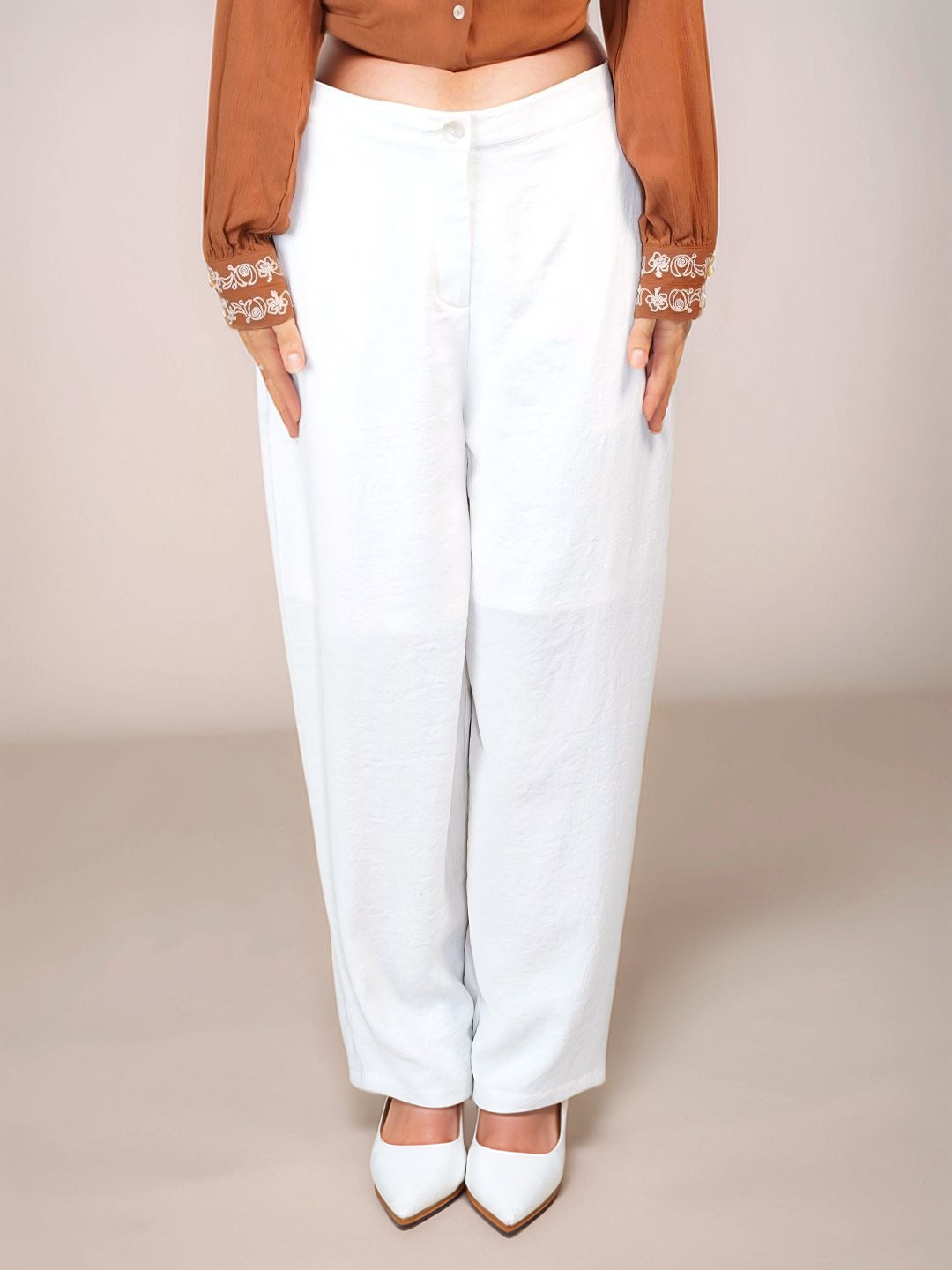 White Textured Trouser