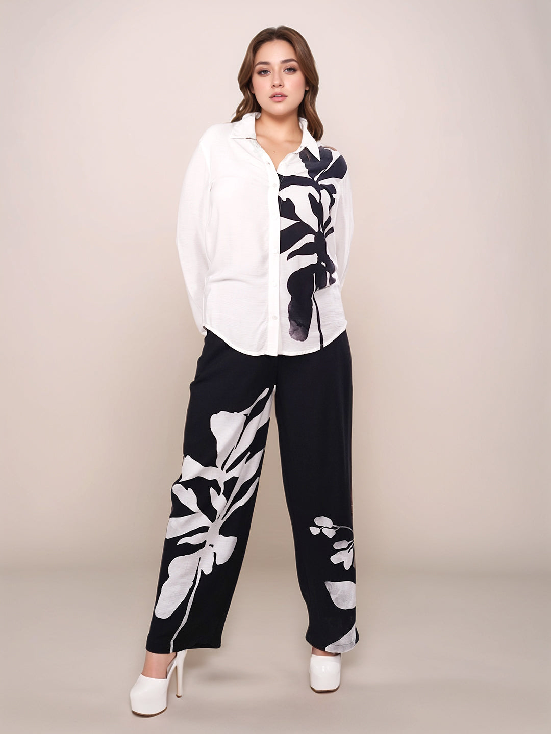 White Tropical Print Long Sleeves Shirt