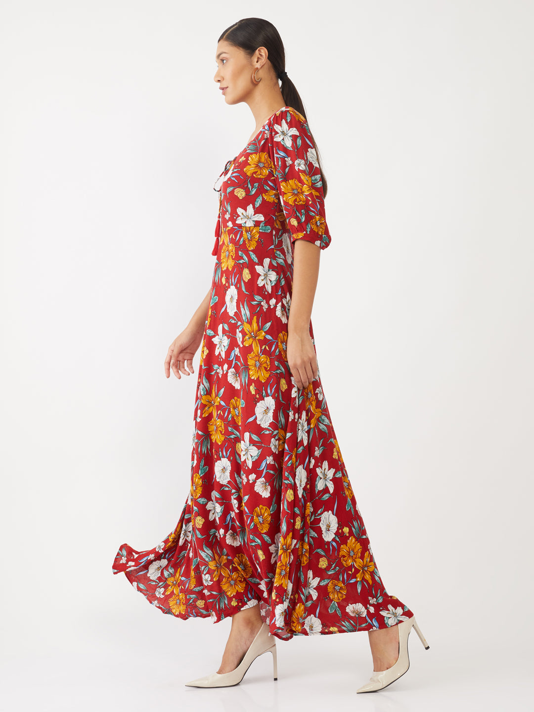 Maroon Floral Print Maxi