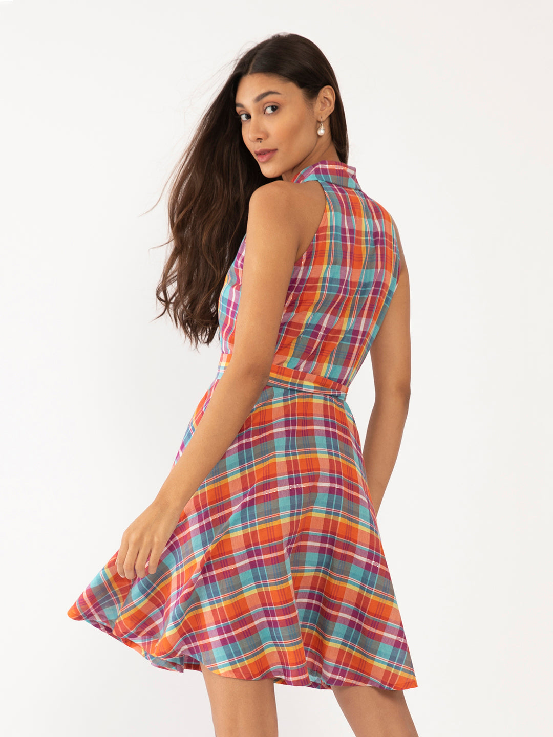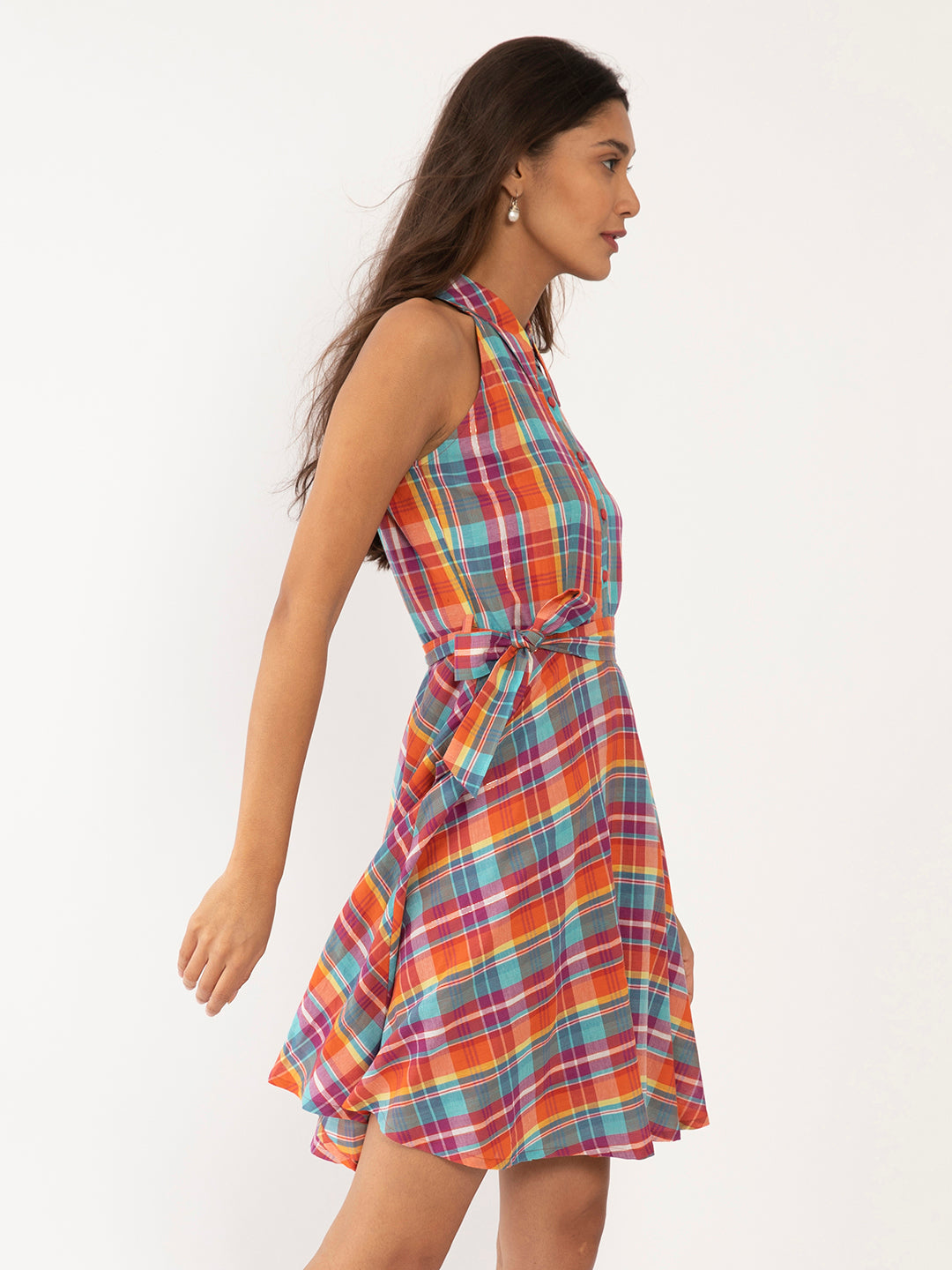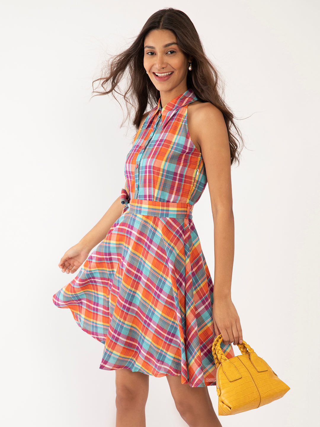 - Description : Multi Colored Checked Short Dress For Women