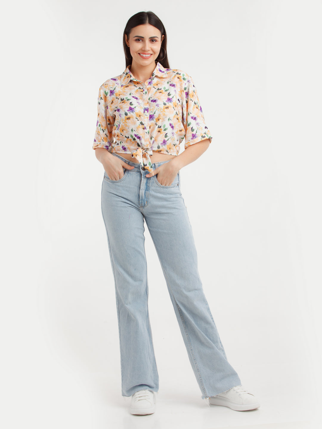 Multi-Colored Tropical Print 3/4th Sleeves Top