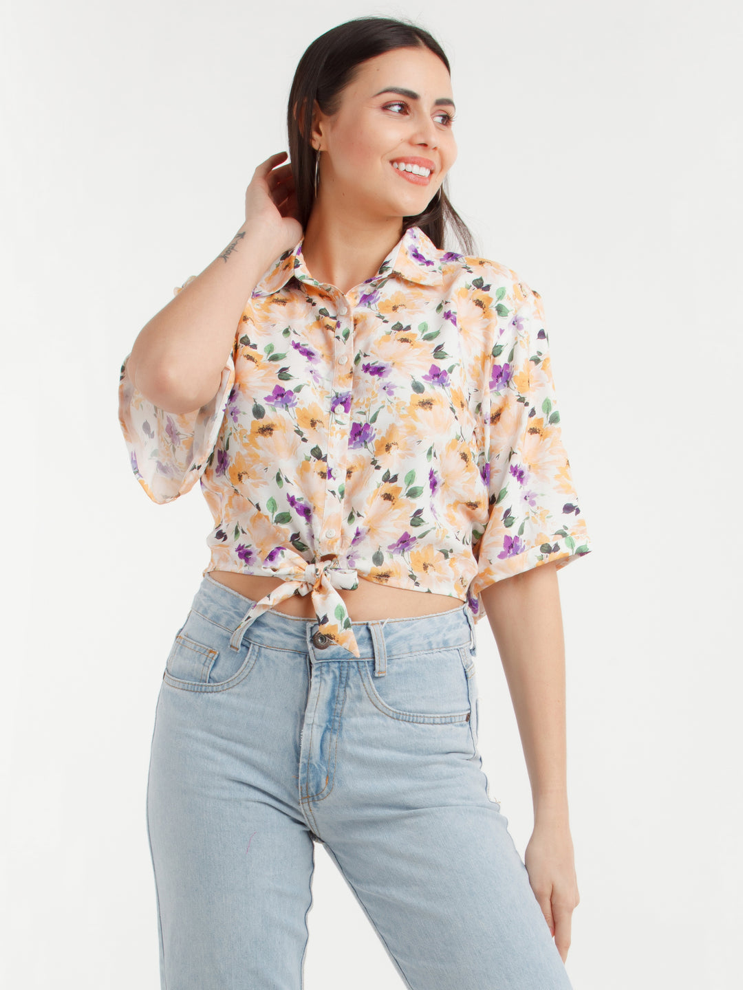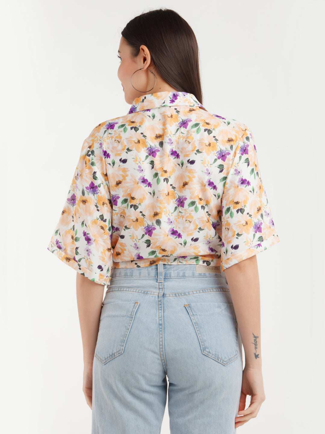 Multi-Colored Tropical Print Long Sleeves Shirt