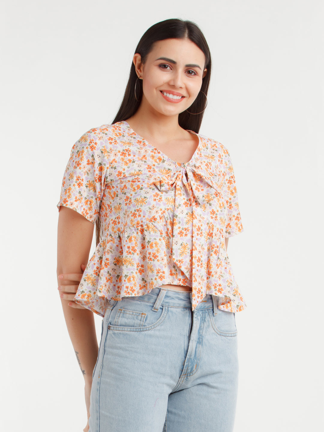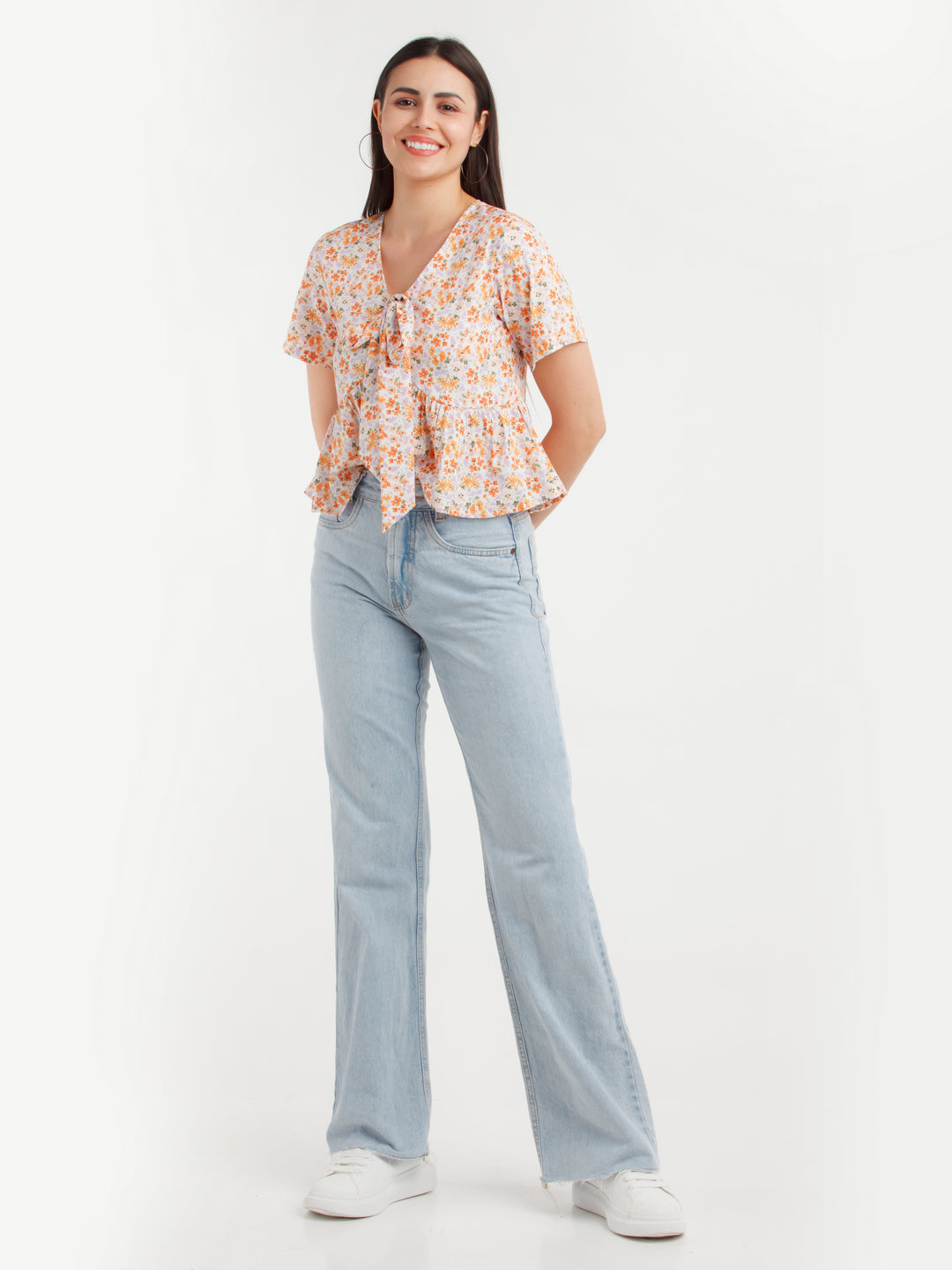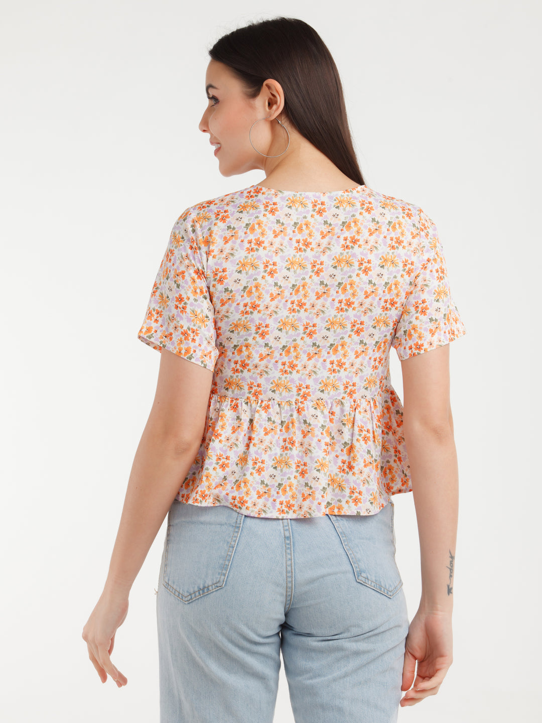 Multi-Colored Tropical Print 3/4th Sleeves Top
