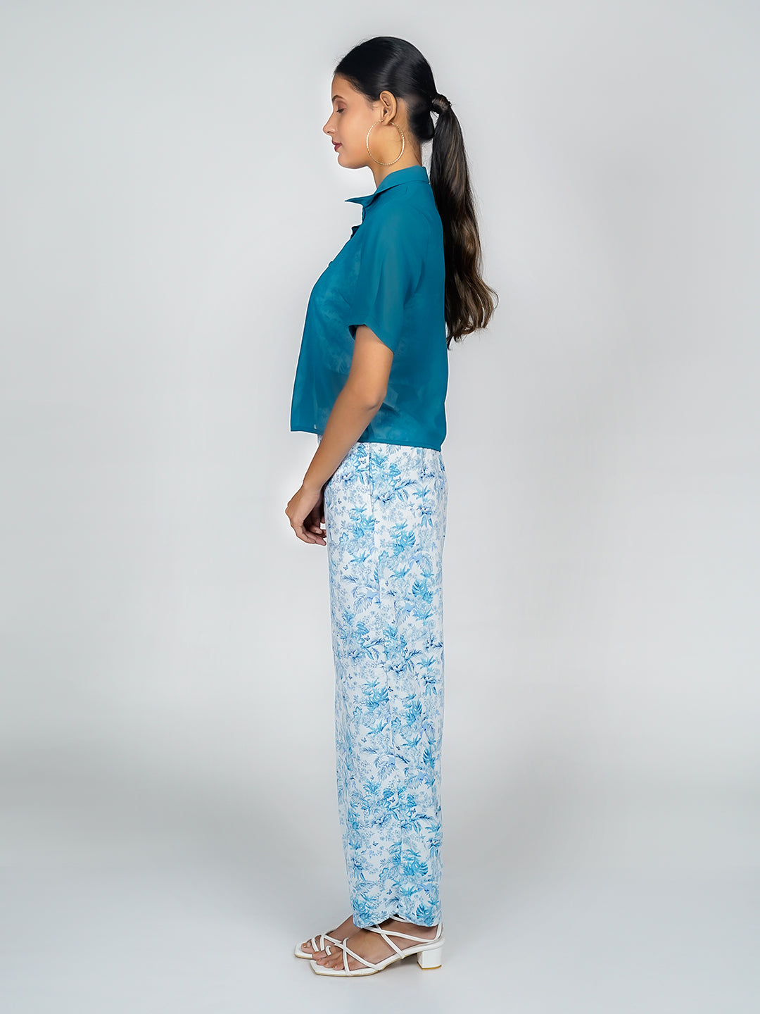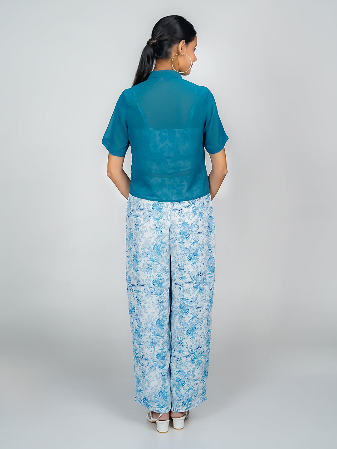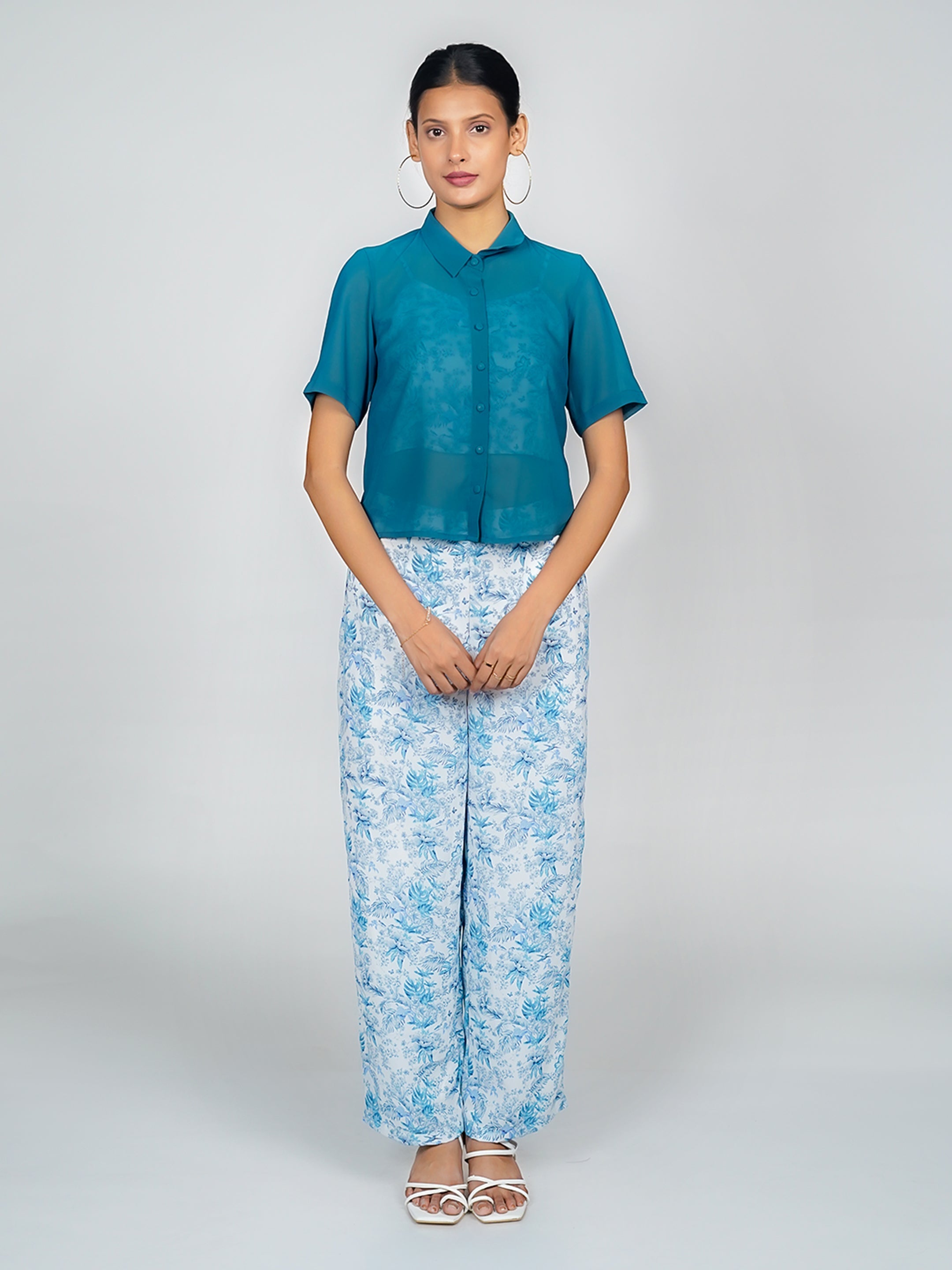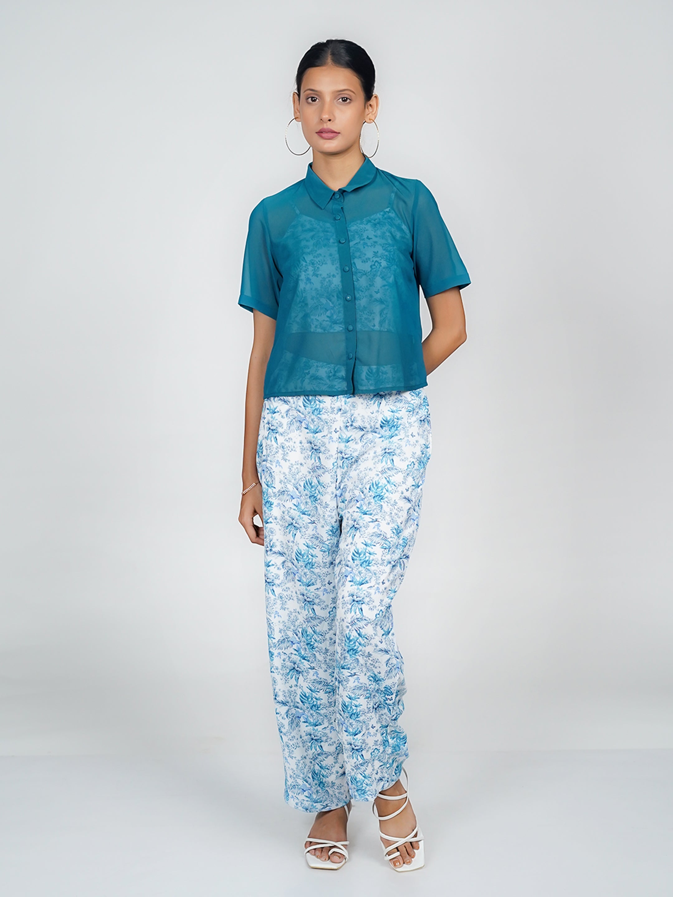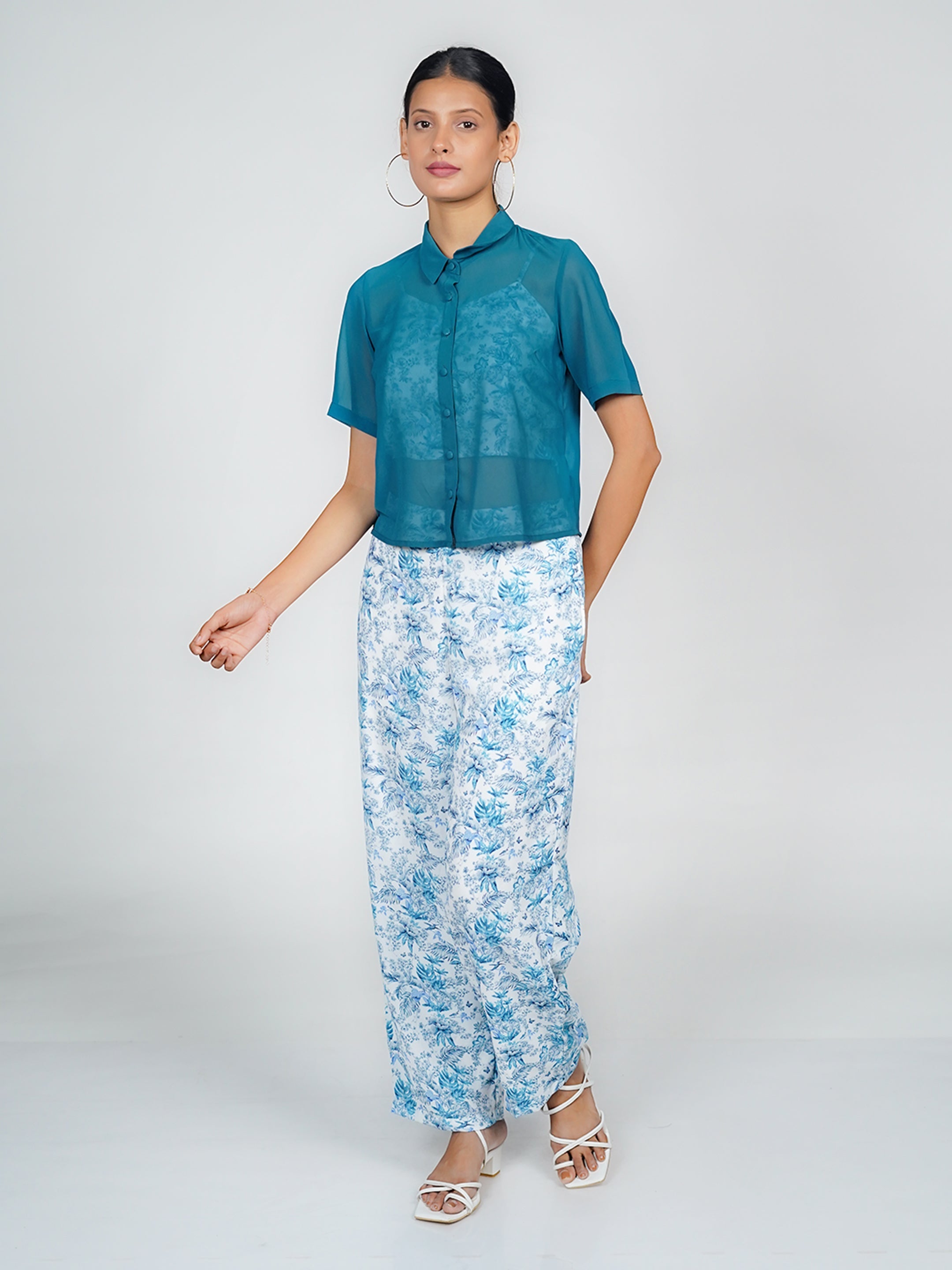 White Tropical Print Long Sleeves Shirt