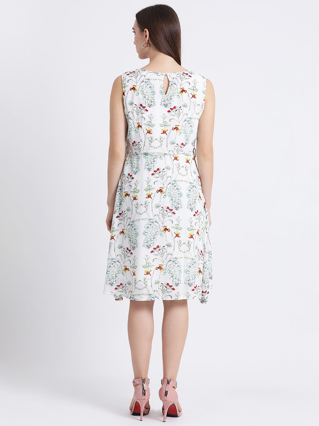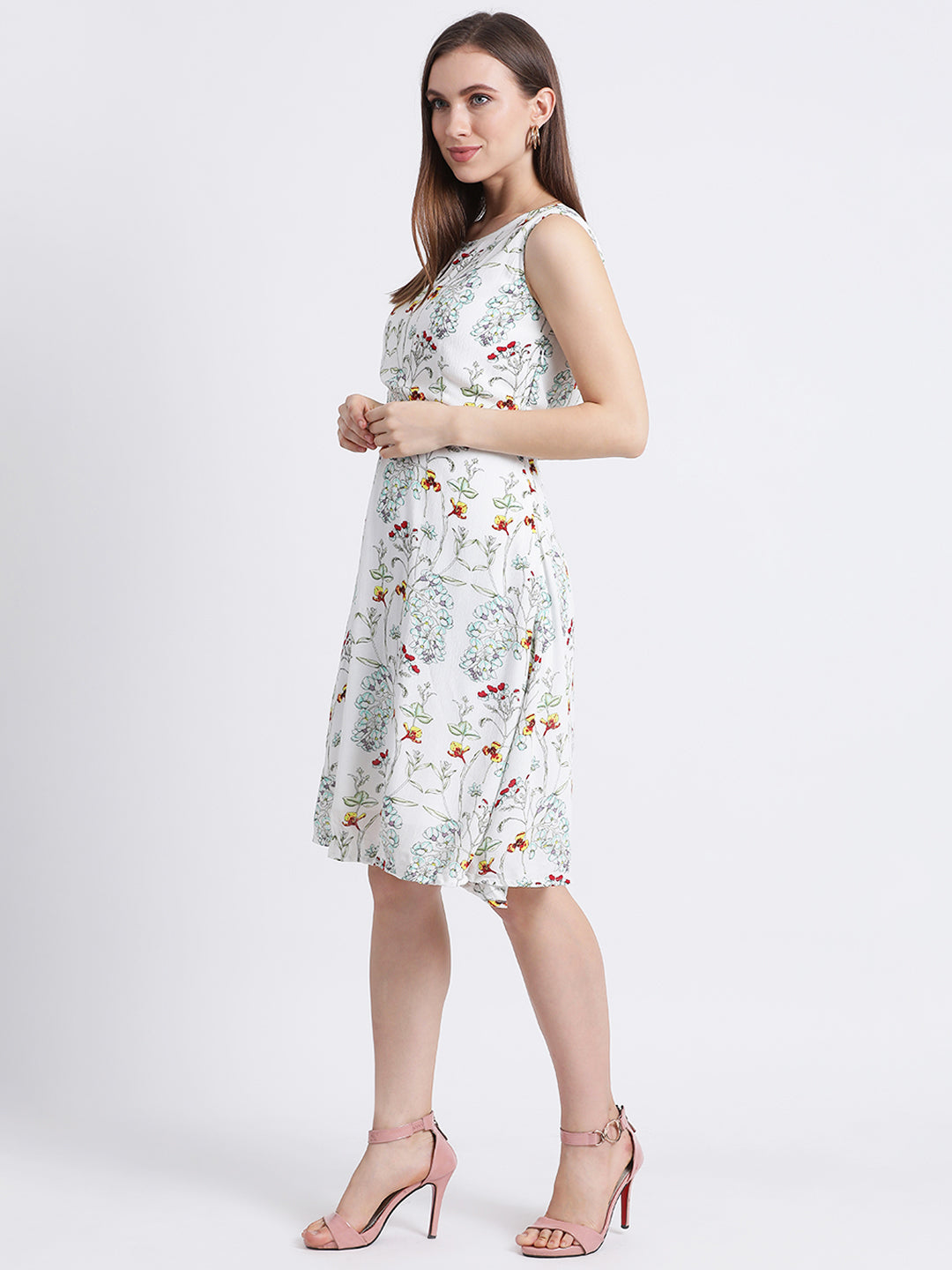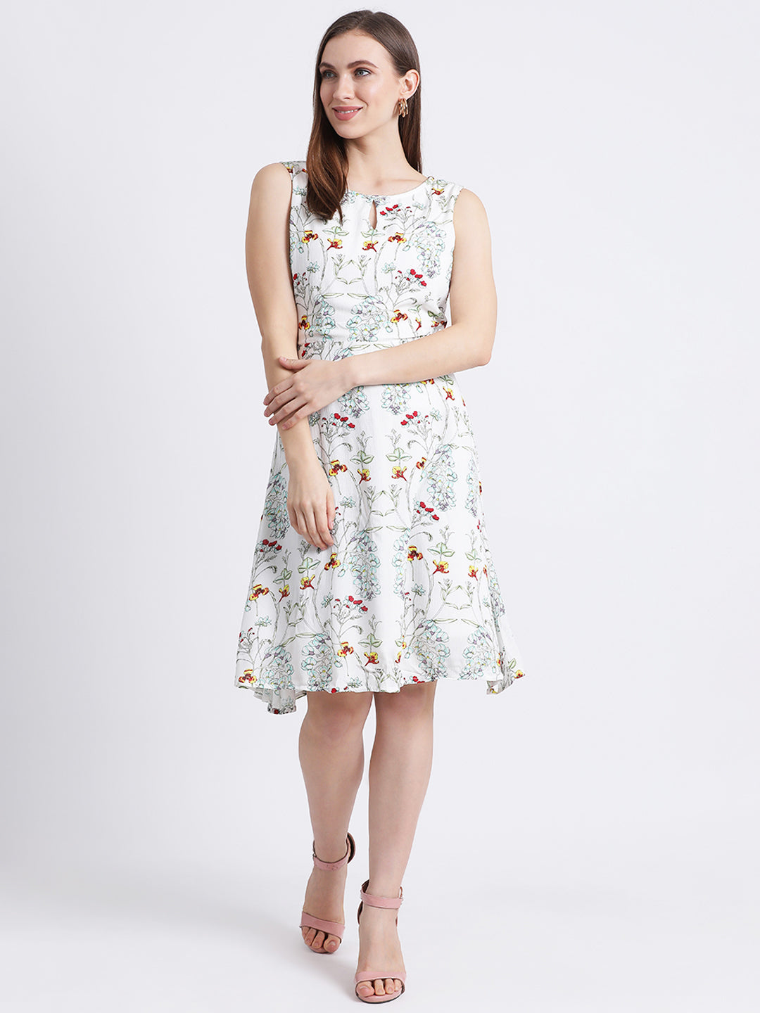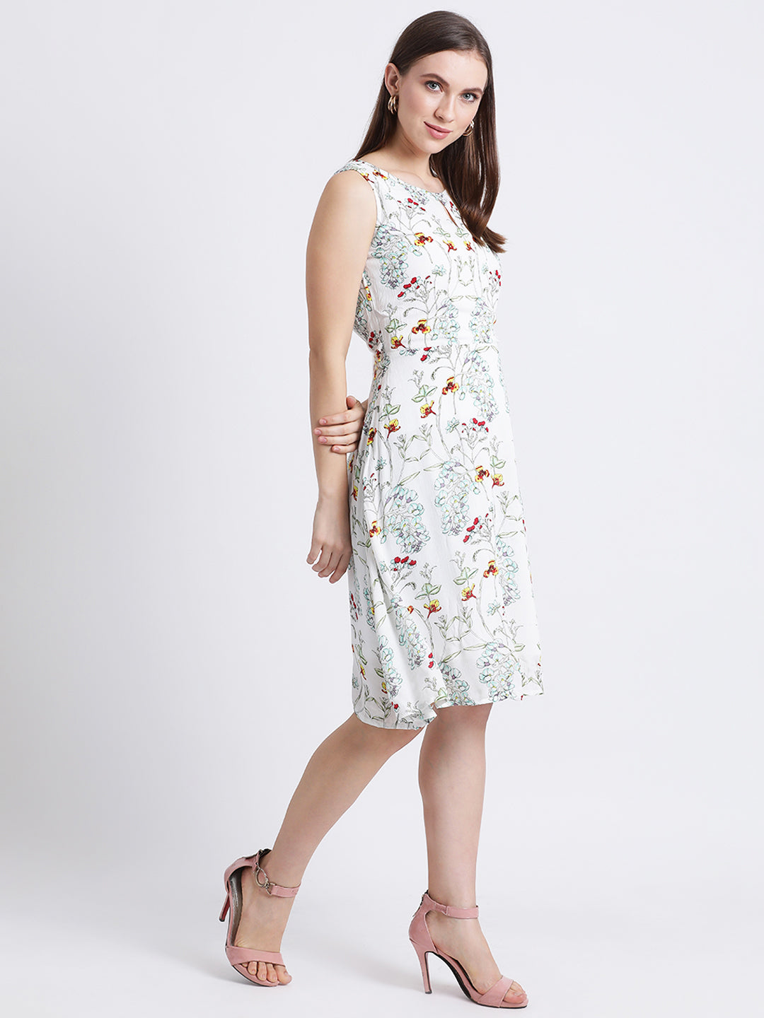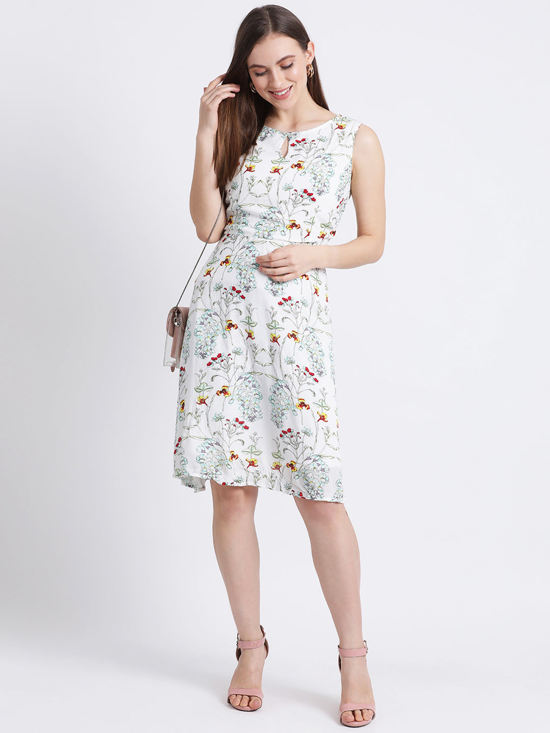 - Description : Zink London Women's Off White Floral Print A-Line Dress