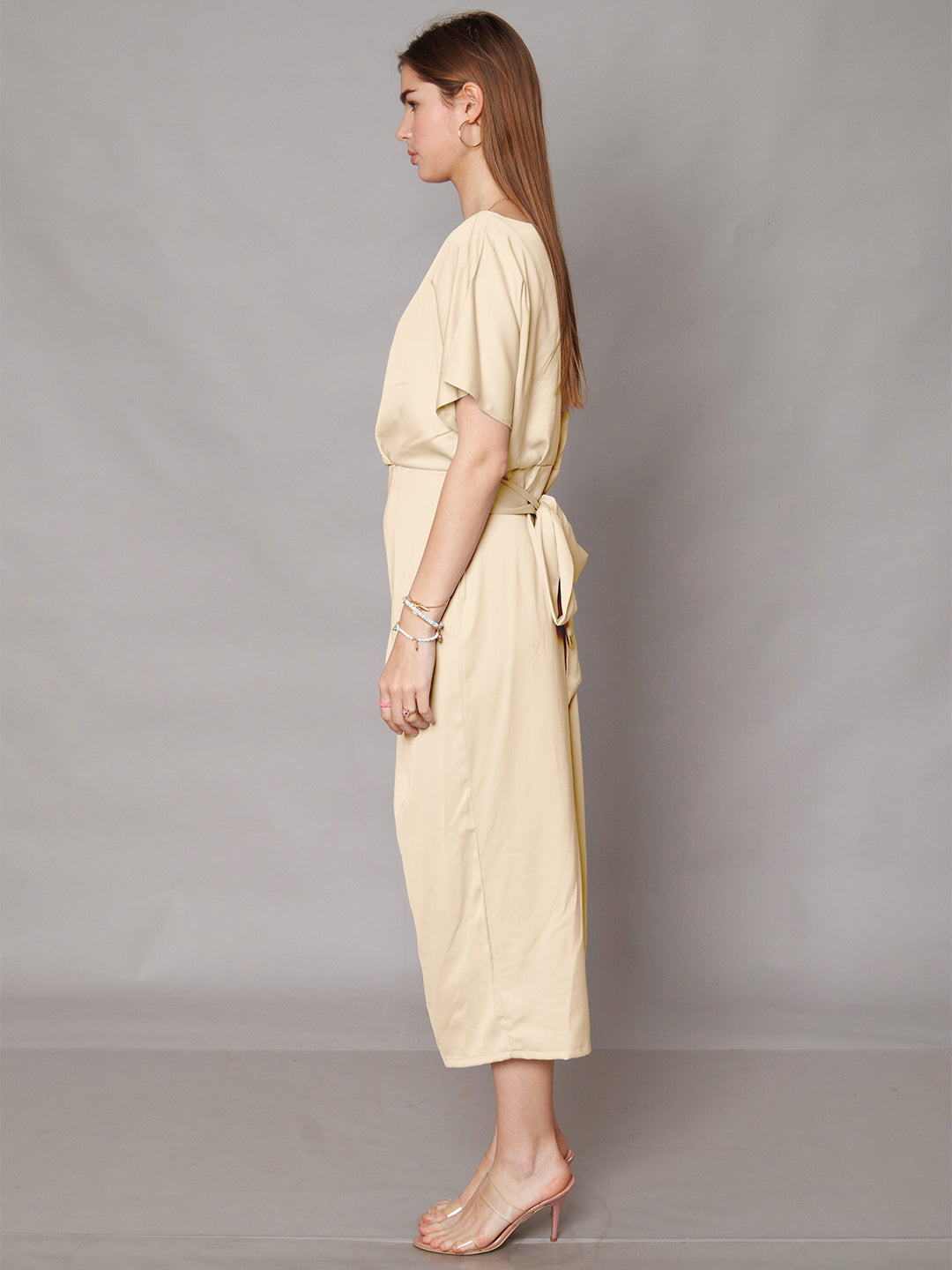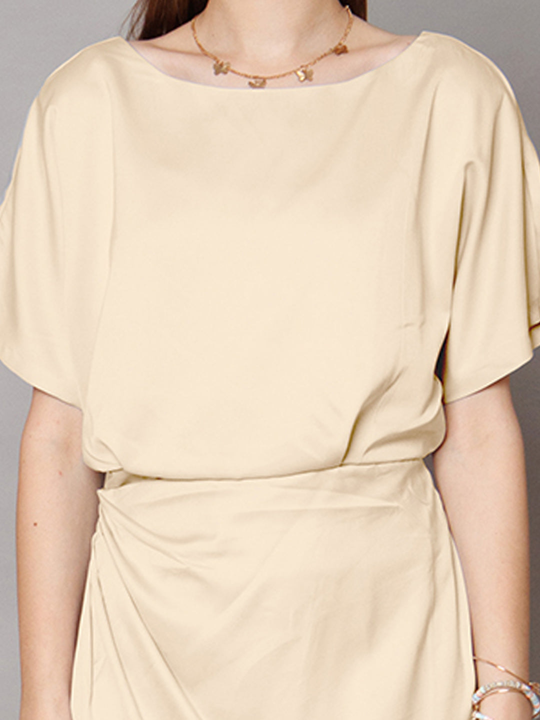 Multi-Colored Tropical Print Short Sleeves Knee-Length Dress