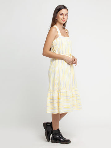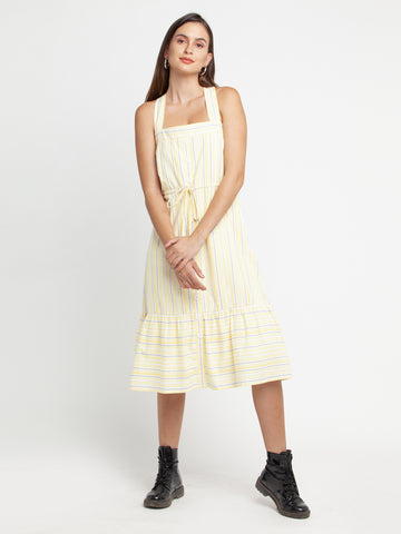 - Description : Off White Striped Tiered Midi Dress For Women