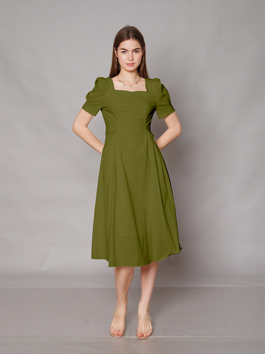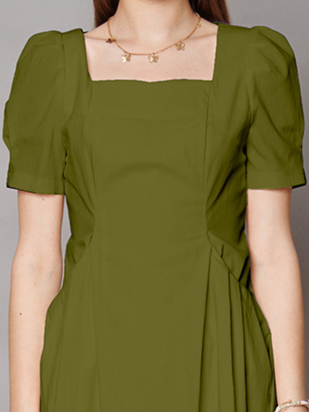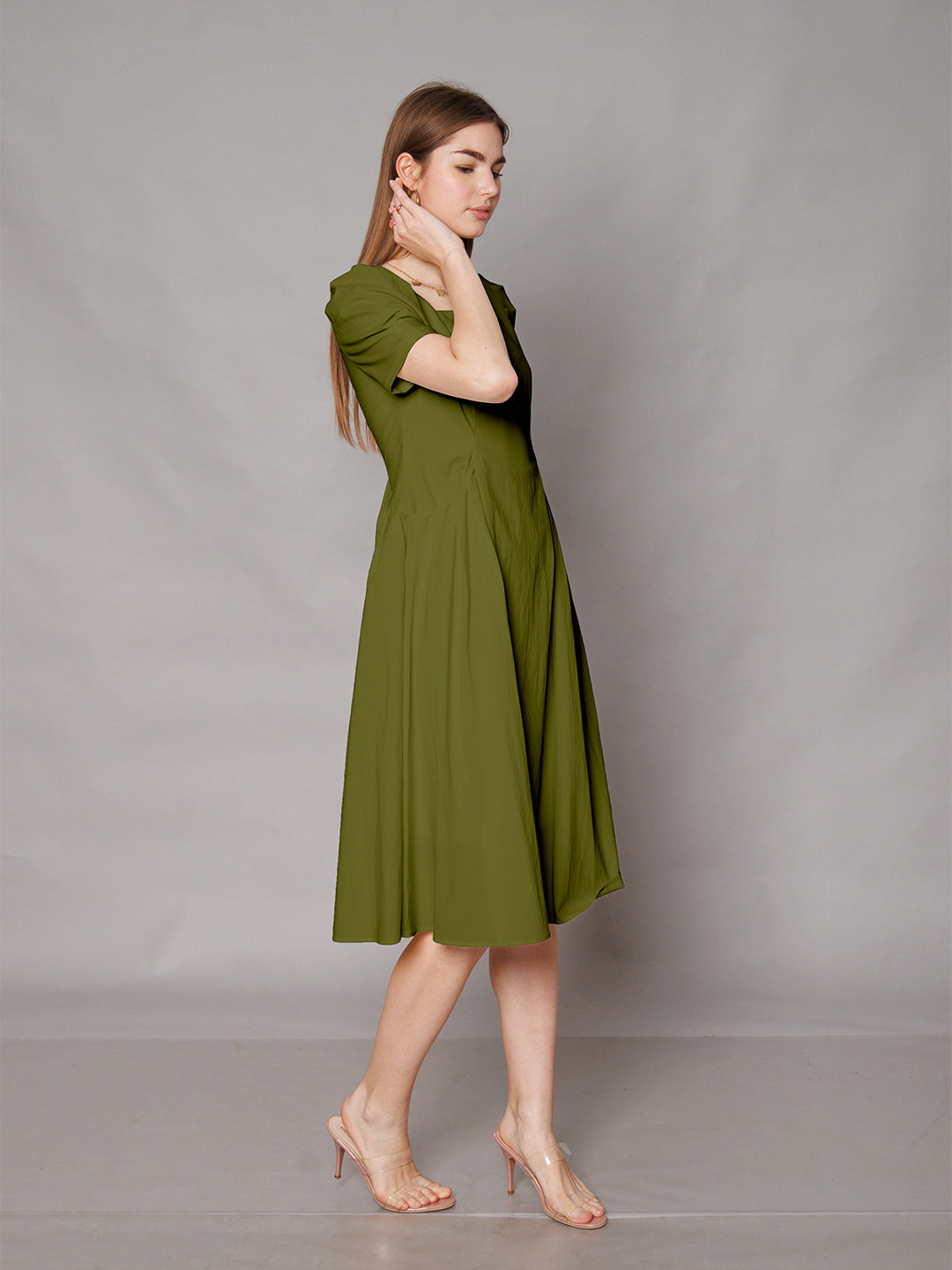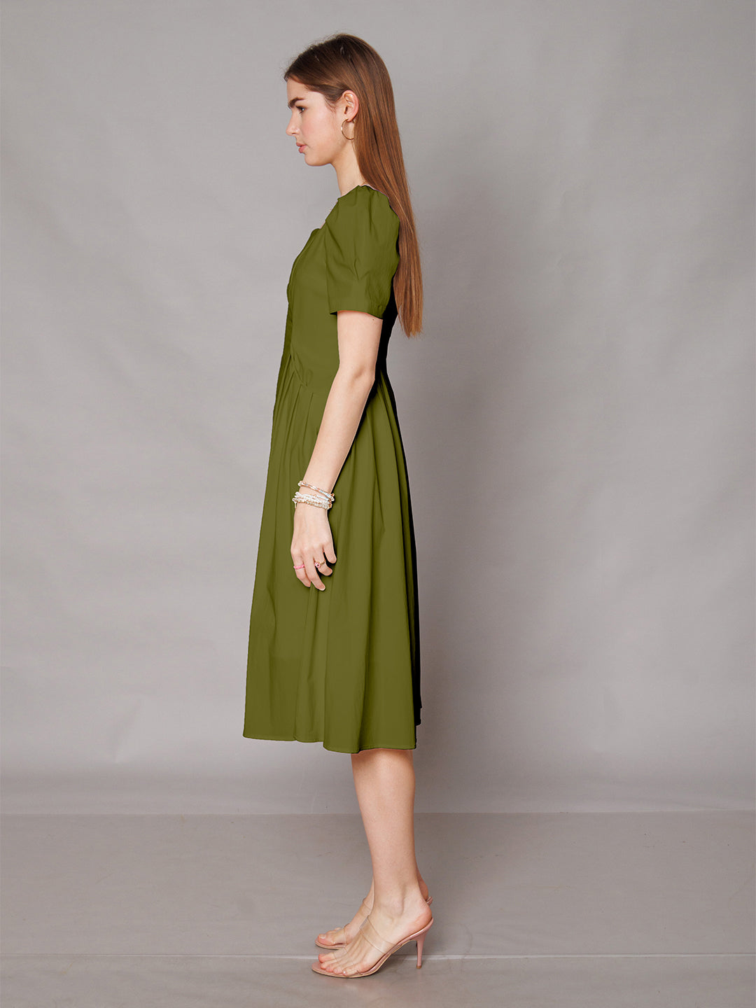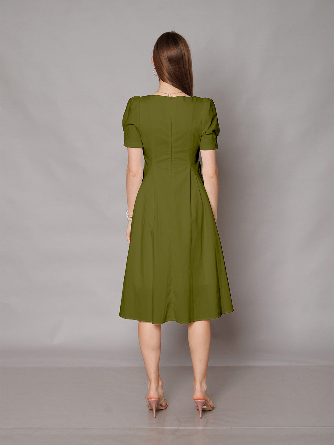 Multi-Colored Tropical Print Short Sleeves Knee-Length Dress