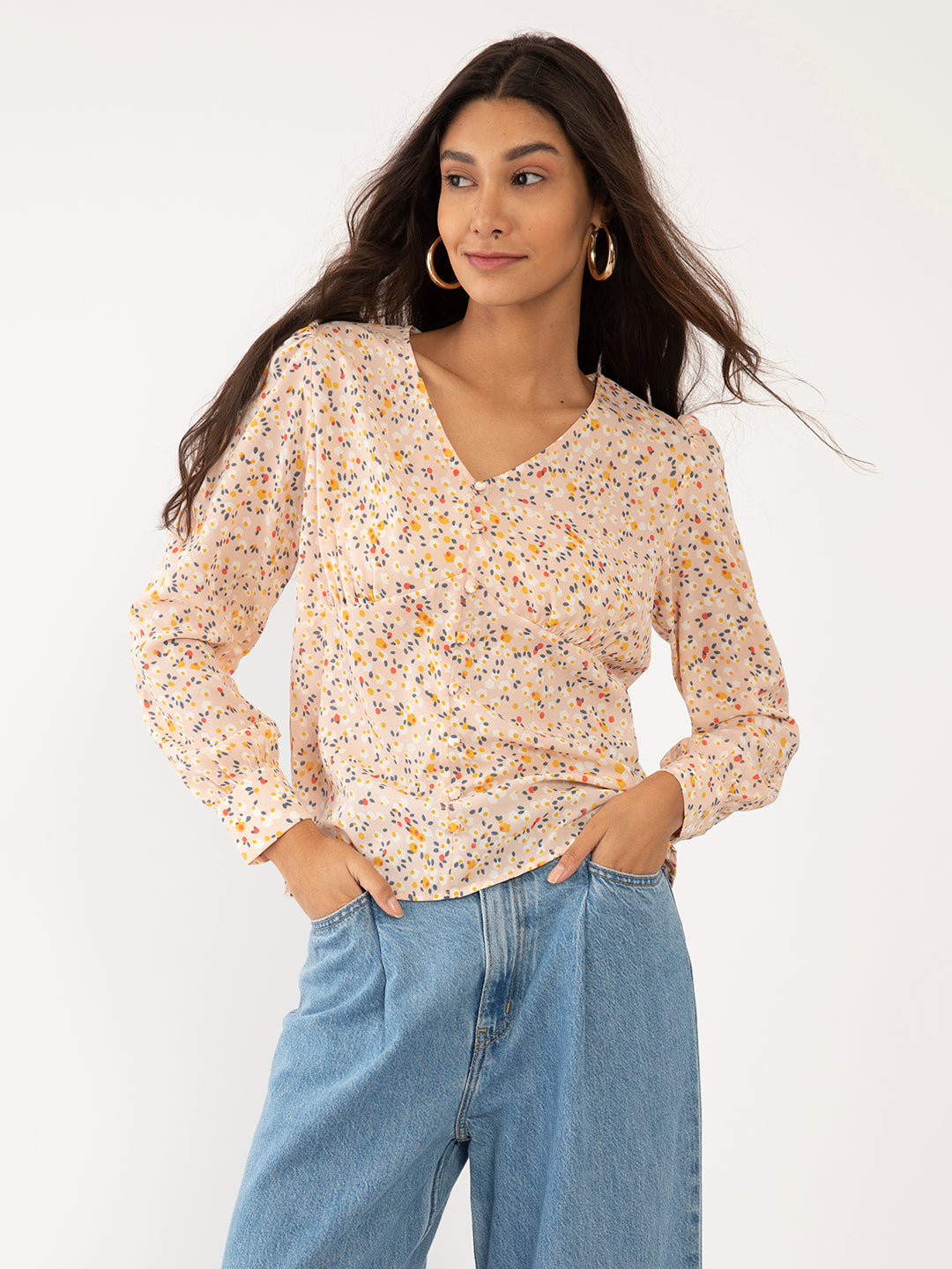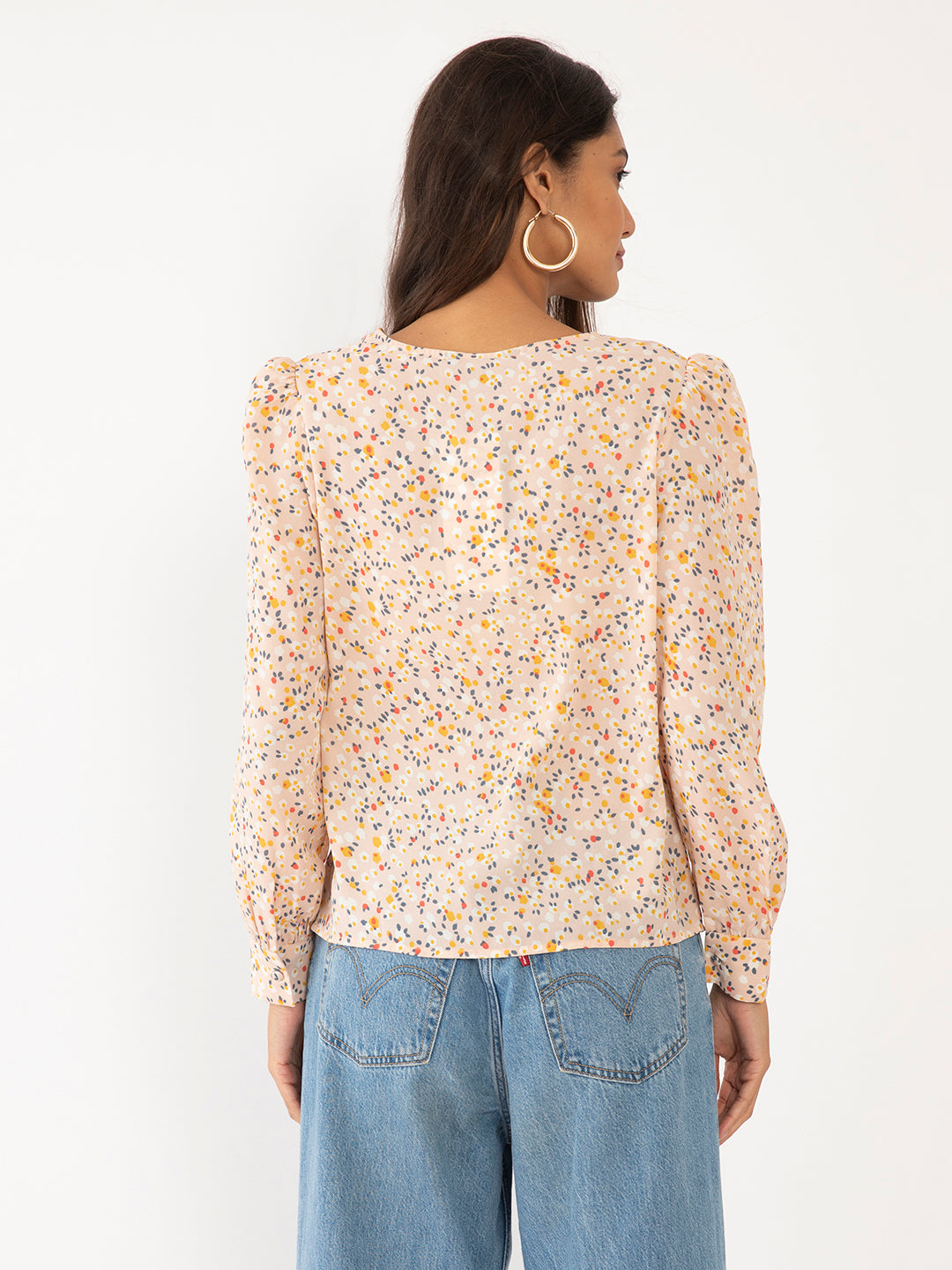 Multi-Colored Tropical Print 3/4th Sleeves Top