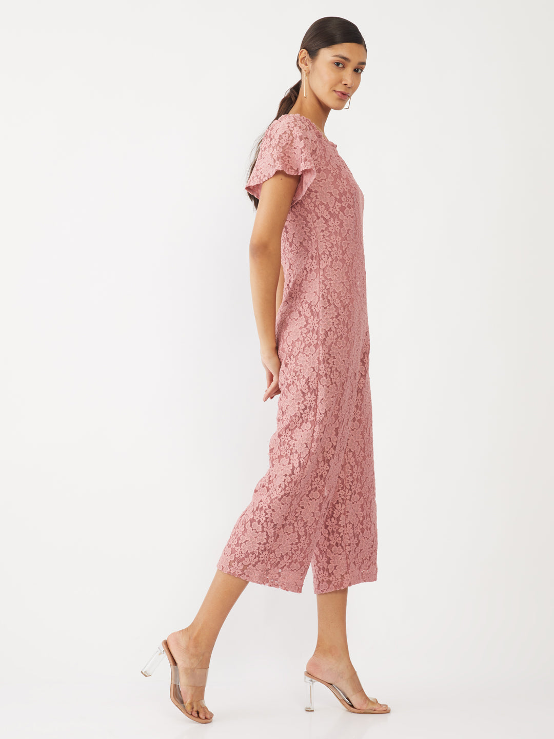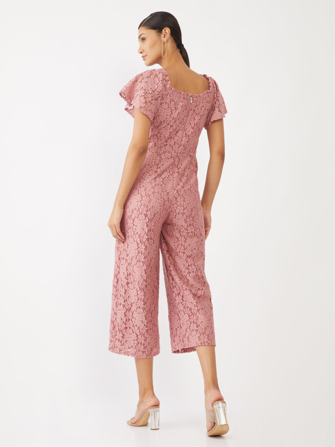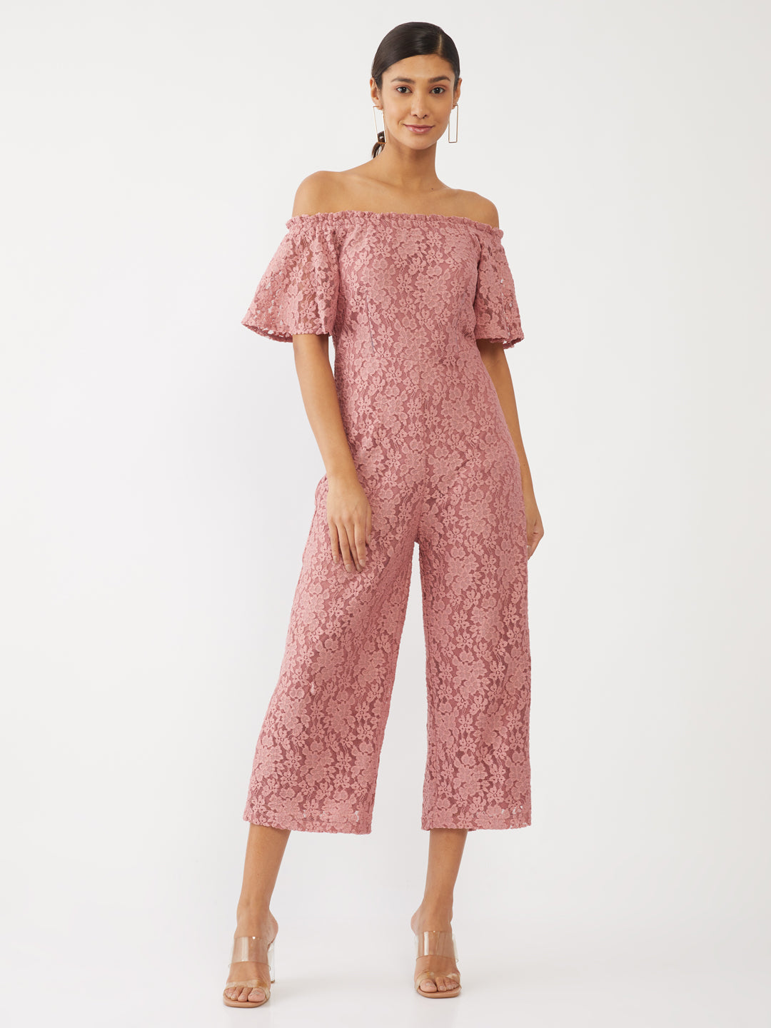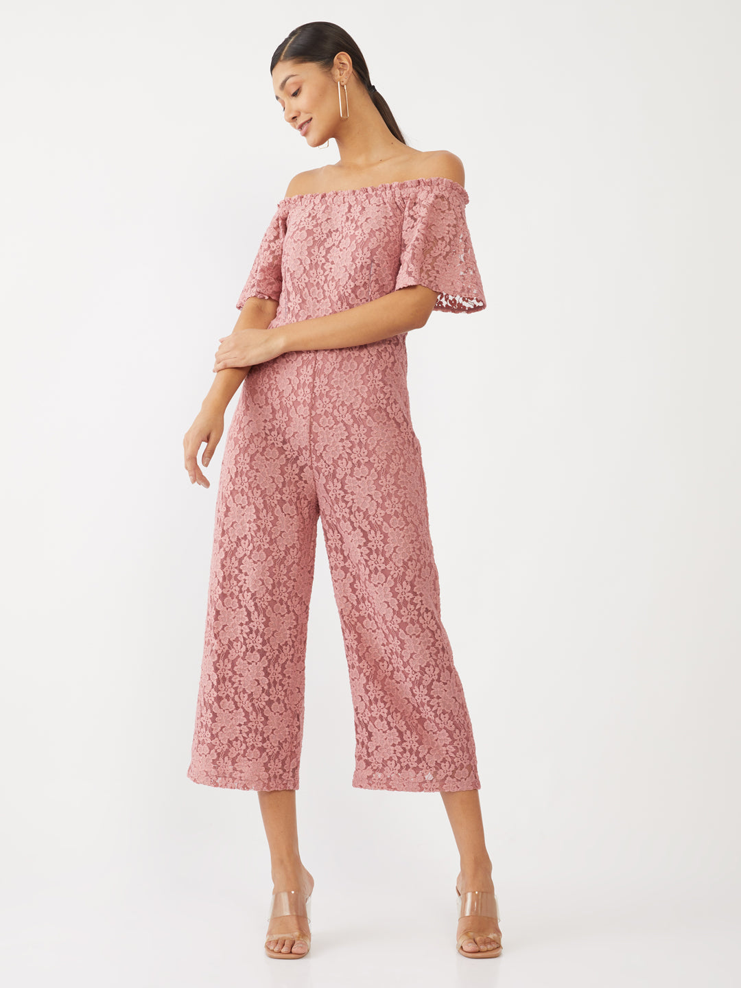 - Description : Pink Lace Offhoulder Jumpsuit For Women