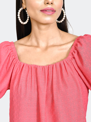 Black & Baby Pink Floral Print Ruffled Sleeves Top