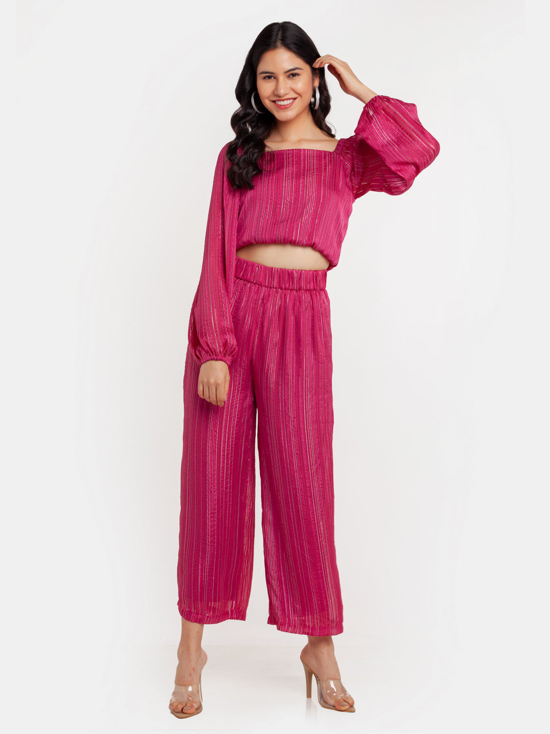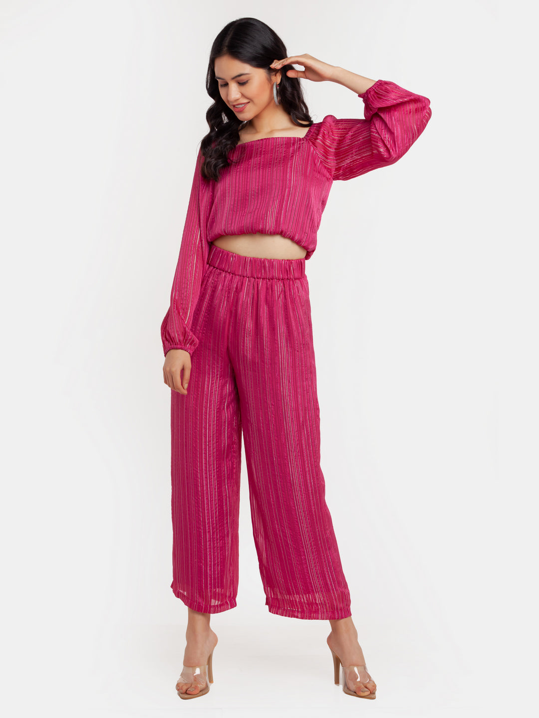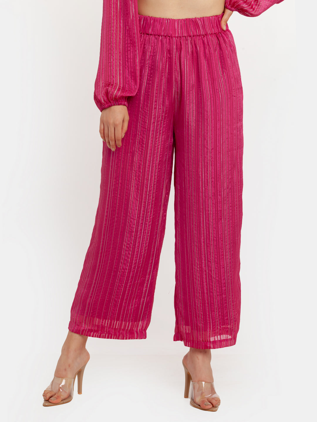 - Description : Pink Shimmer Elasticated Trouser For Women