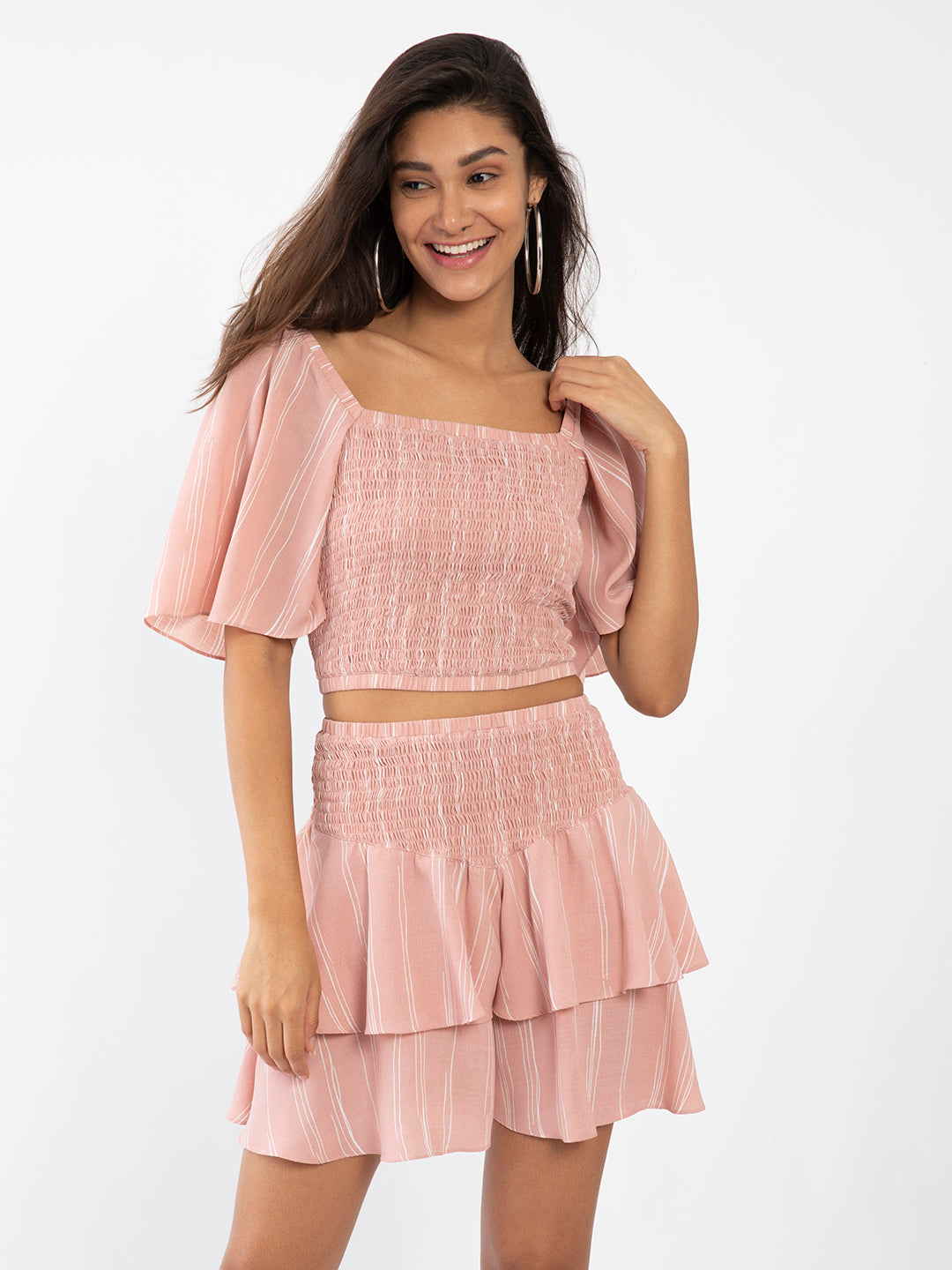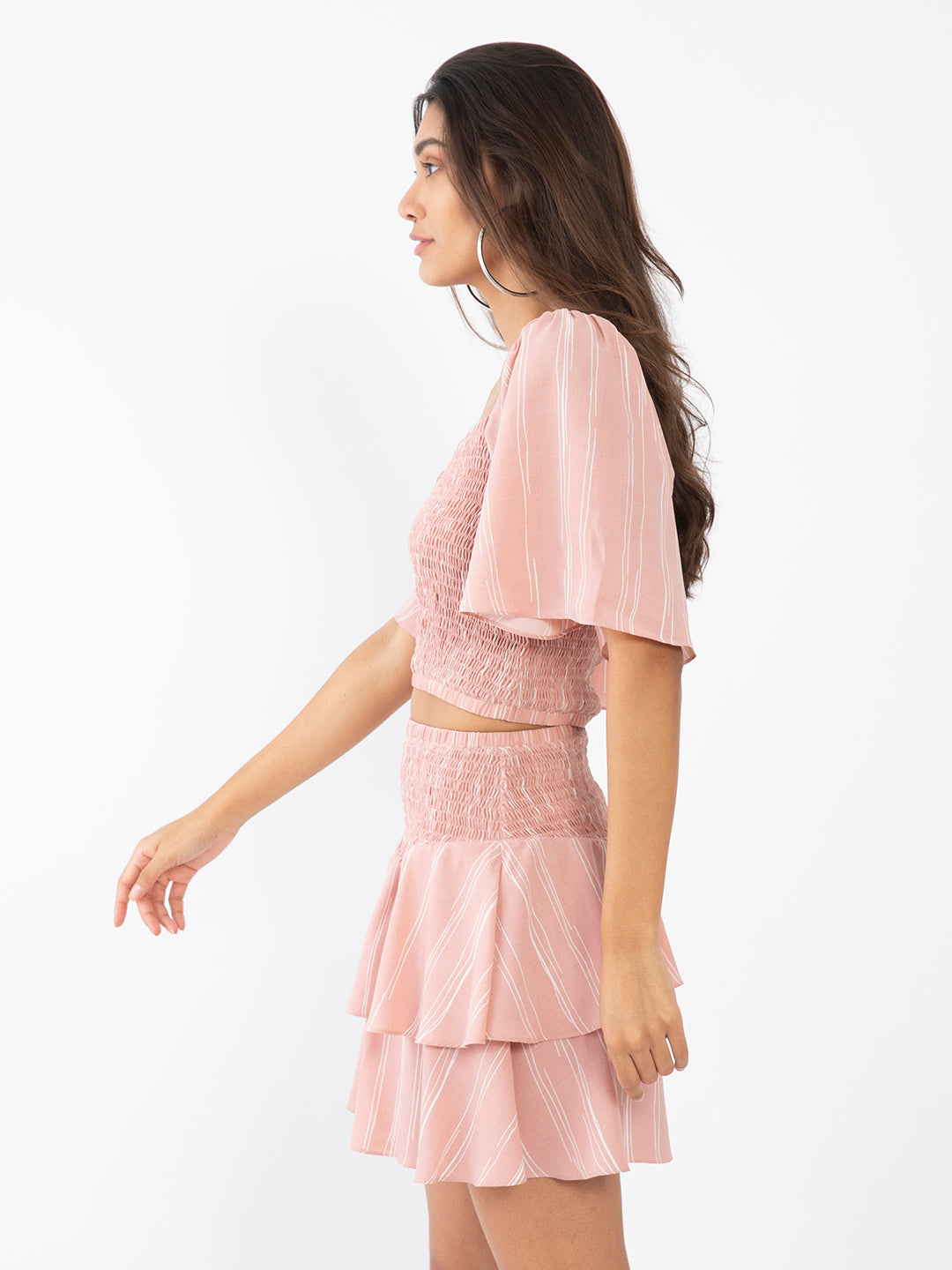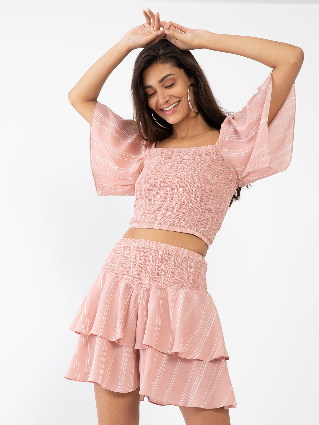 - Description : Pink Striped Flared Sleeve Co-ords For Women