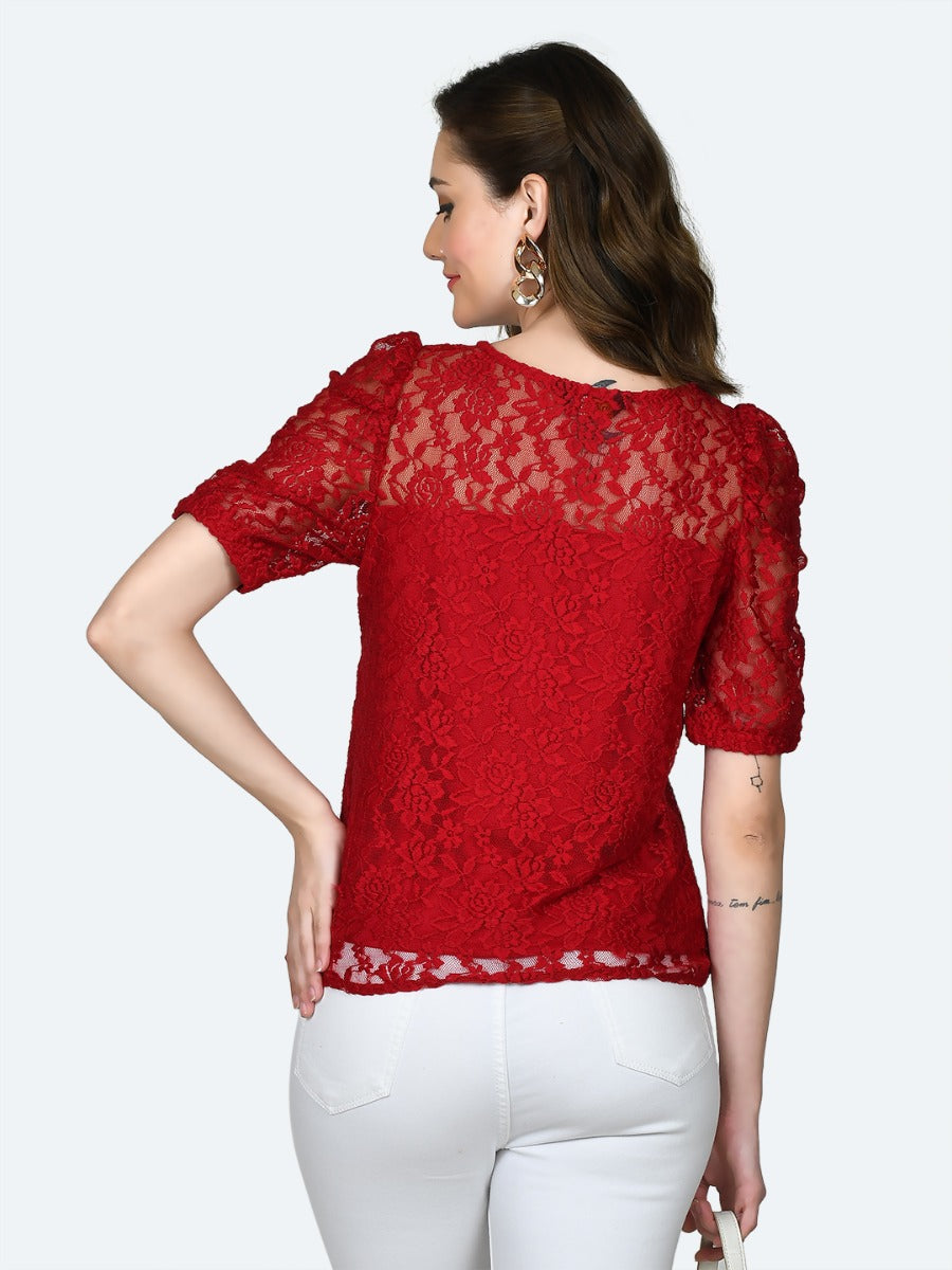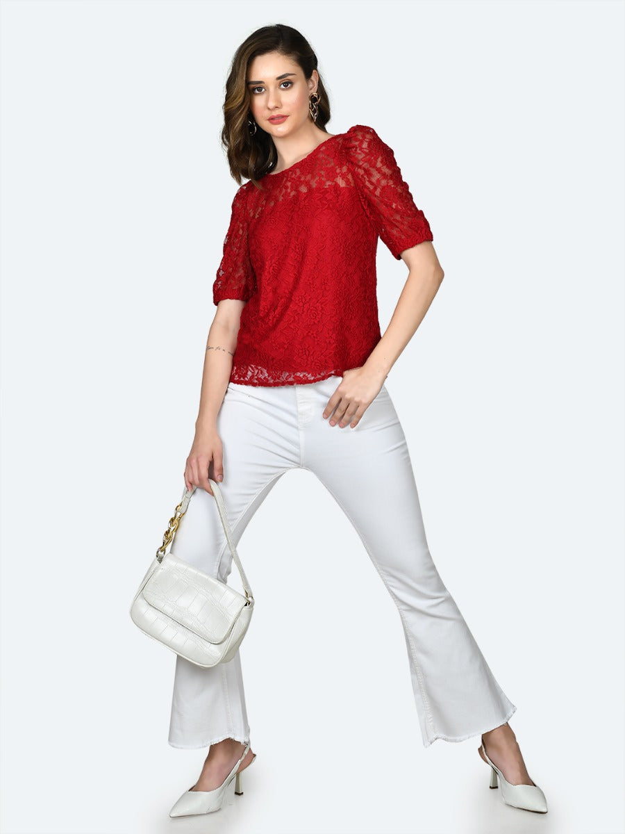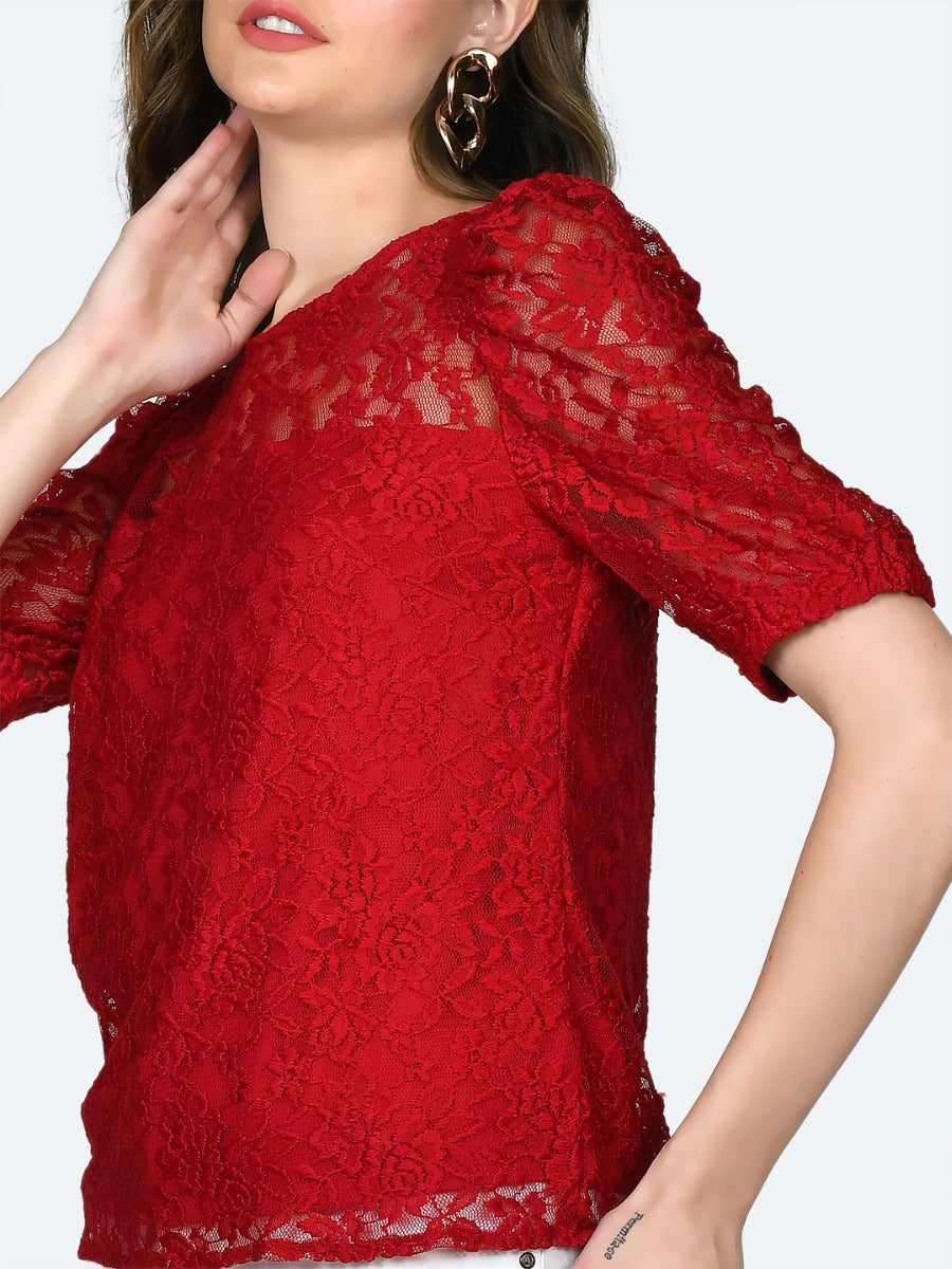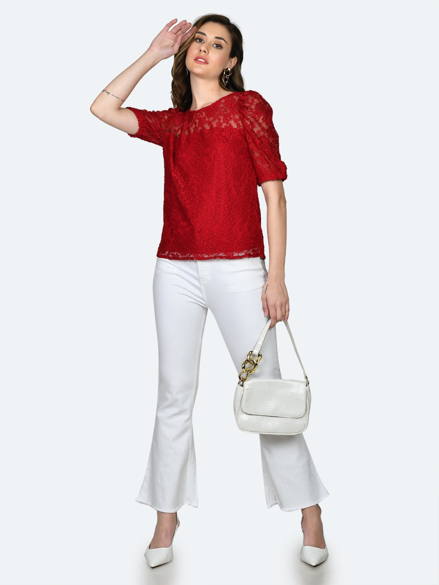 Multi-Colored Tropical Print 3/4th Sleeves Top