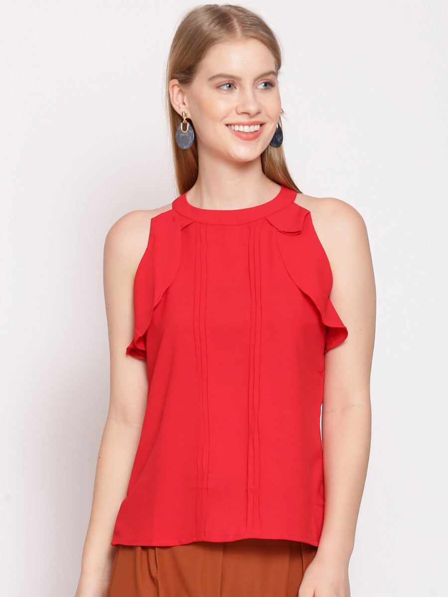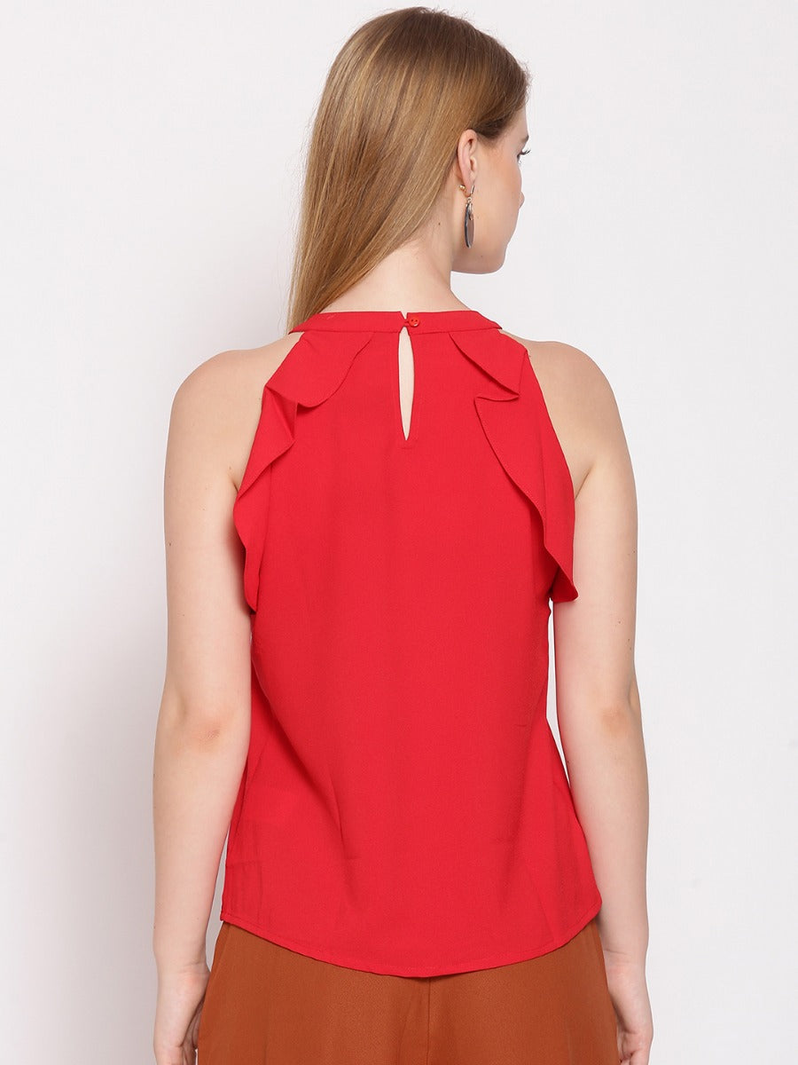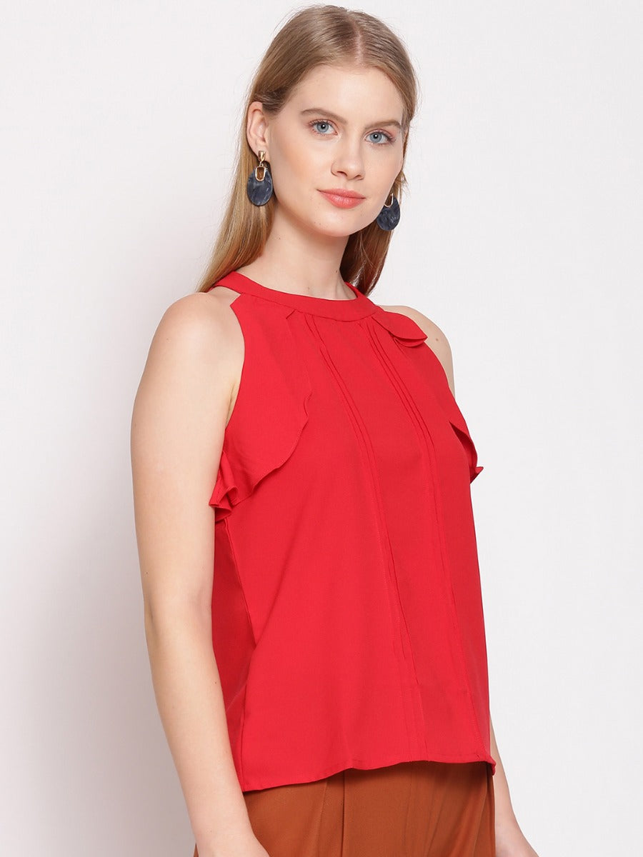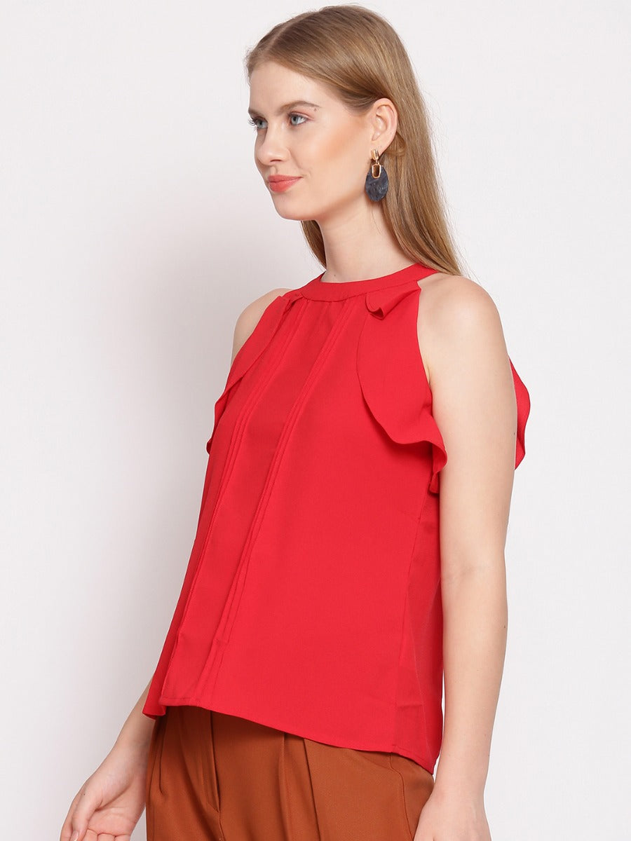 Black & Baby Pink Floral Print Ruffled Sleeves Top