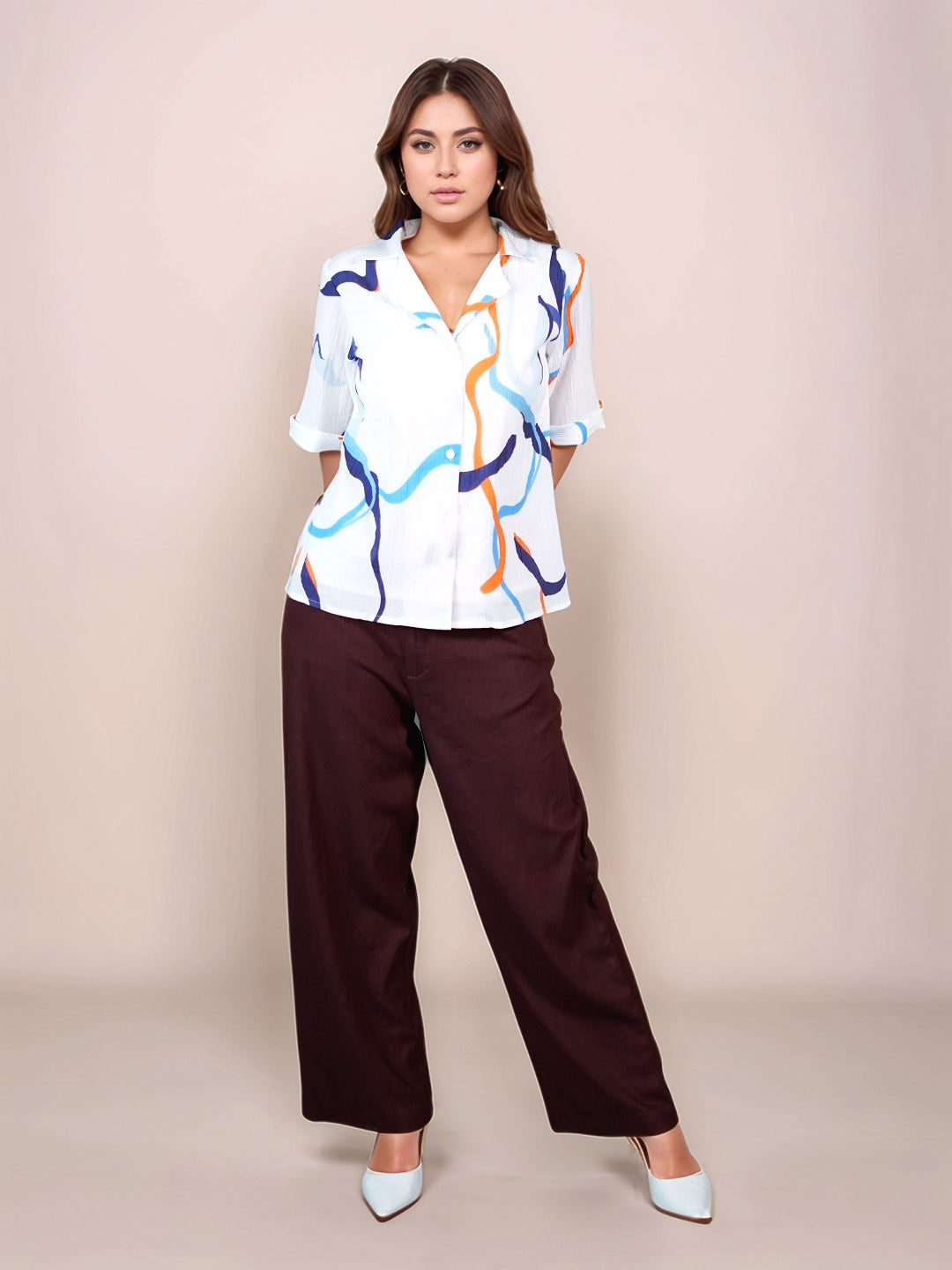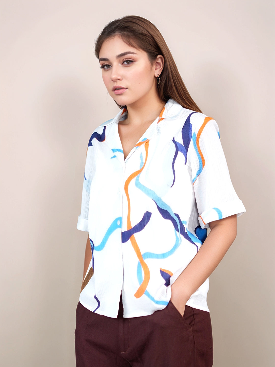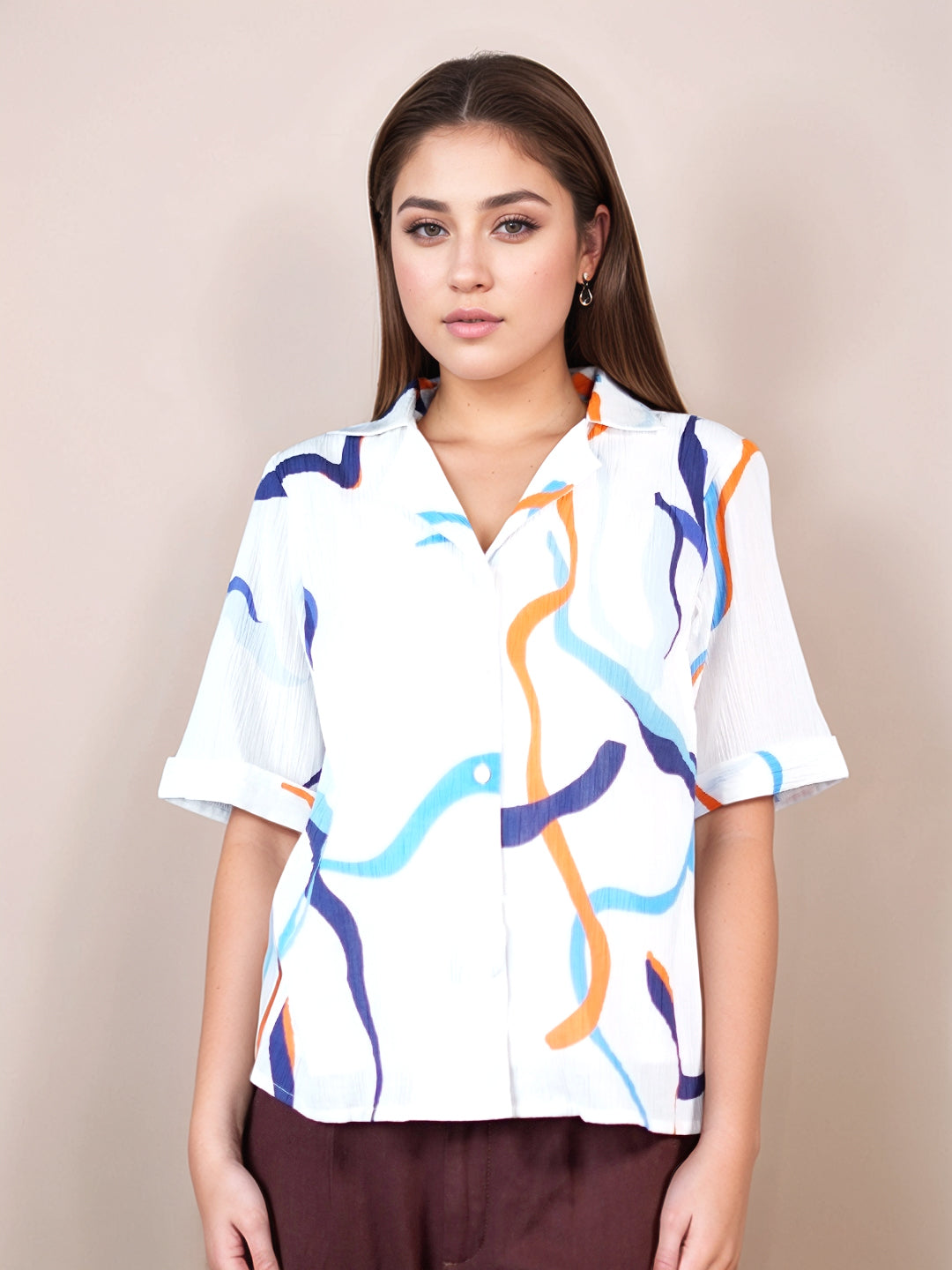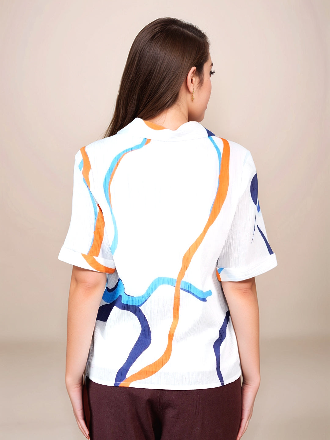 White Graphic Print Half Sleeves Shirt