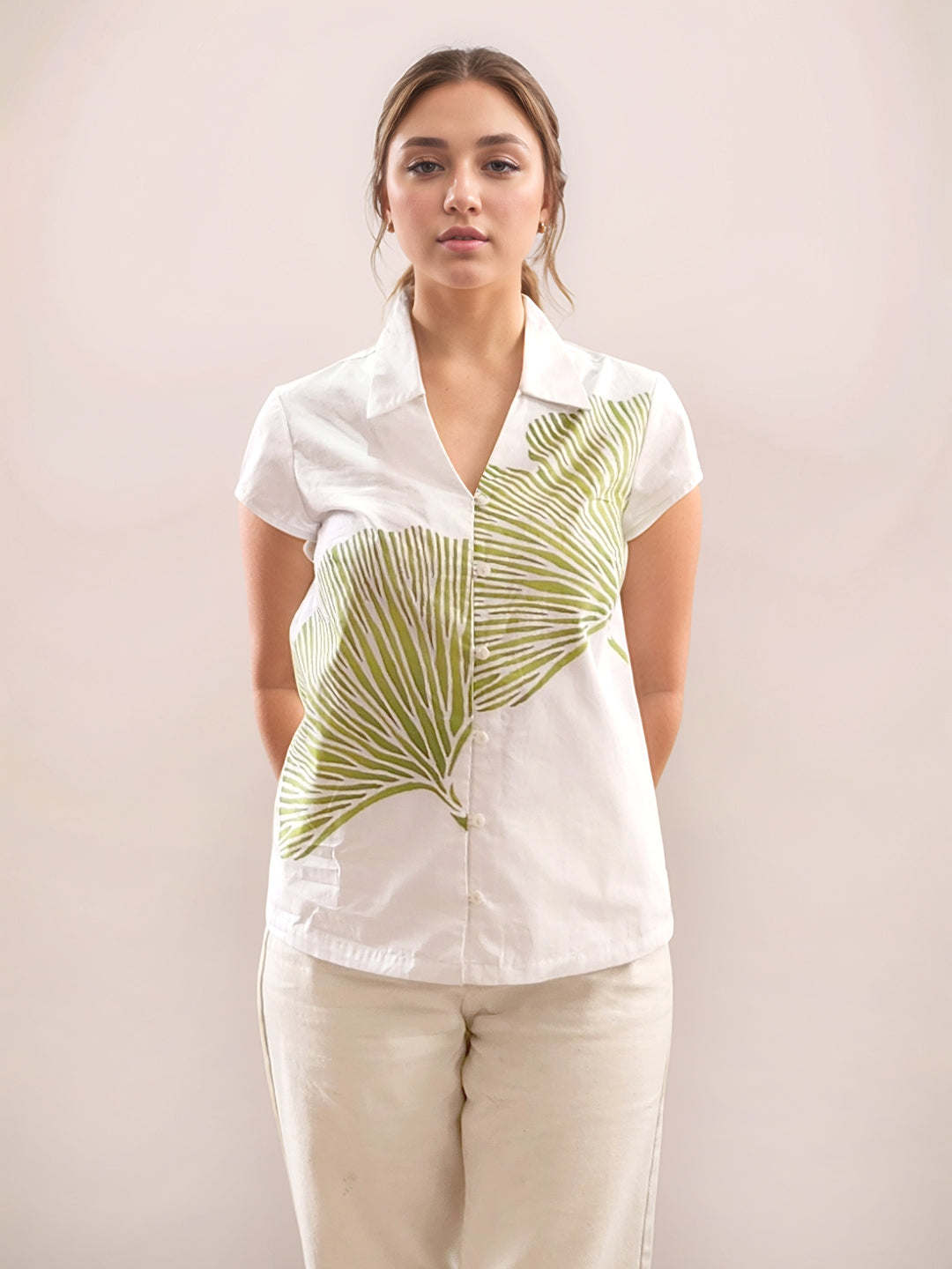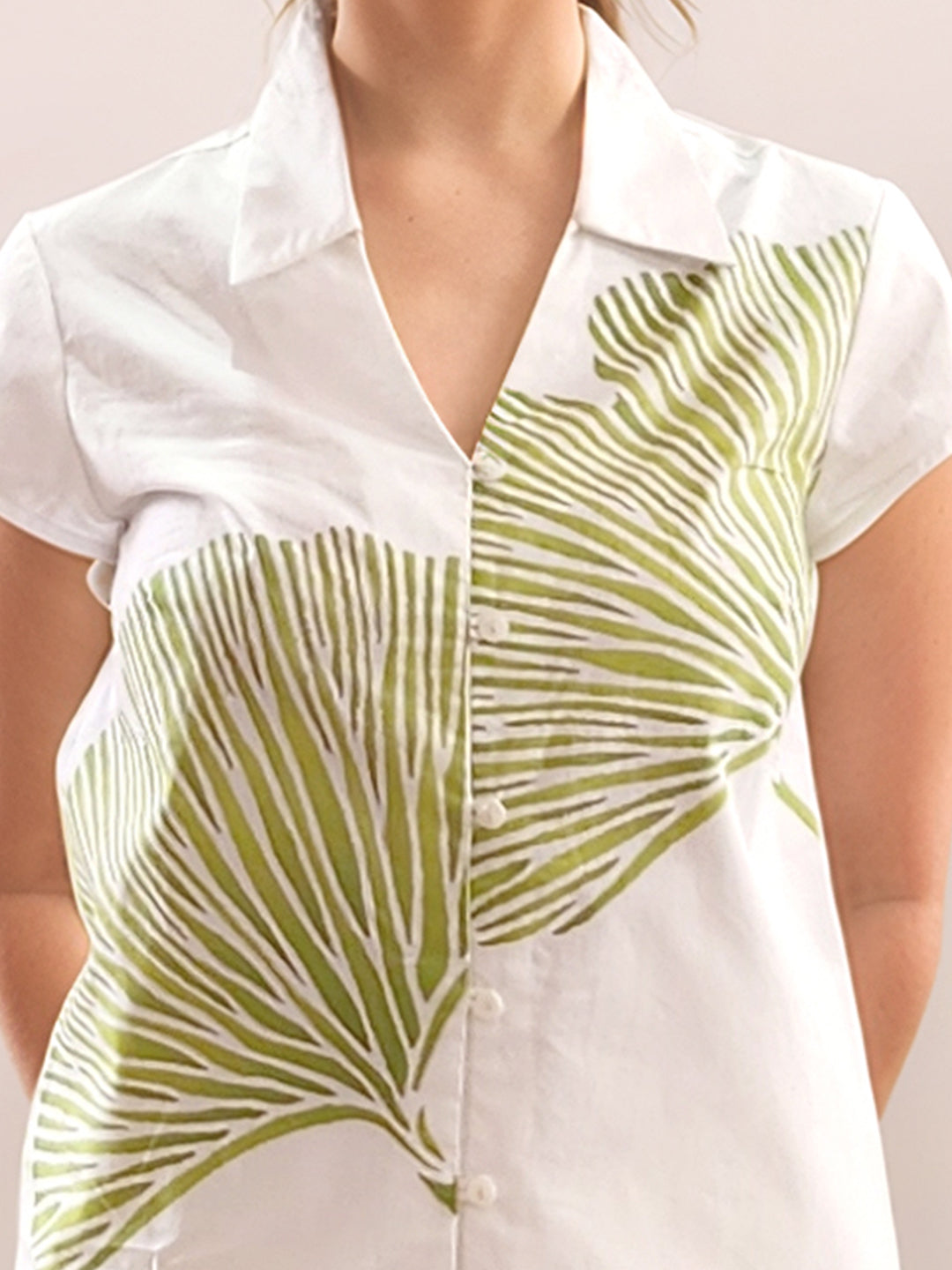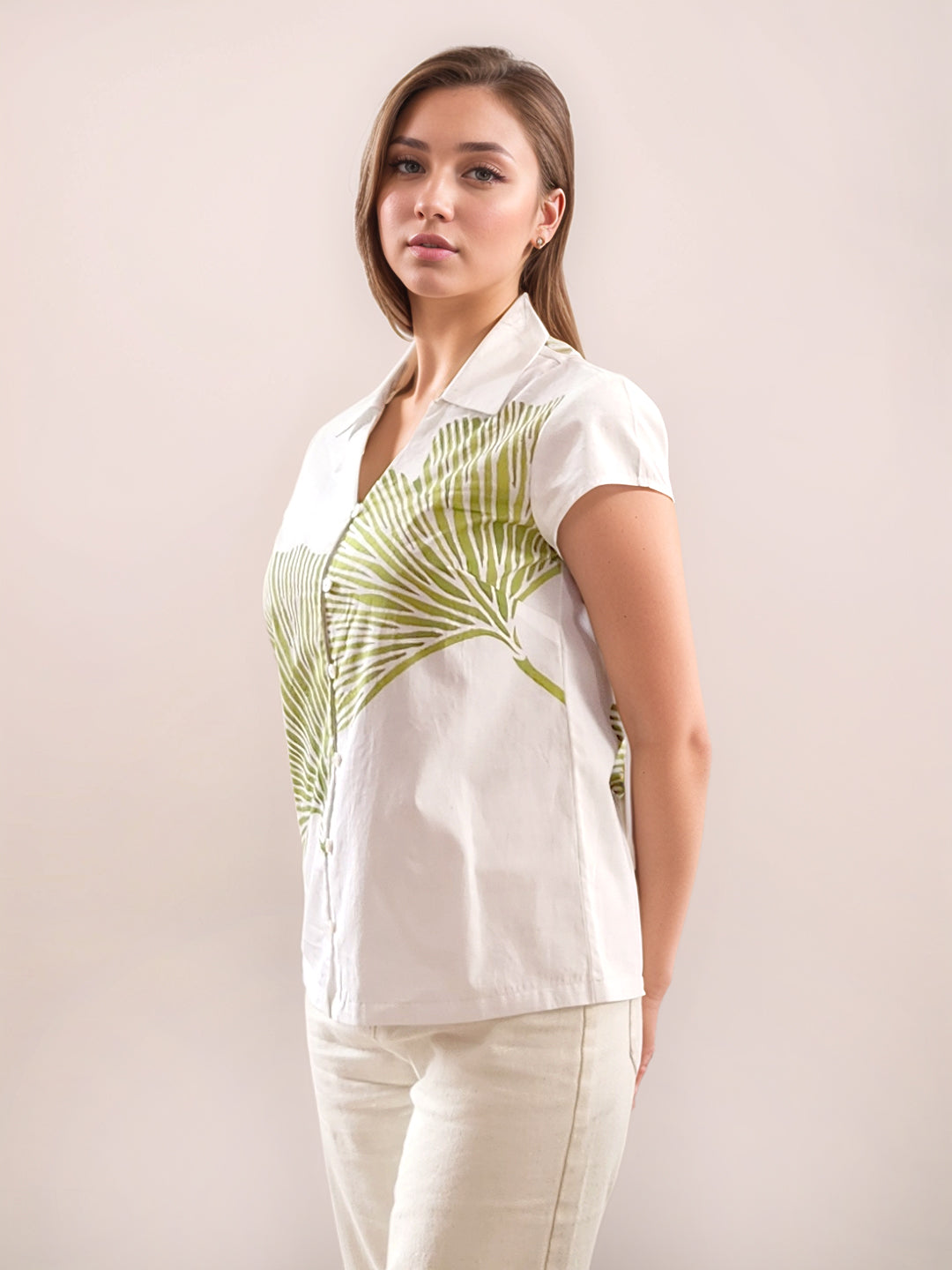 White Tropical Print Long Sleeves Shirt