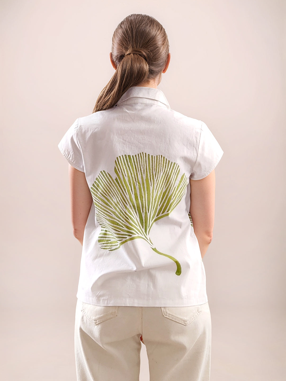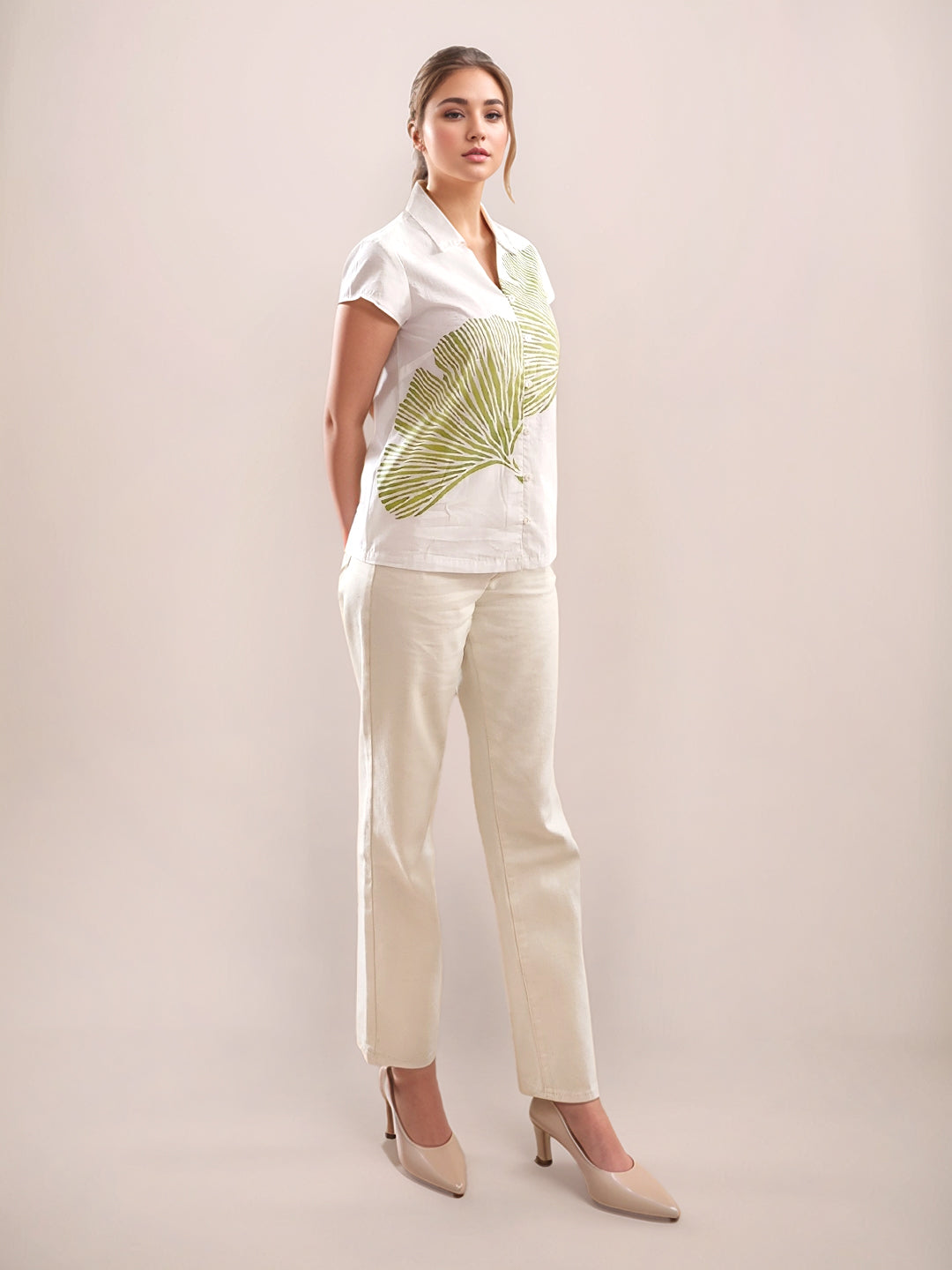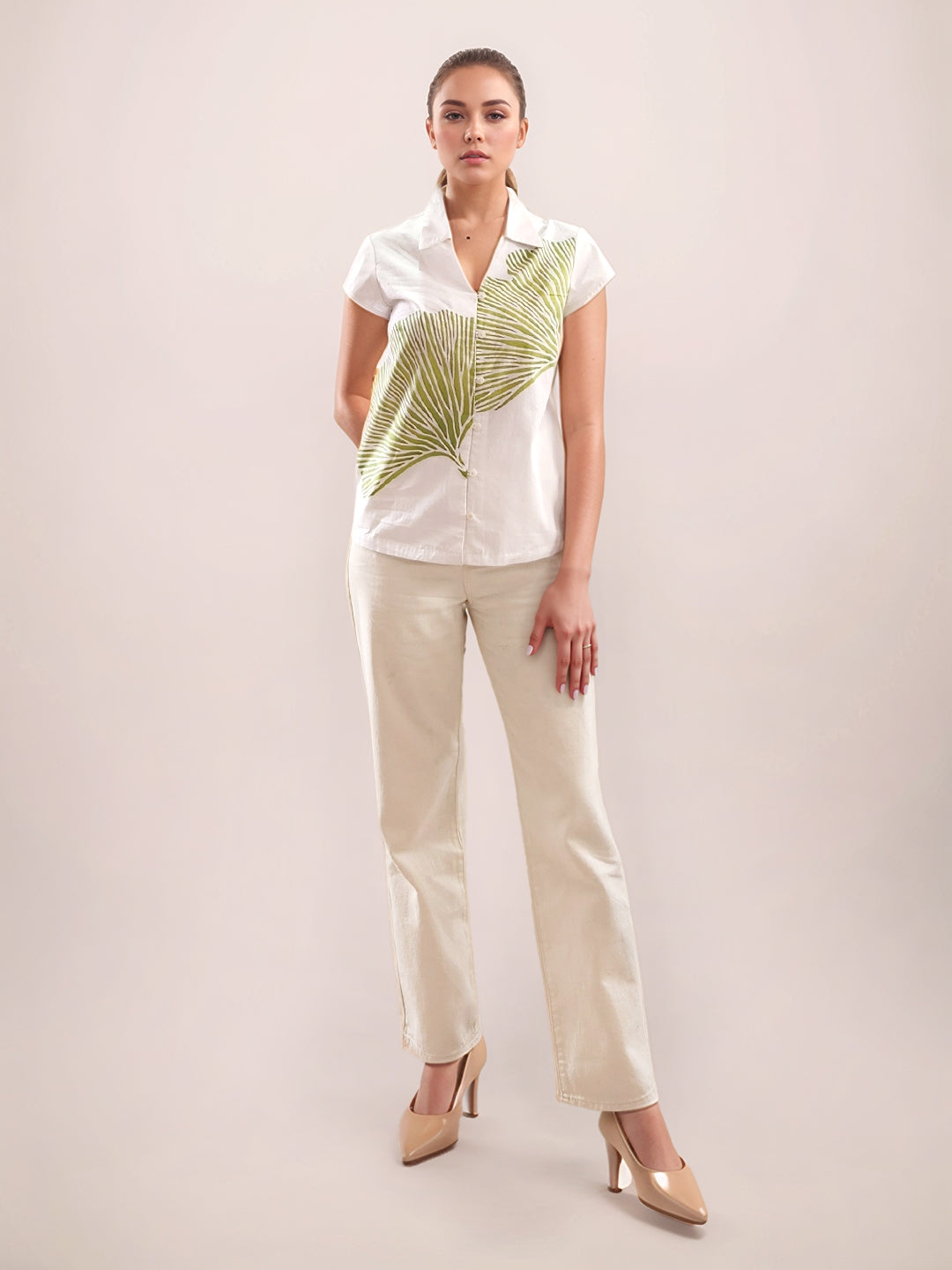 White Tropical Print Long Sleeves Shirt