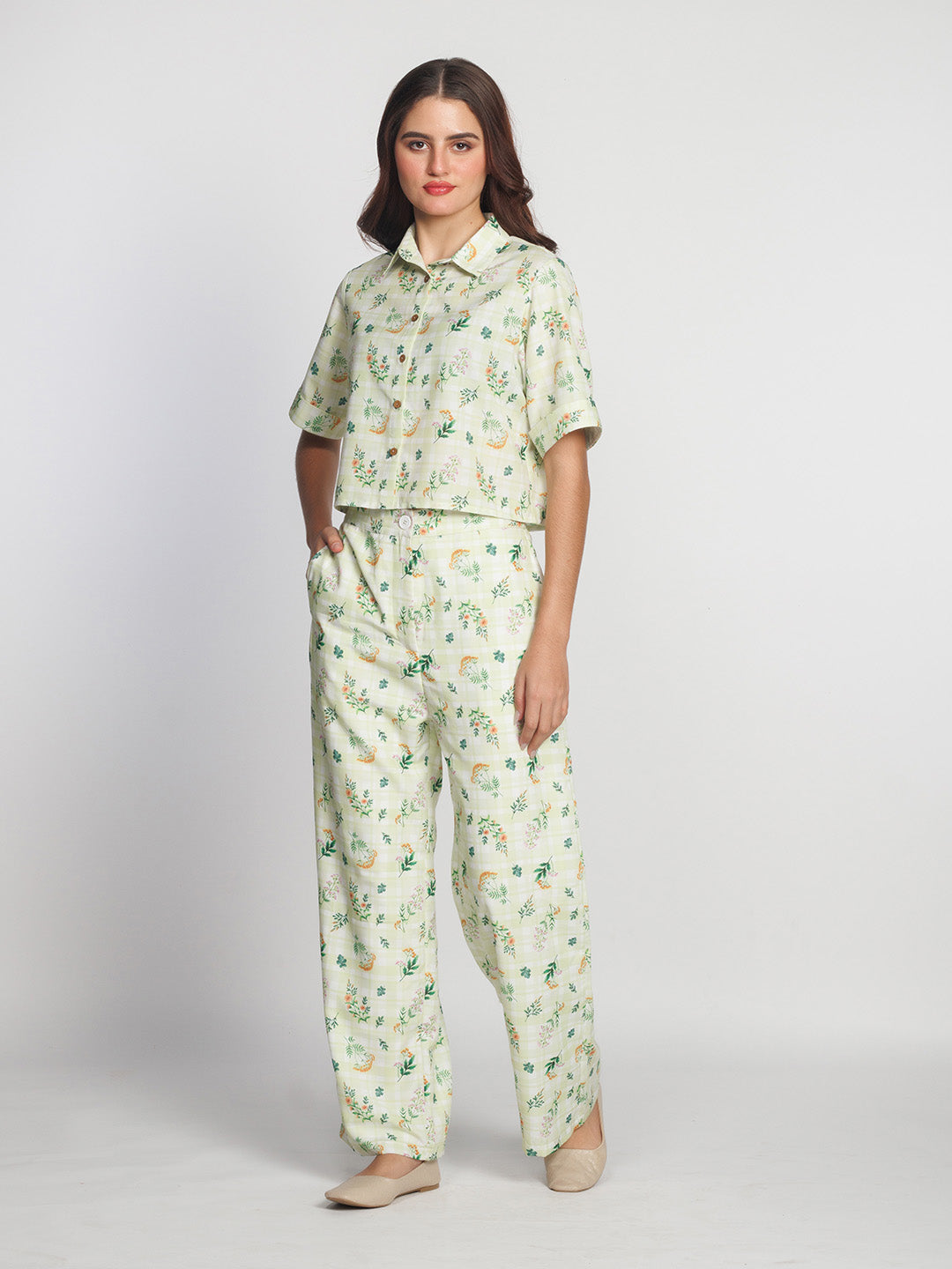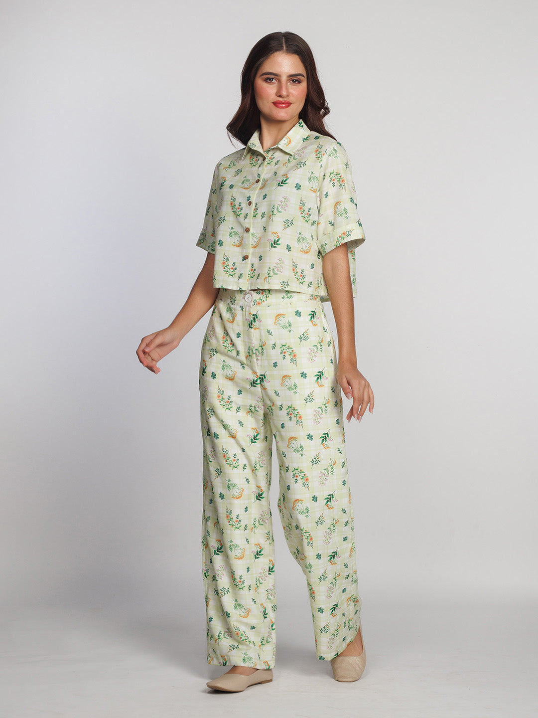 Green Floral Printed Co-Ord Set