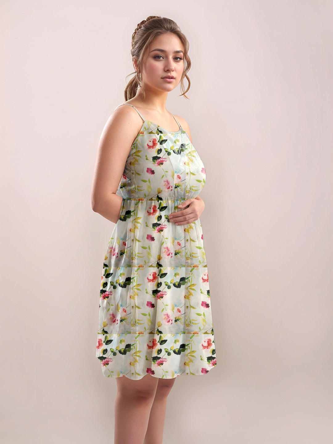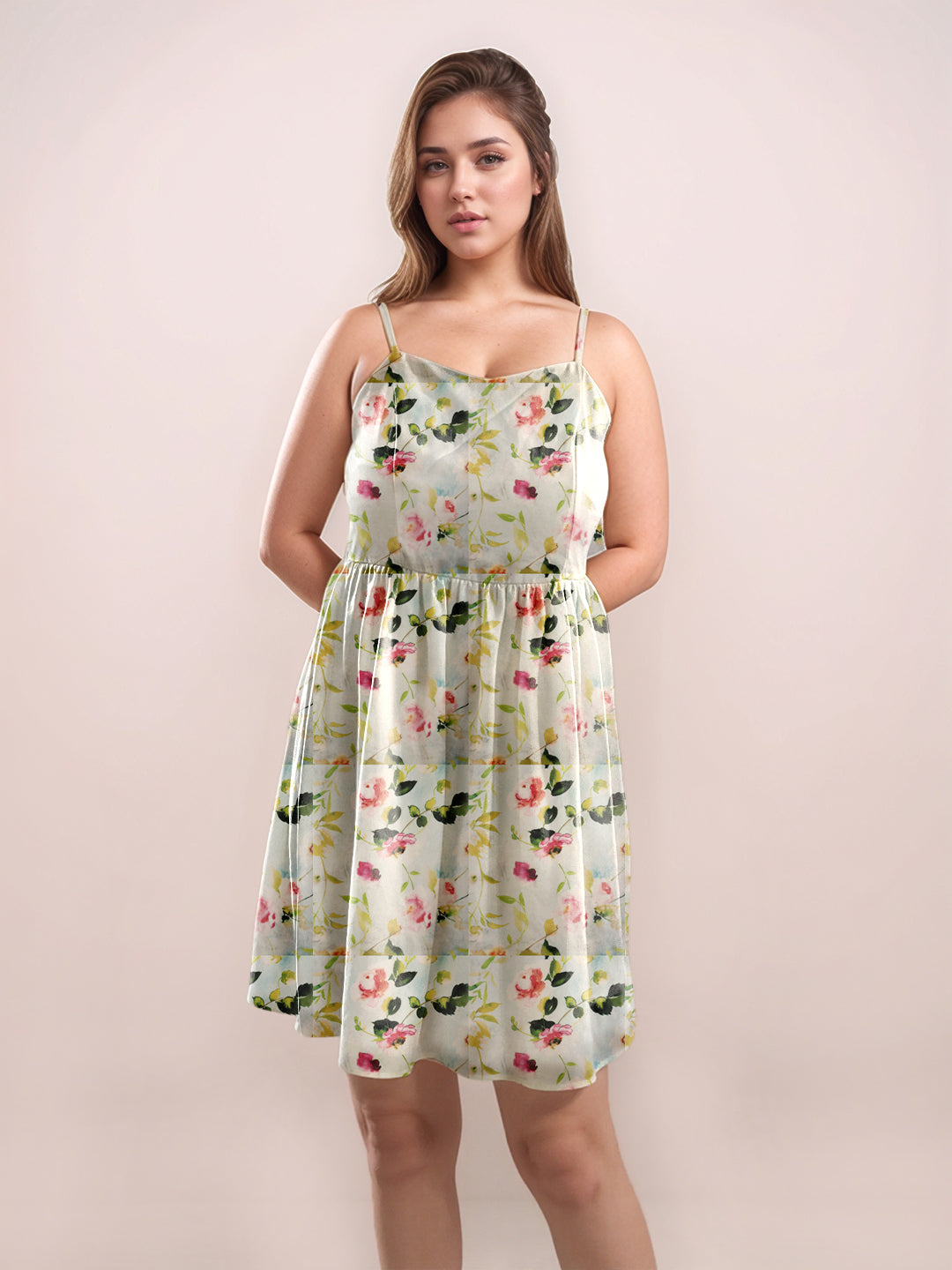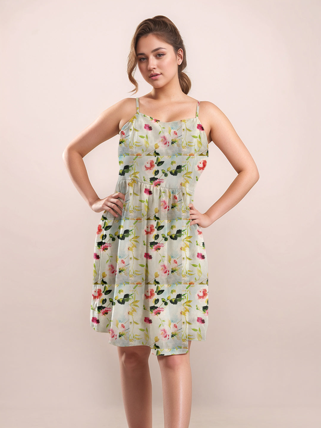 Blue Floral Sweetheart Neck Shoulder Straps V-Short Dress