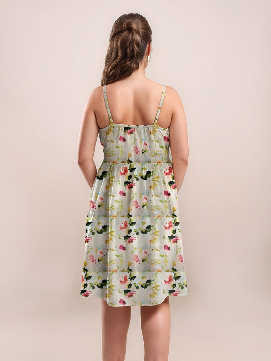 Multi-Colored Tropical Print Short Sleeves Knee-Length Dress
