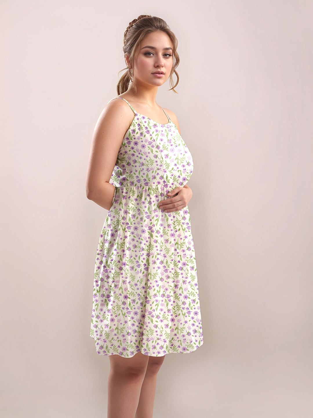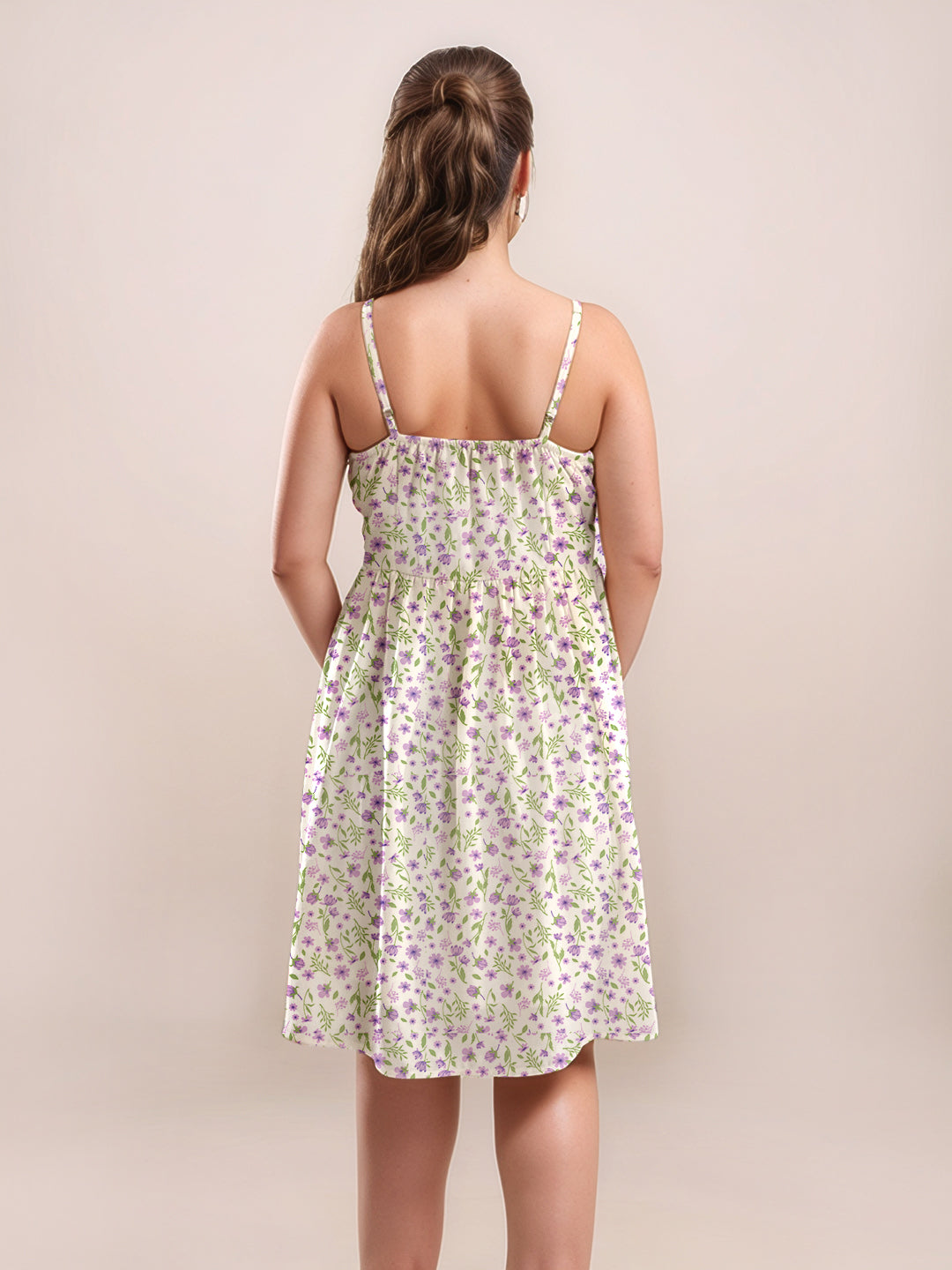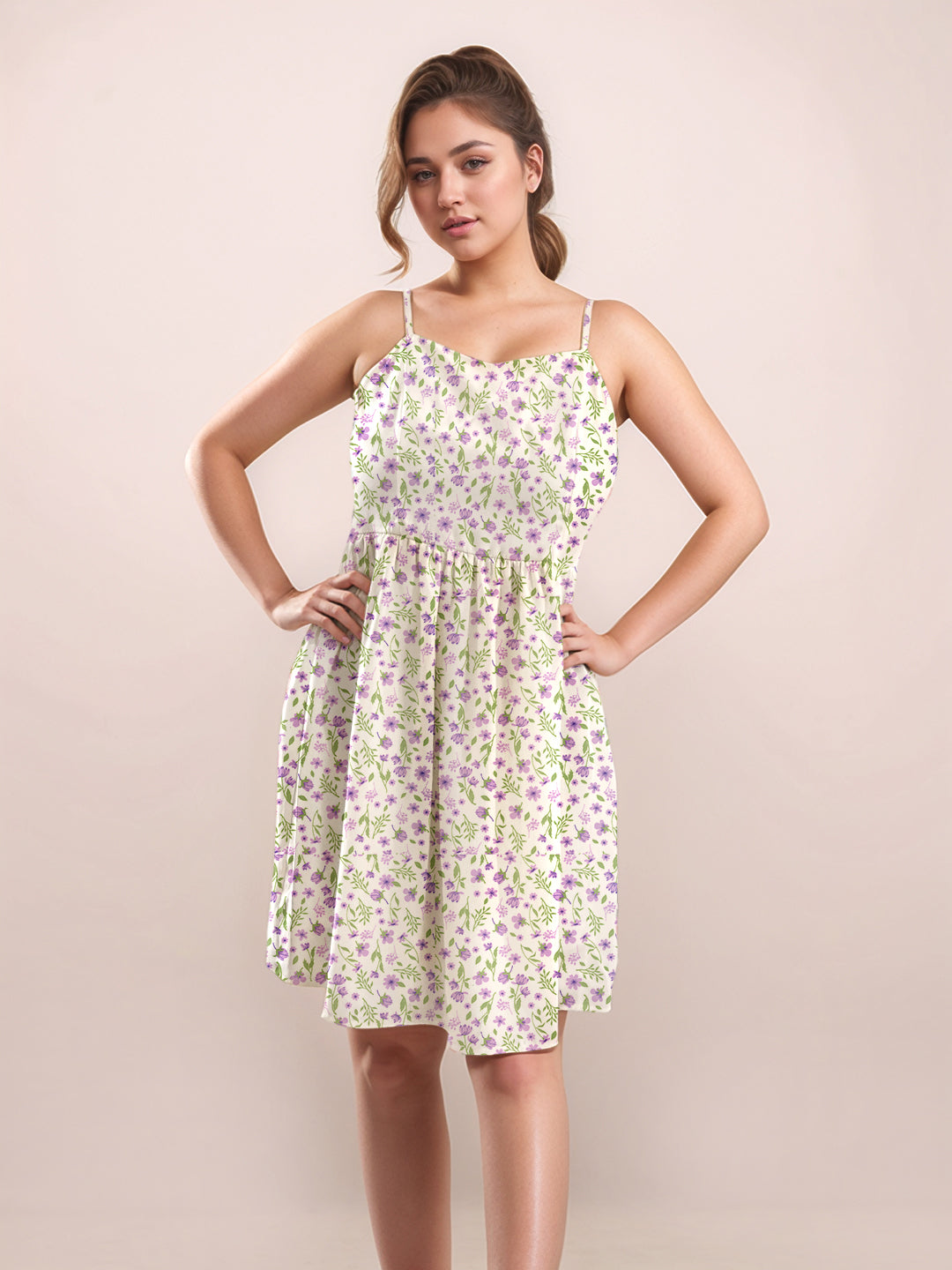 White Floral Sweetheart Neck Shoulder Straps V-Short Dress
