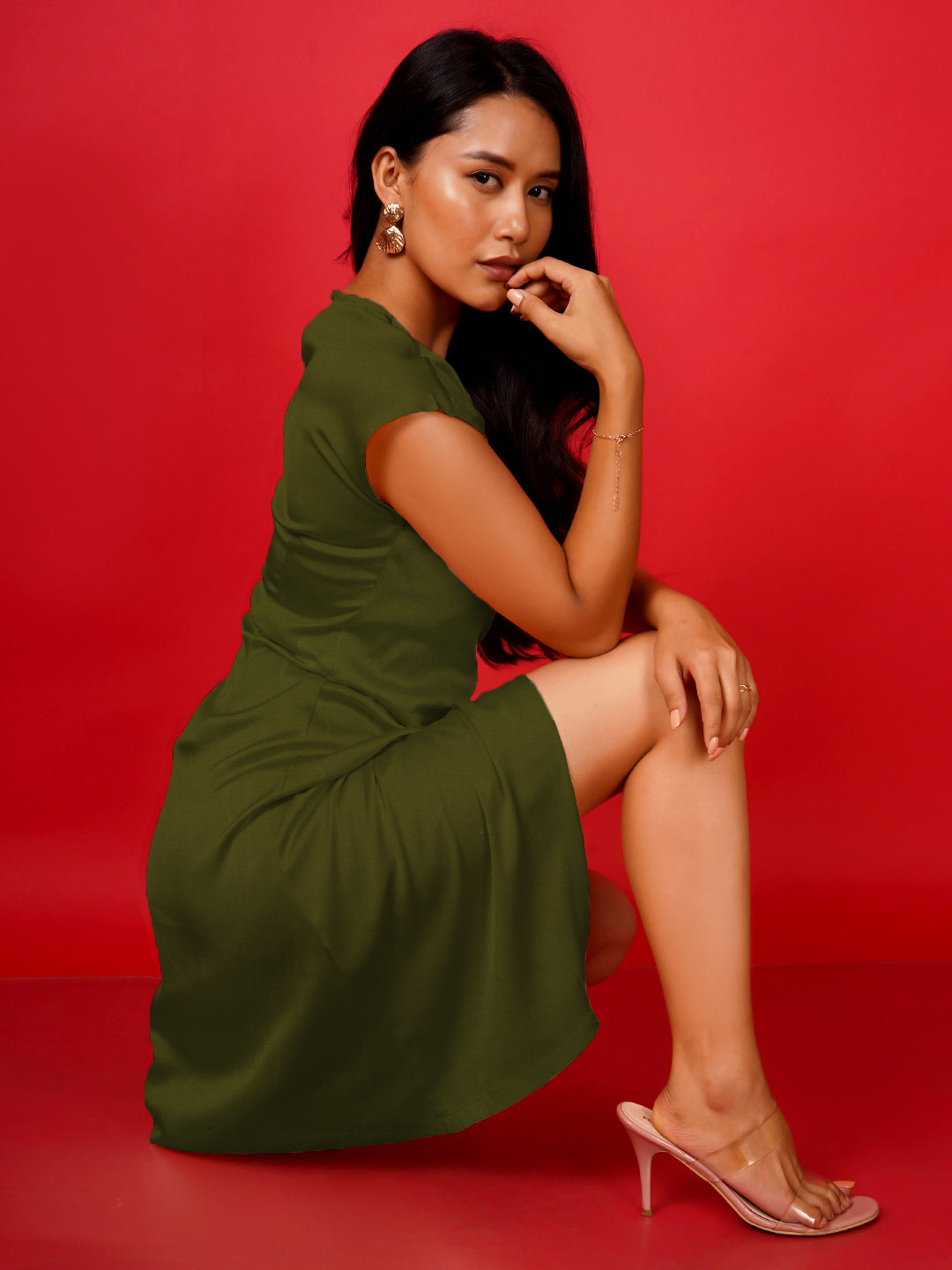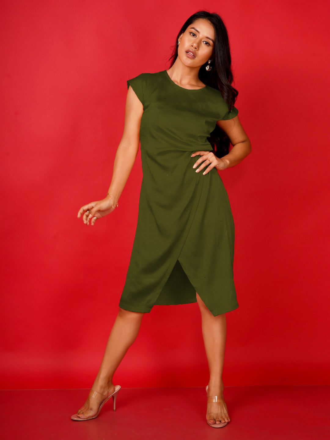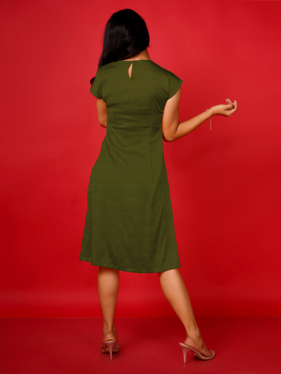 Multi-Colored Tropical Print Short Sleeves Knee-Length Dress