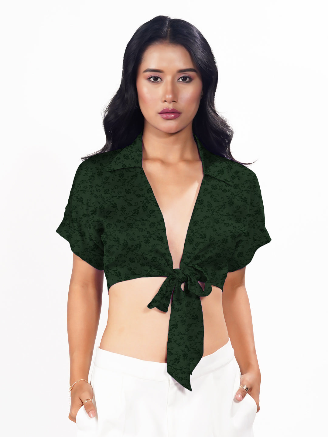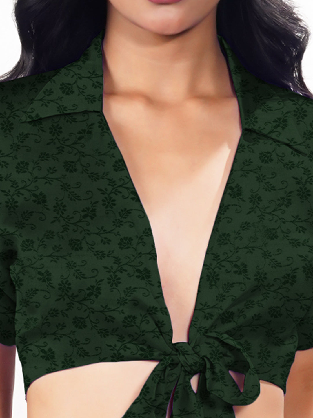 Green Textured Short Sleeves Top