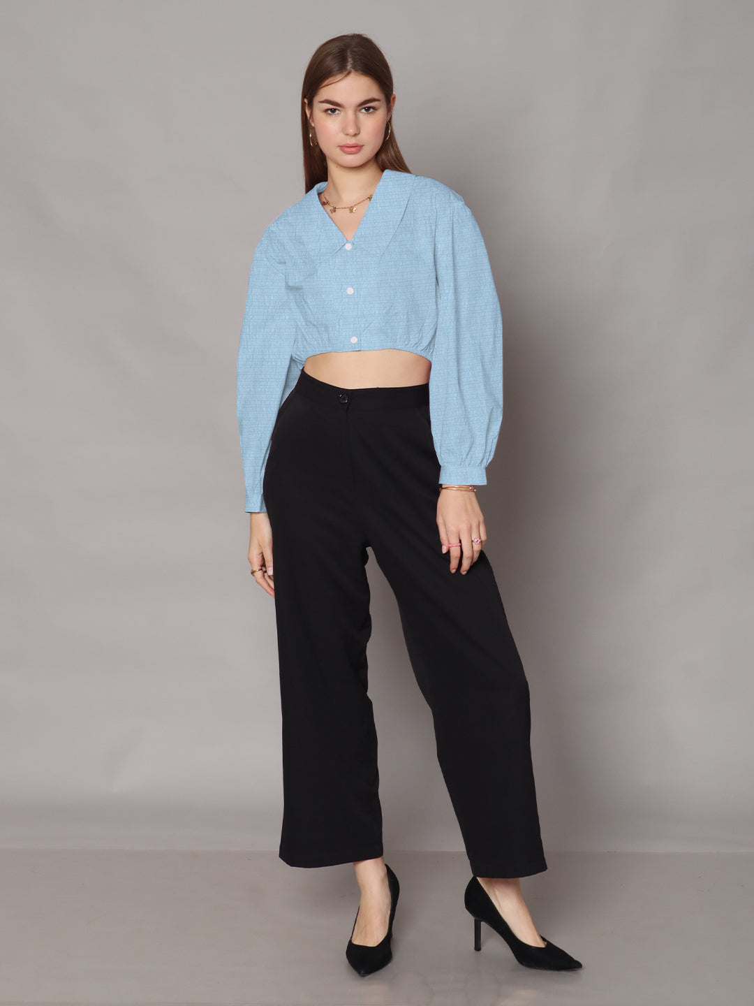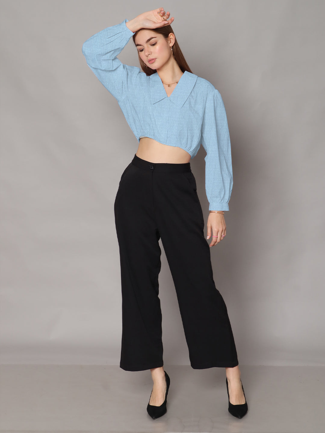 Black & Baby Pink Floral Print Ruffled Sleeves Top