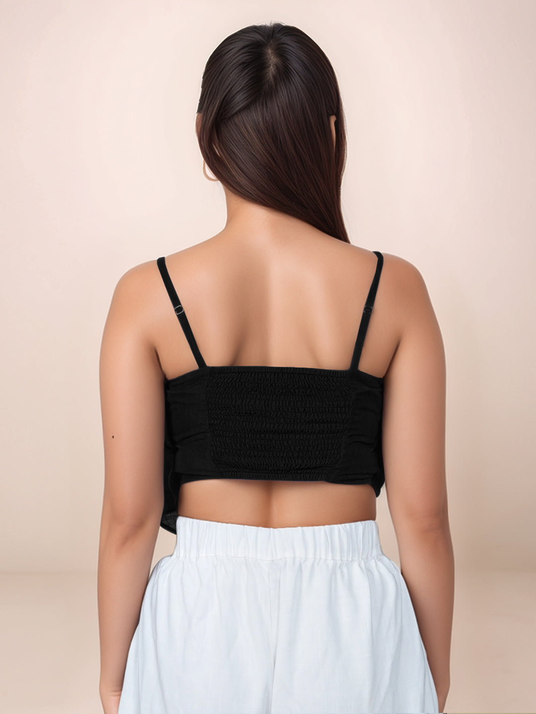 Black & Baby Pink Floral Print Ruffled Sleeves Top