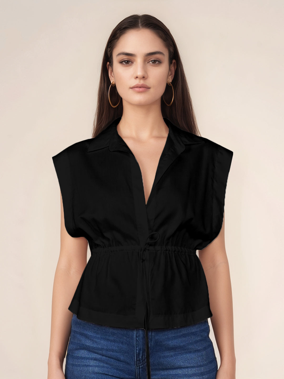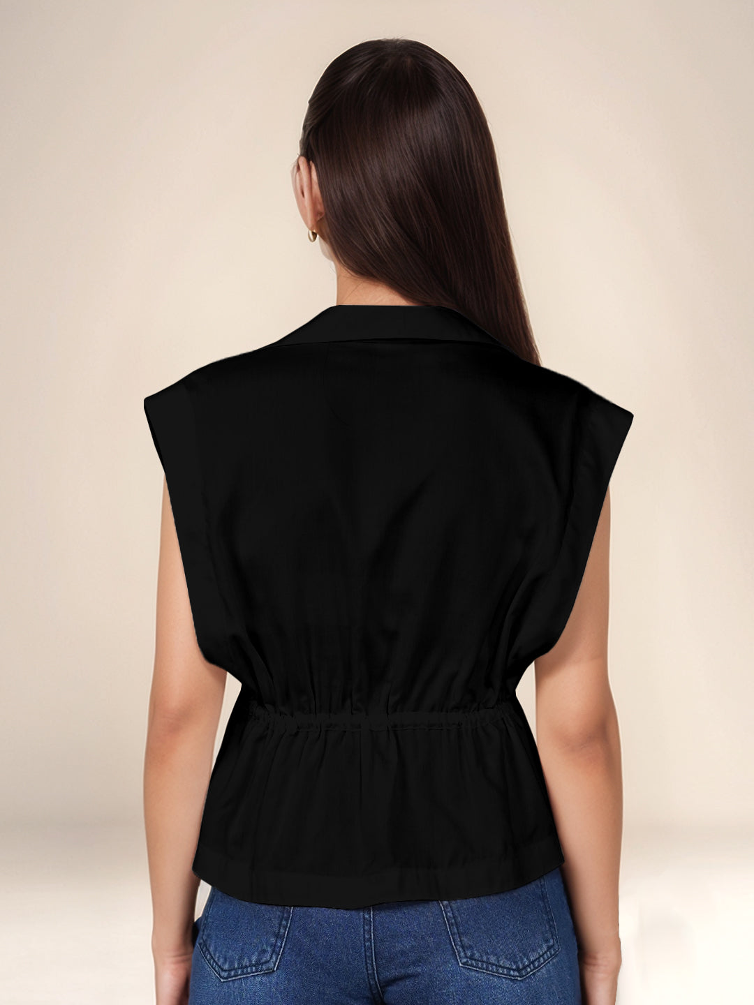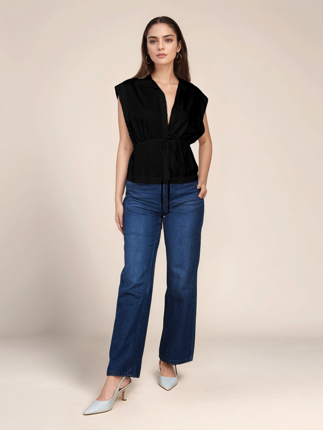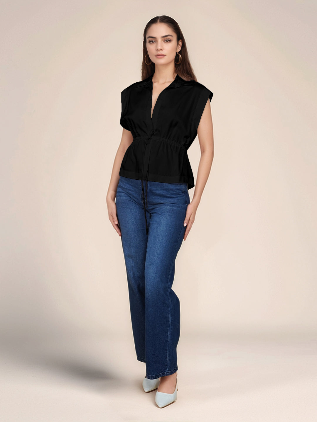 Black & Baby Pink Floral Print Ruffled Sleeves Top