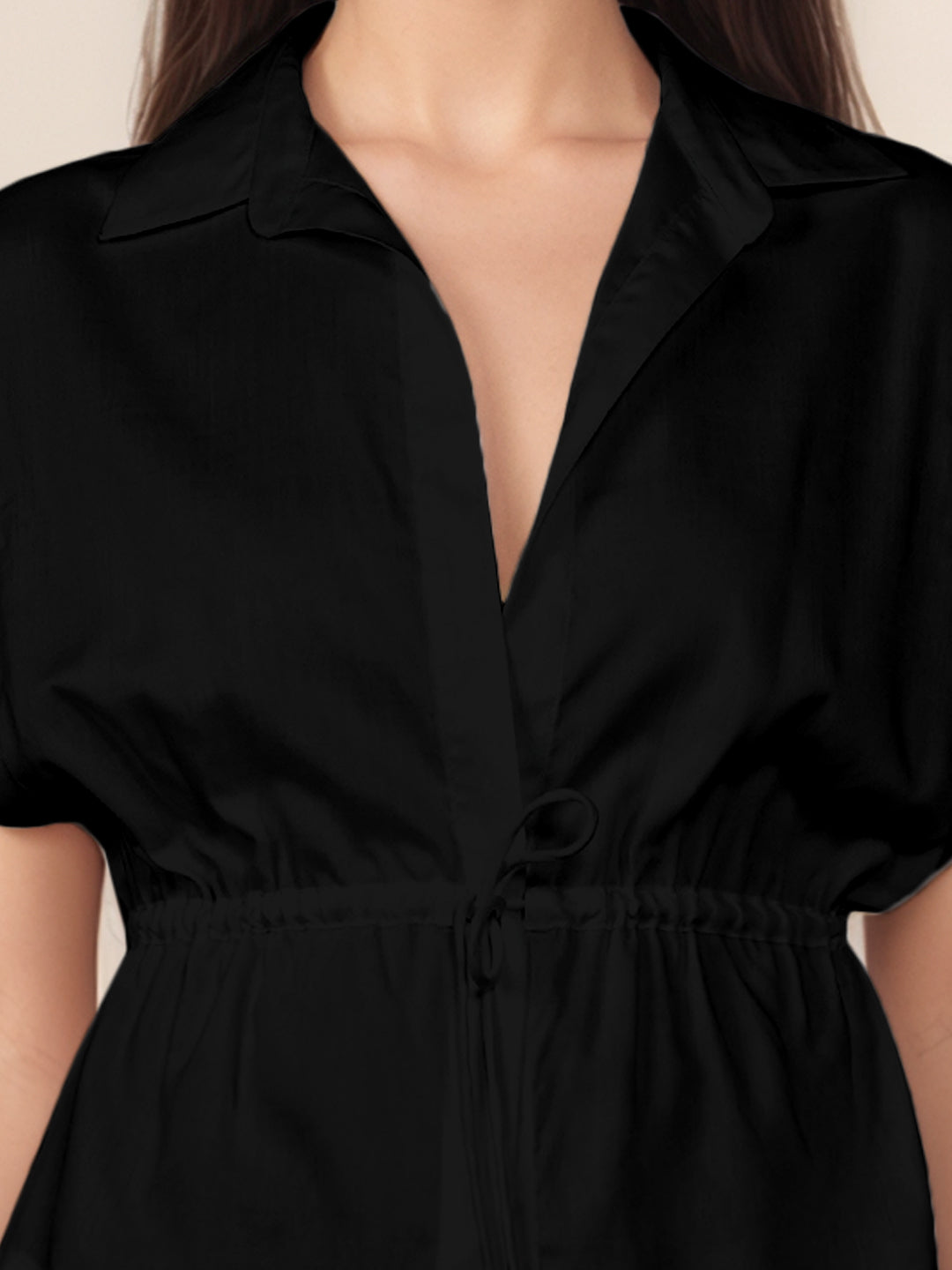 Multi-Colored Tropical Print Short Sleeves Knee-Length Dress