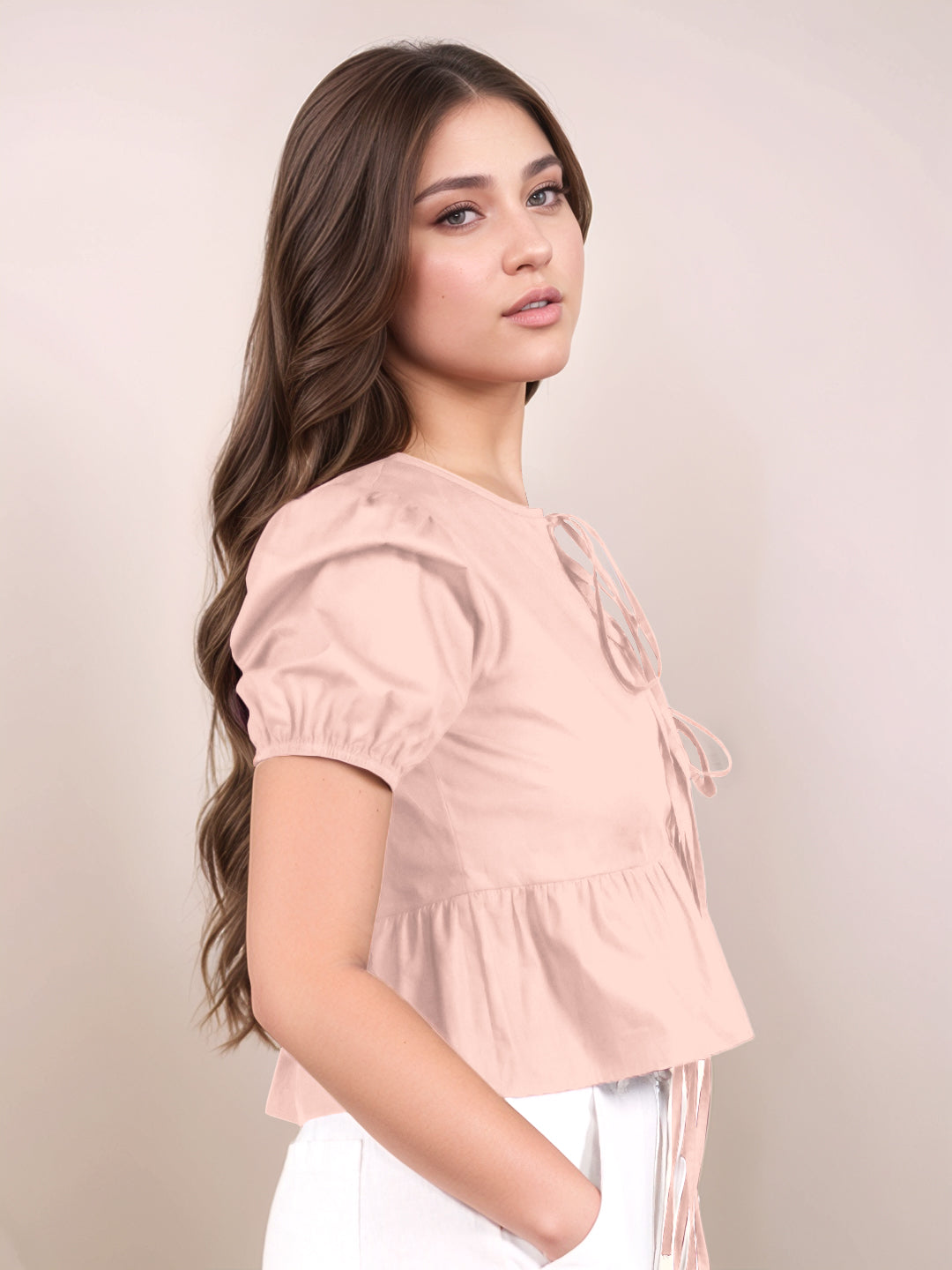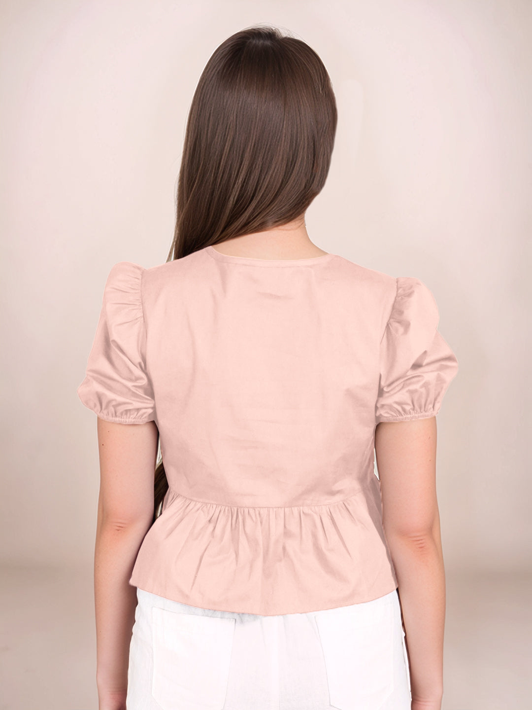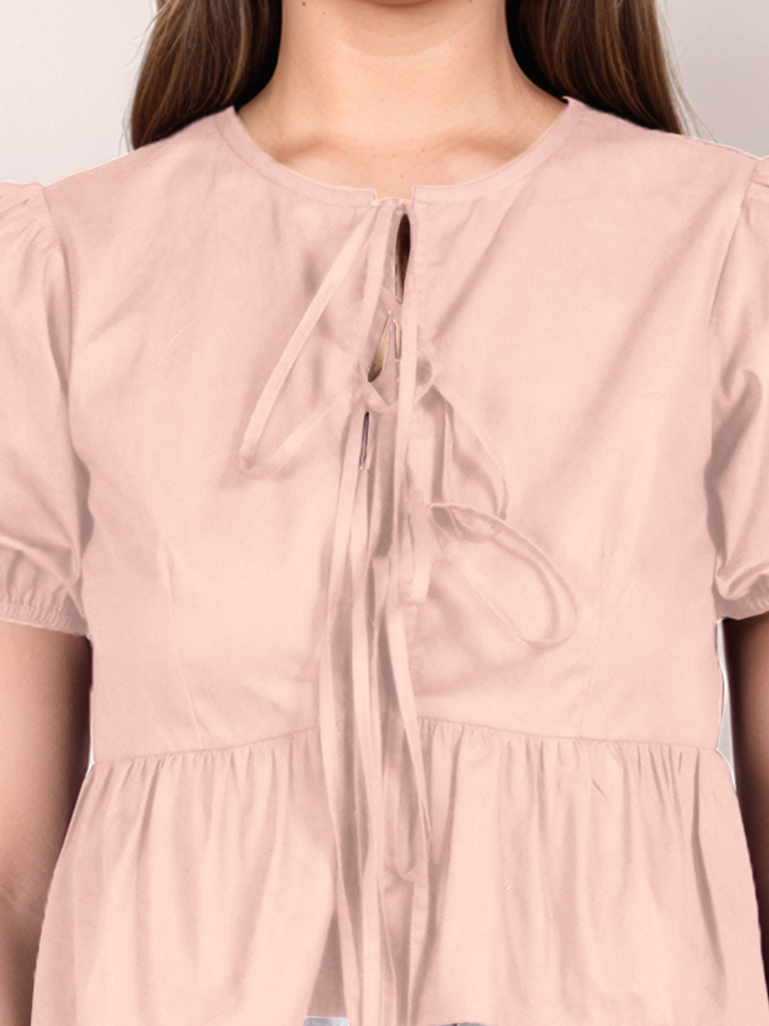 Peach Solid Short Sleeves Top