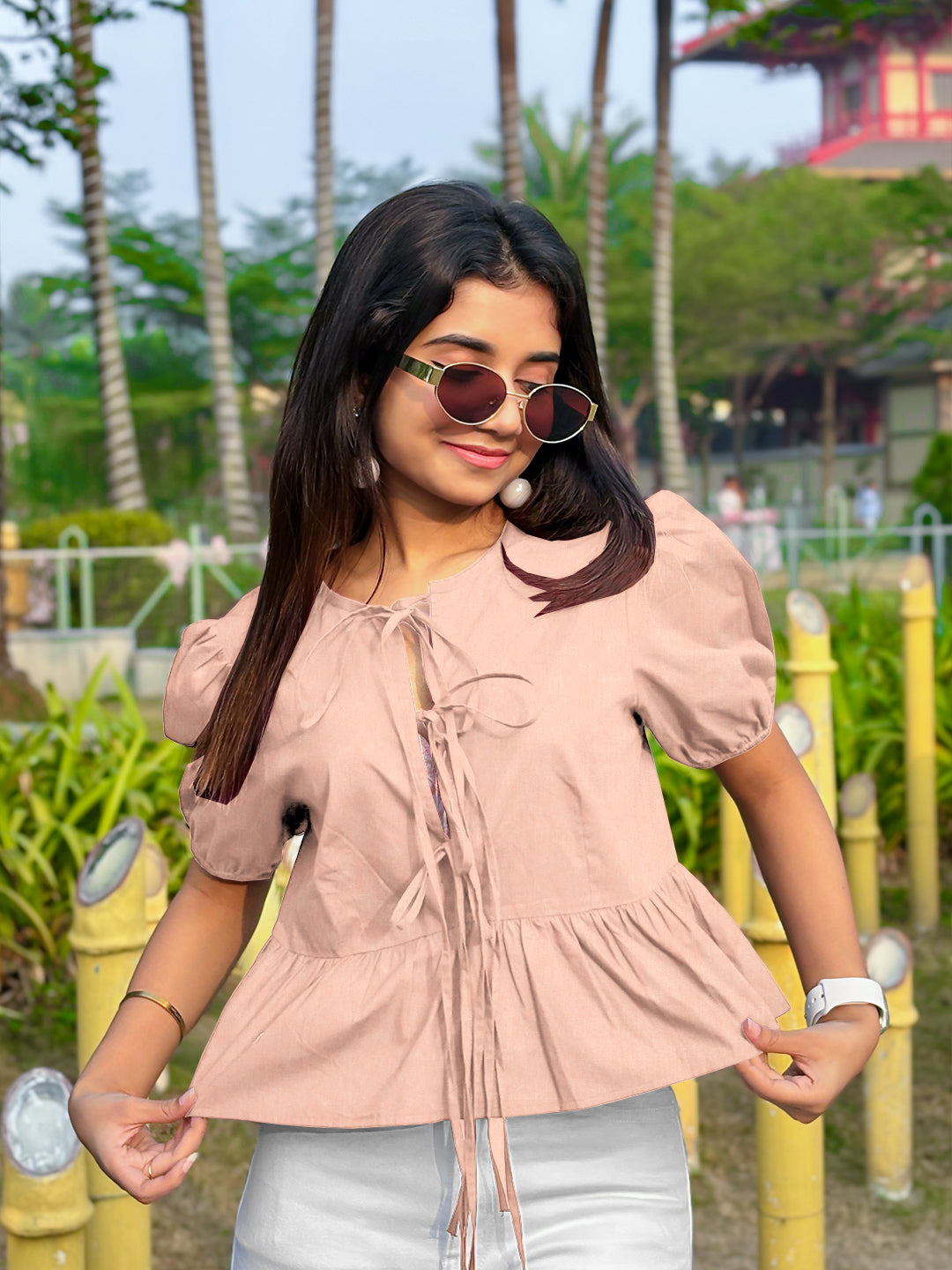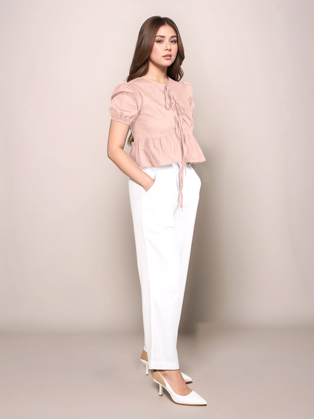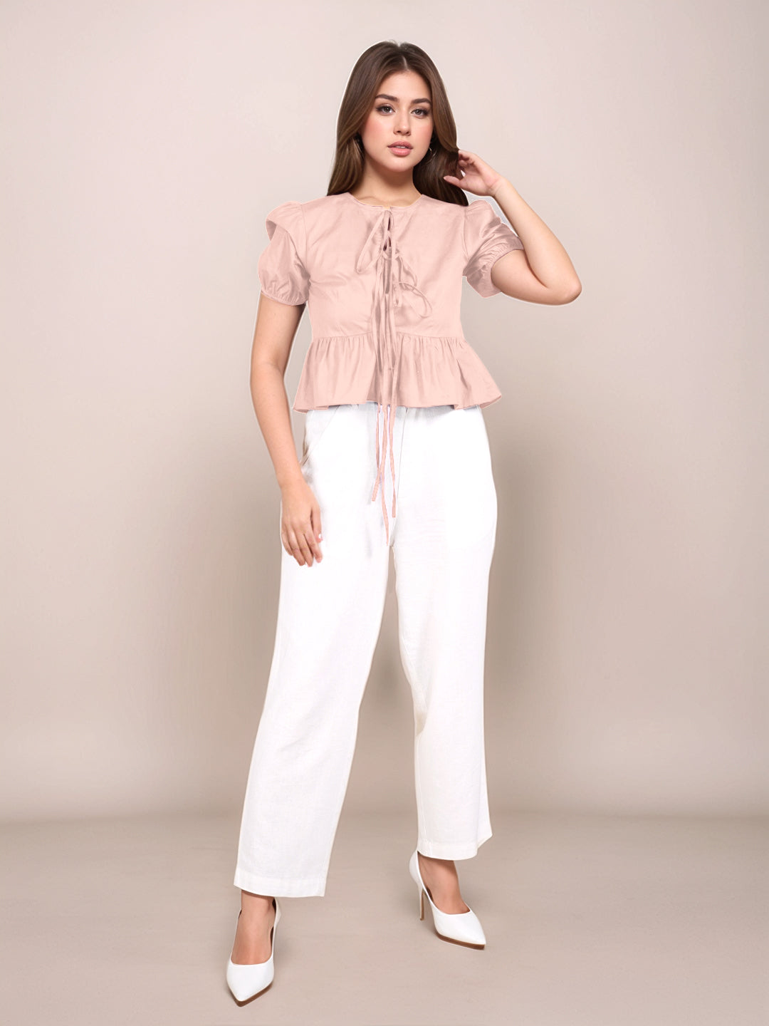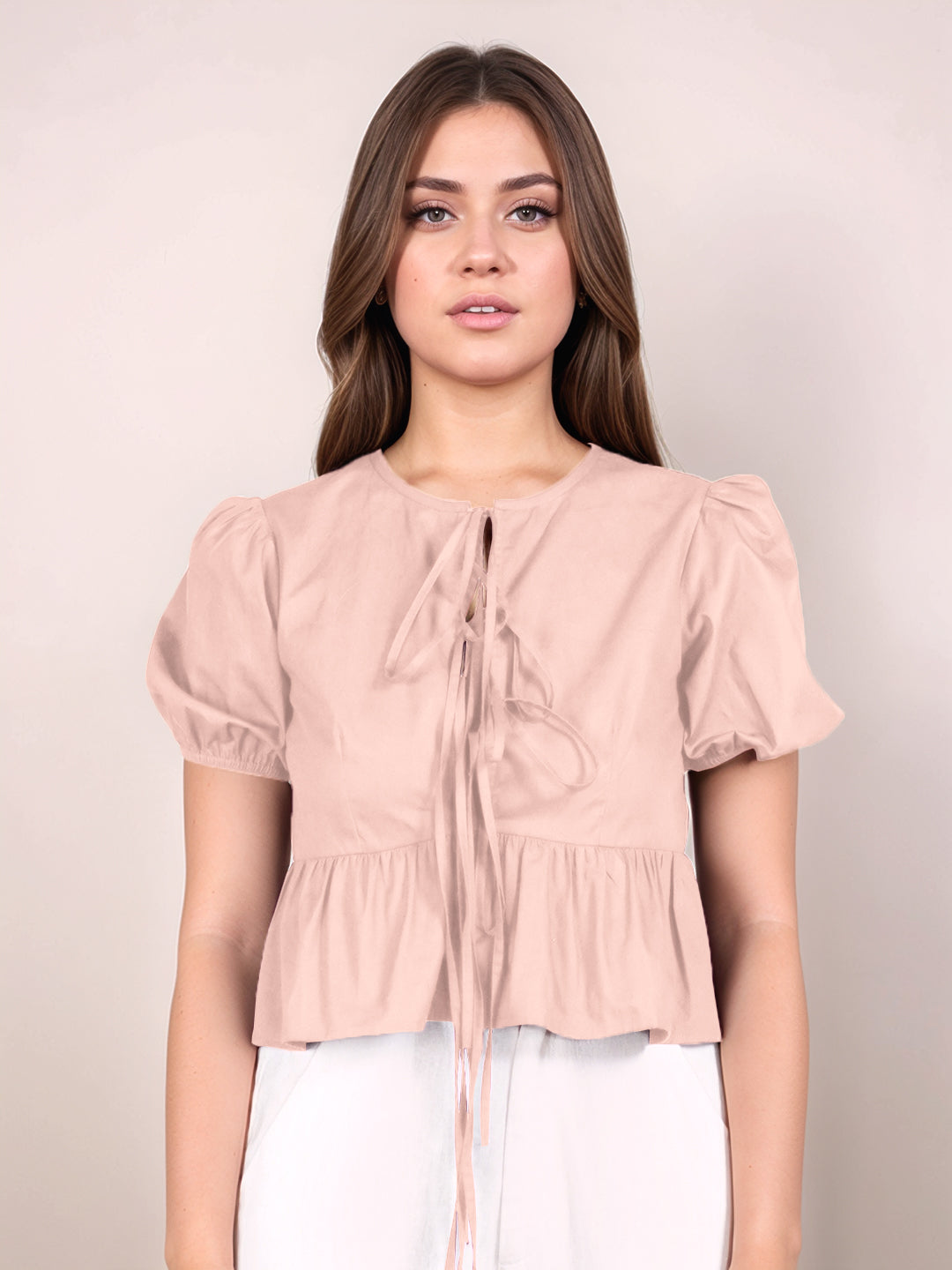 Peach Solid Short Sleeves Top
