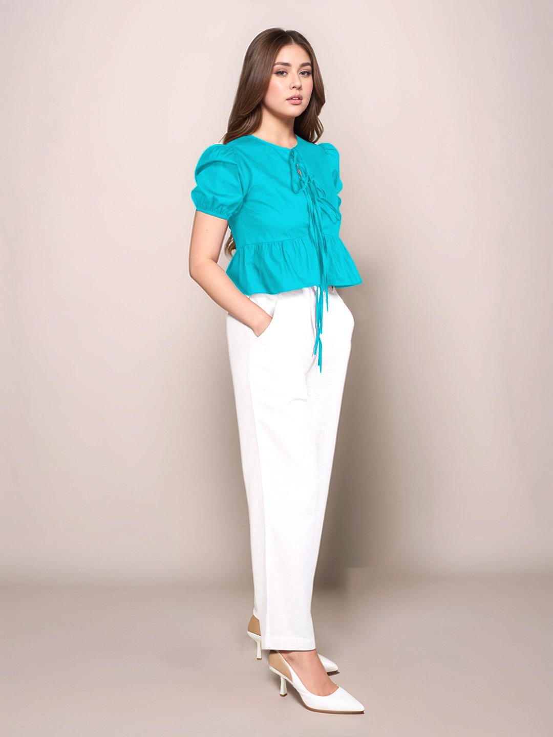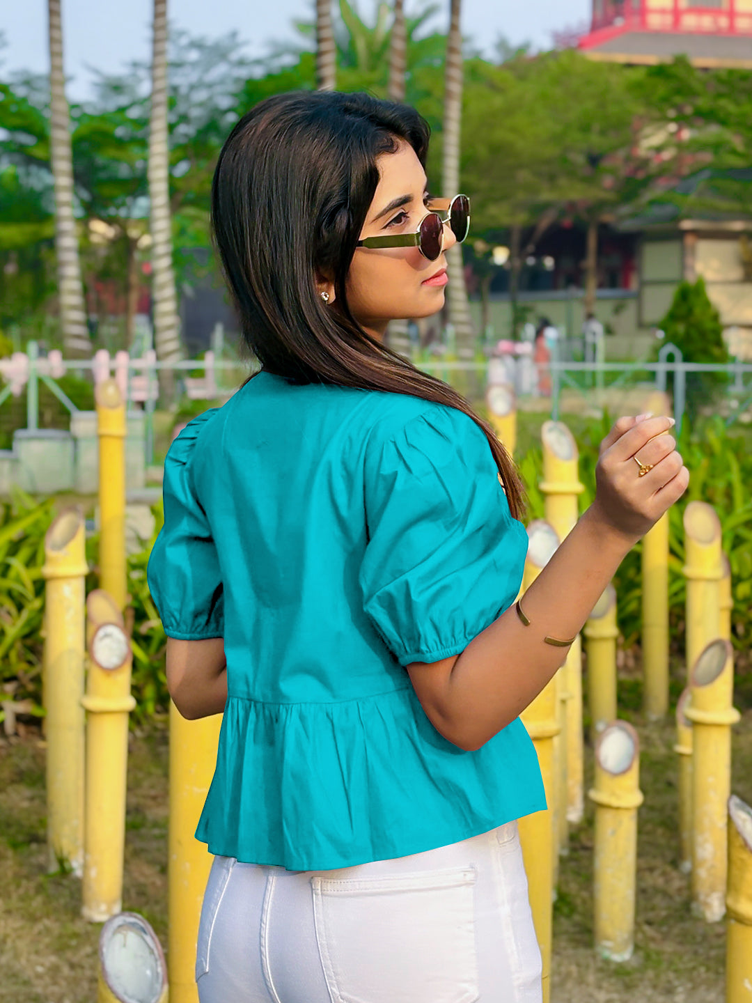 Multi-Colored Tropical Print 3/4th Sleeves Top