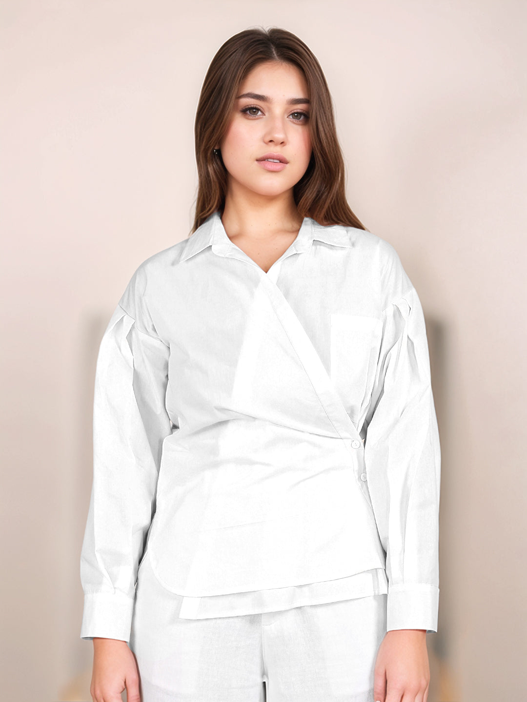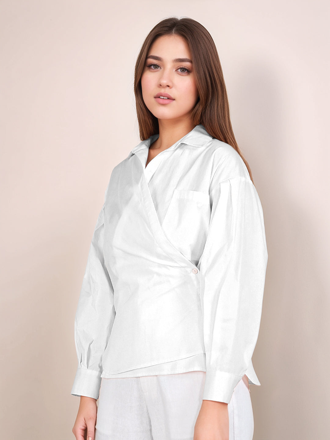 White Solid Full Sleeves Shirt