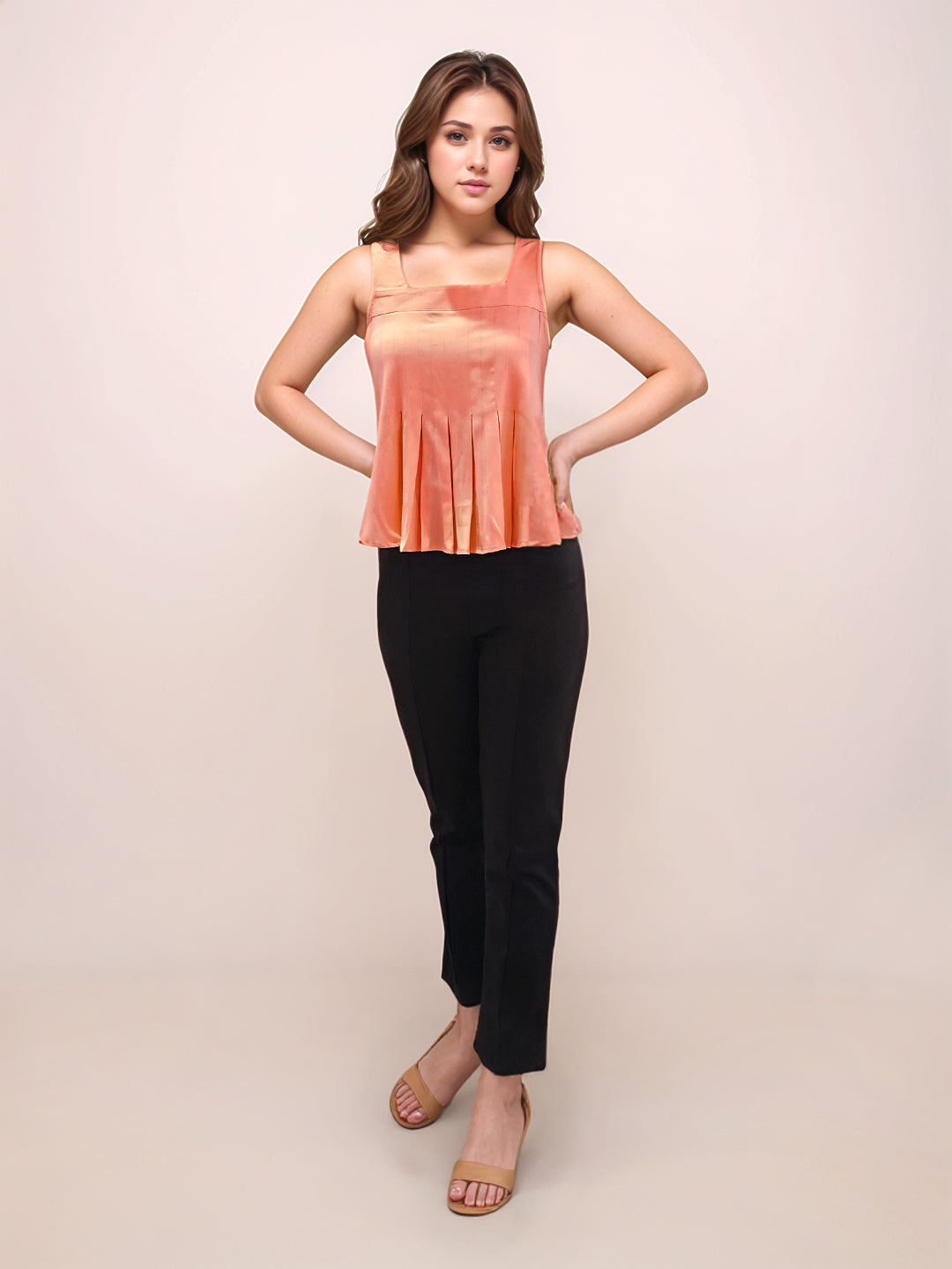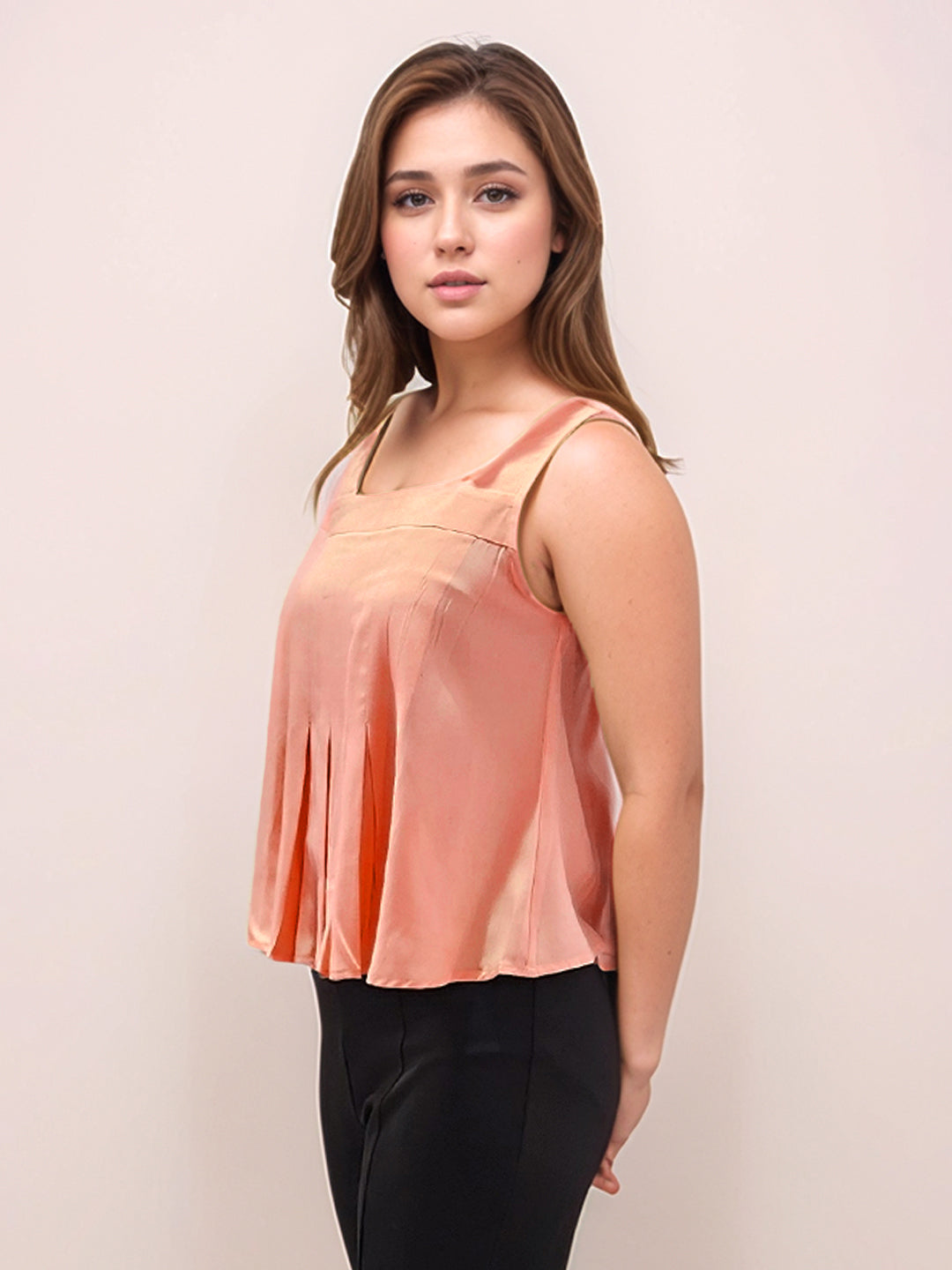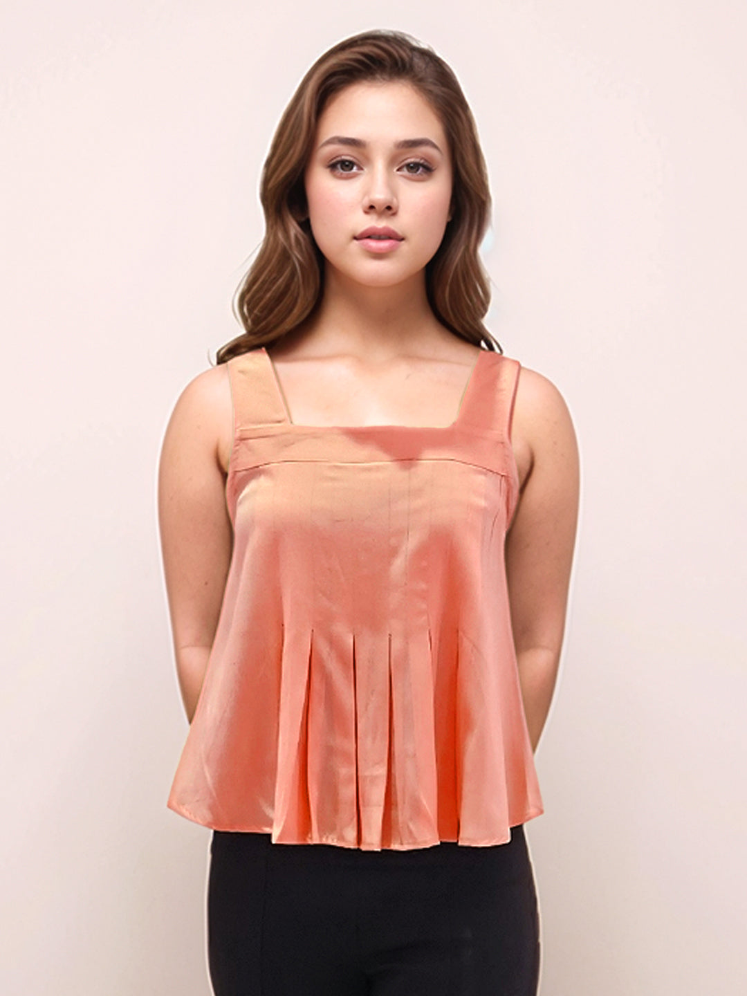 Red Solid Square Neck Shoulder Straps V-Blouses & Tops