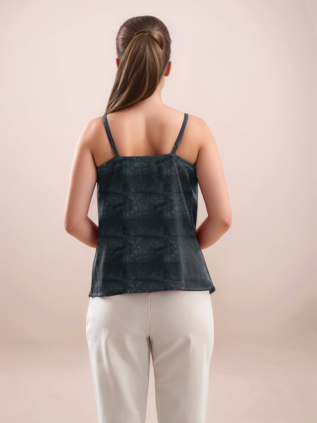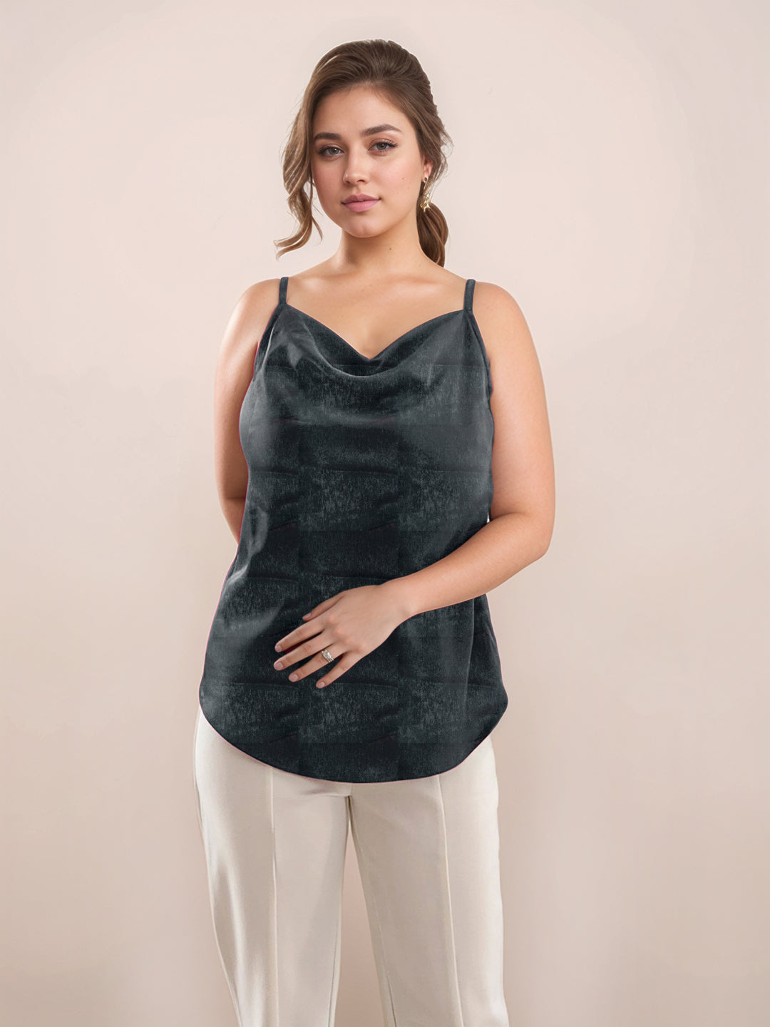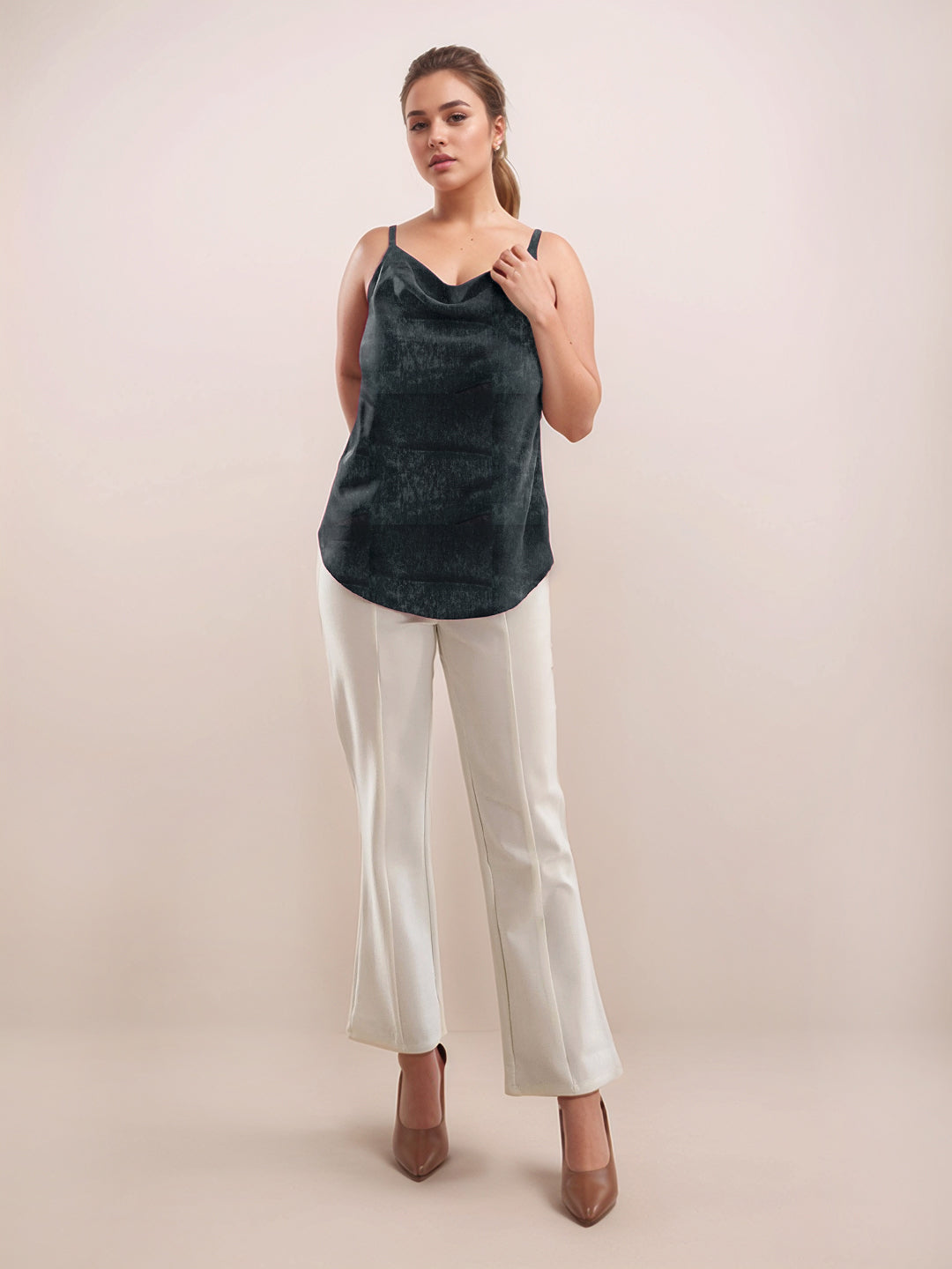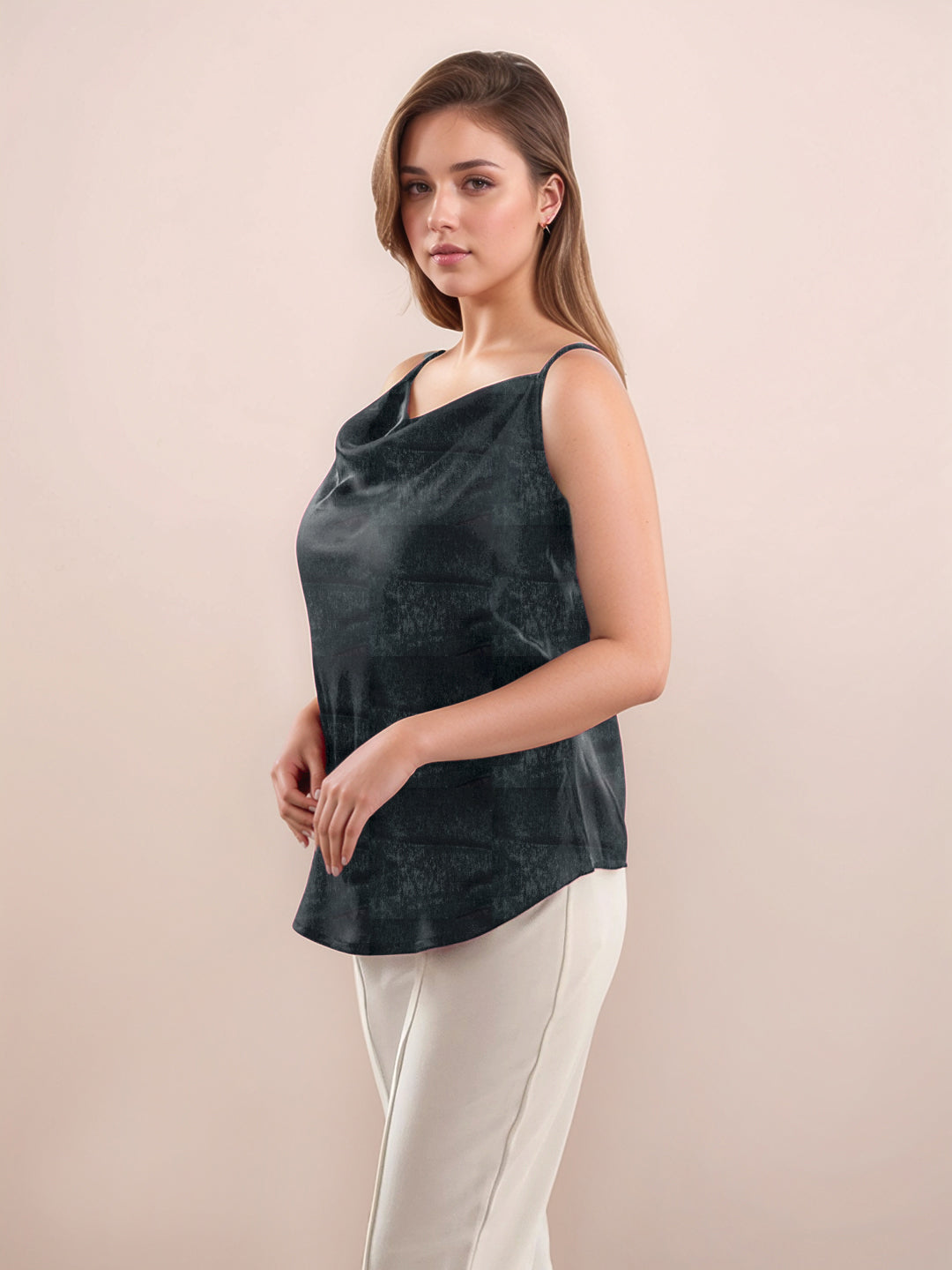 Green Solid Cowl Neck Shoulder Straps V-Blouses & Tops