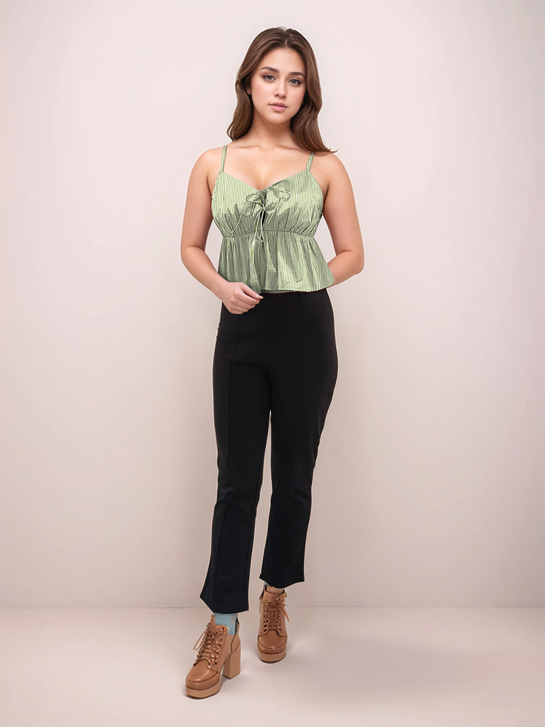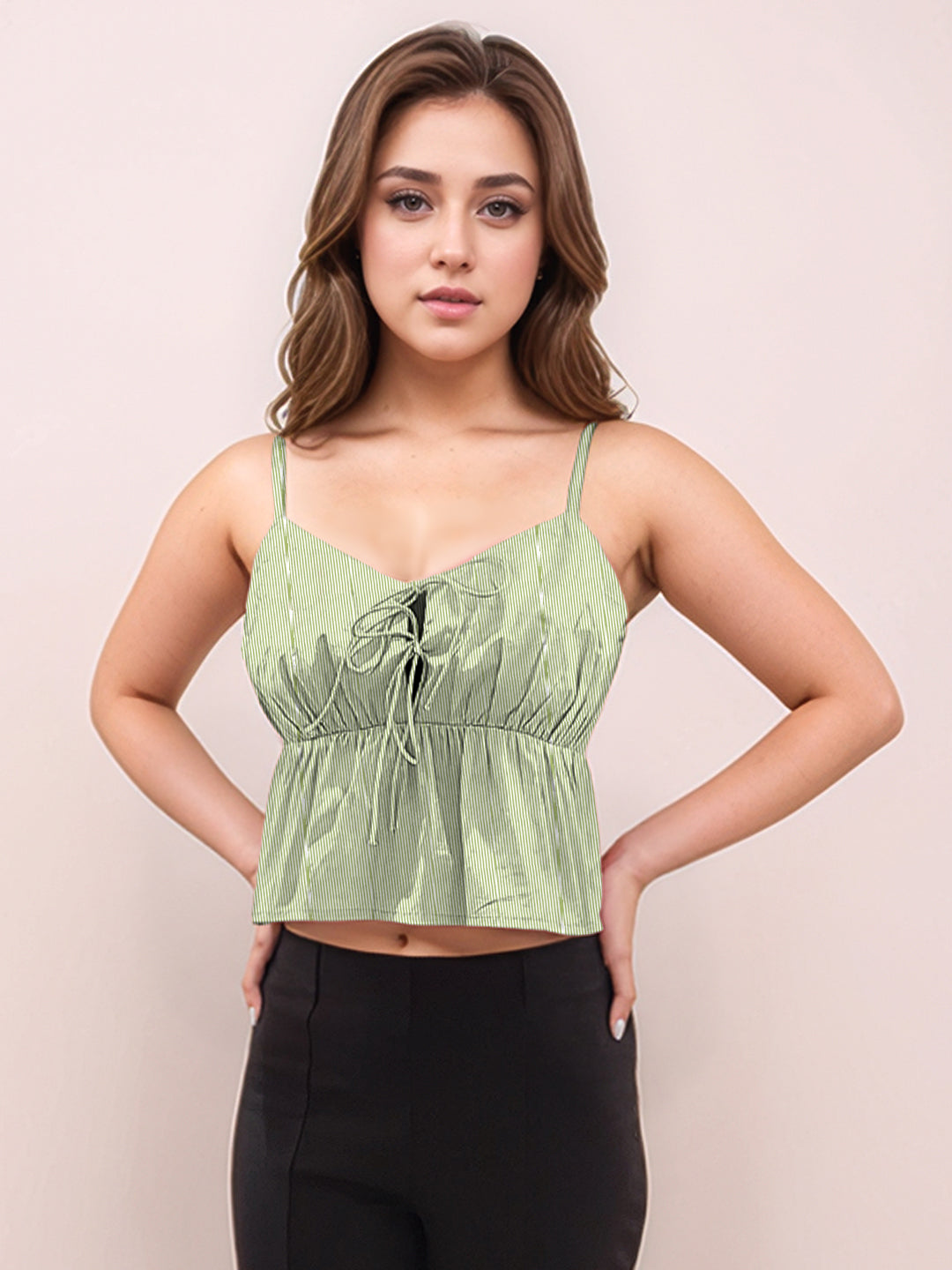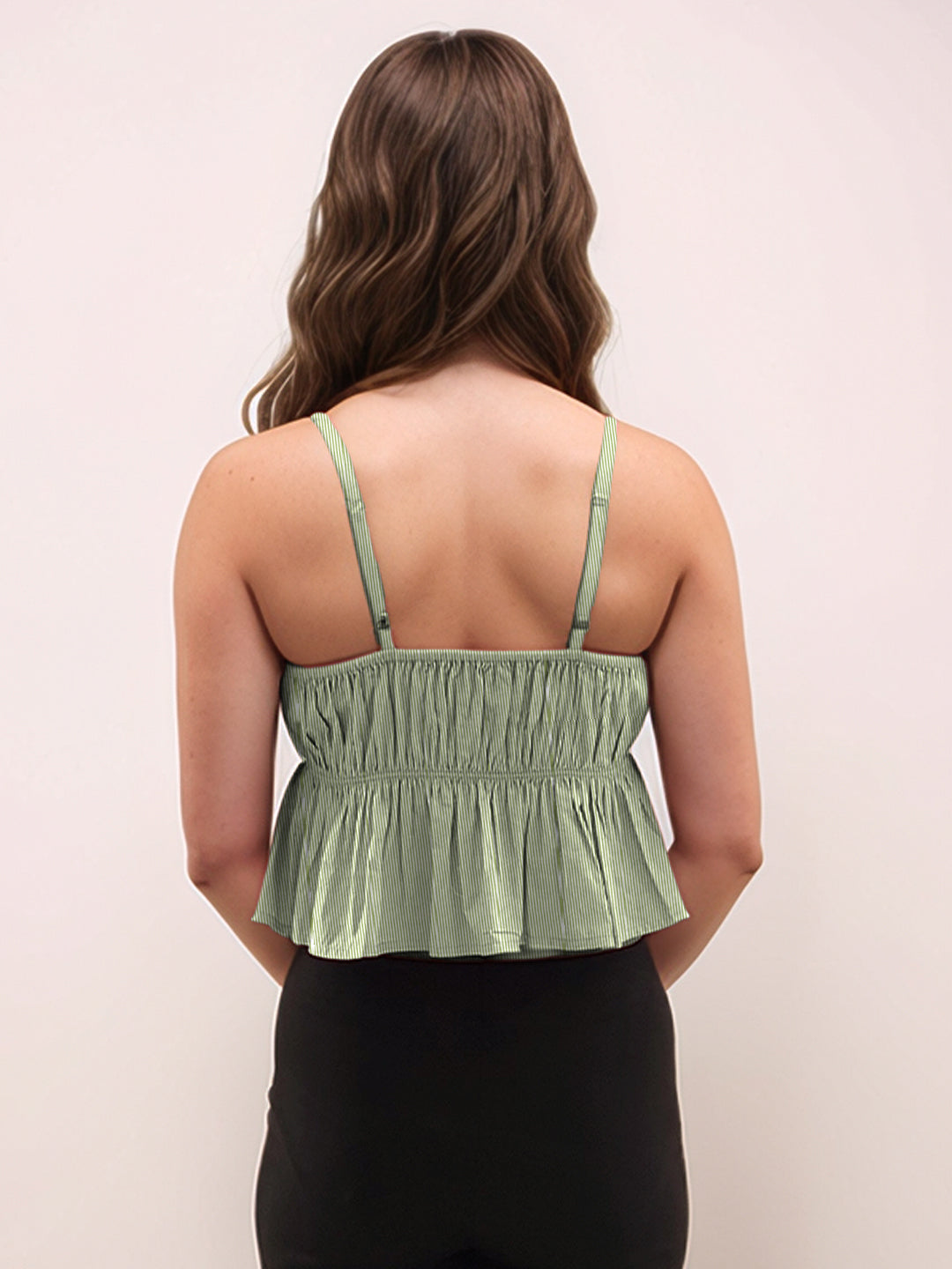 Green Stripes Sweetheart Neck Shoulder Straps V-Blouses & Tops